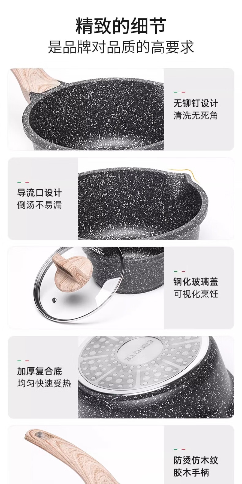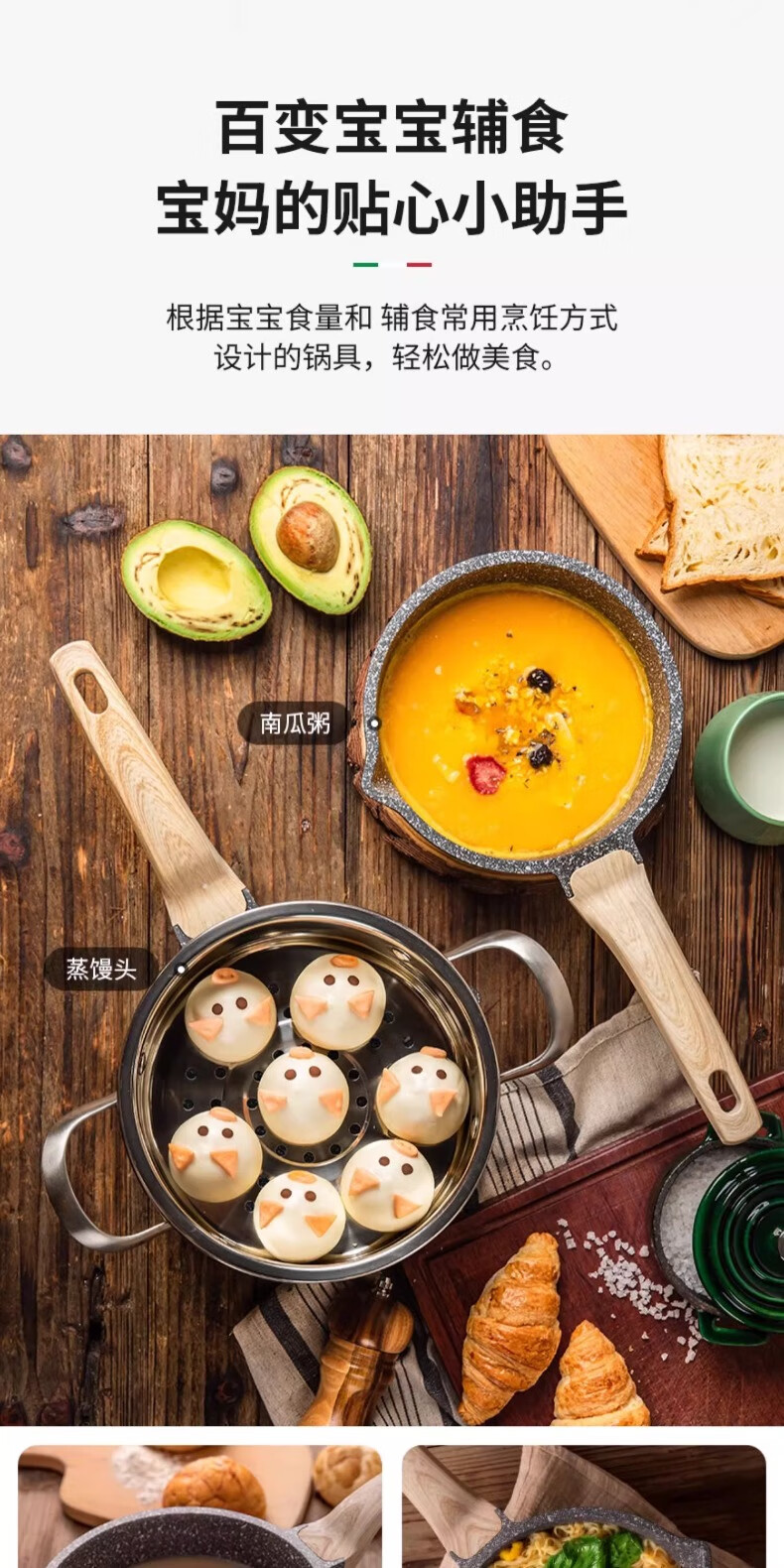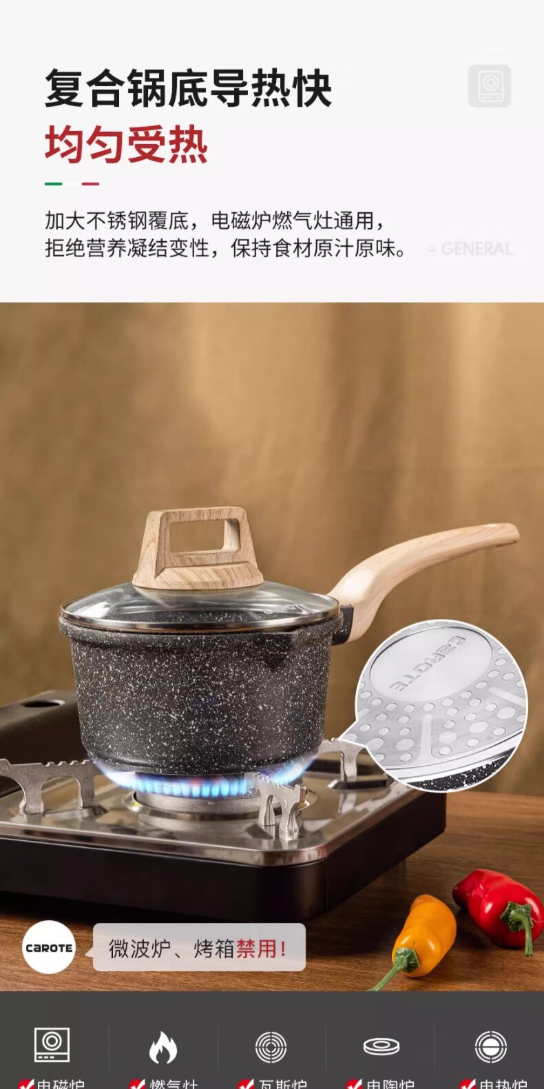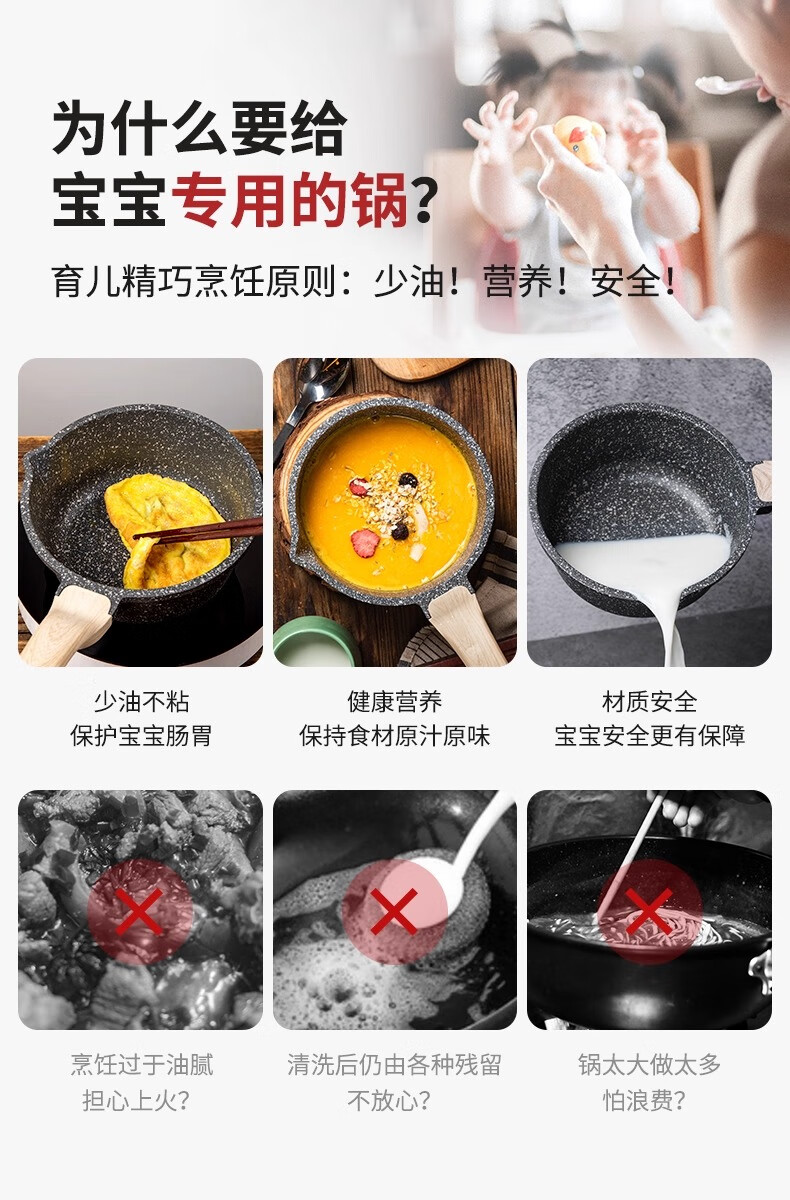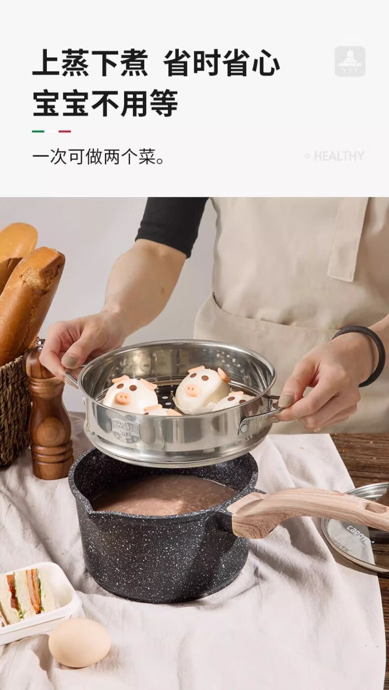 Carrot wheat rice stone milk pot non-stick pot baby food supplement titanium pot steaming soup pot induction cooker household small pot 20cm