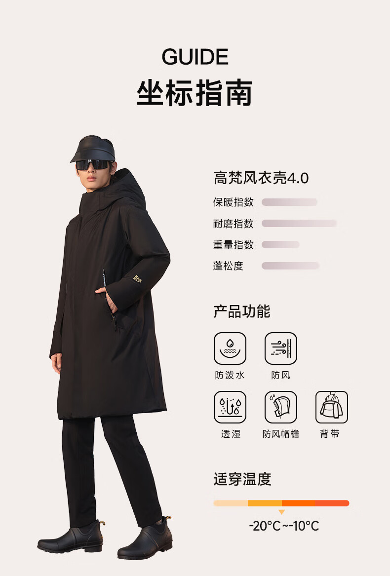 Govan style shell 4.0 seven-point luxury outdoor goose down jacket men's mid-length down jacket black 2XL