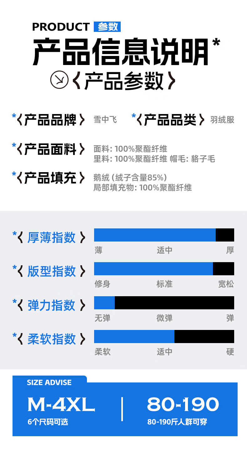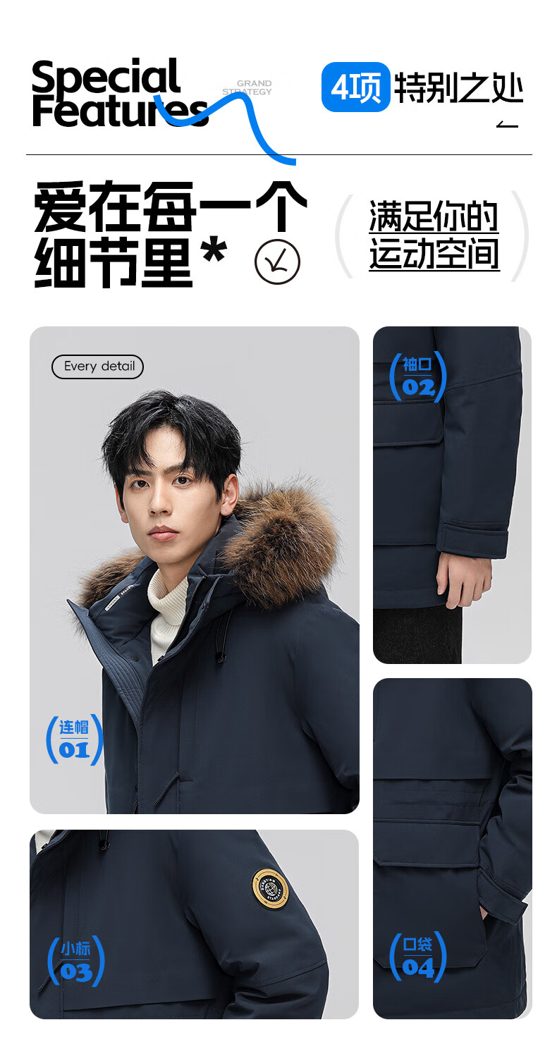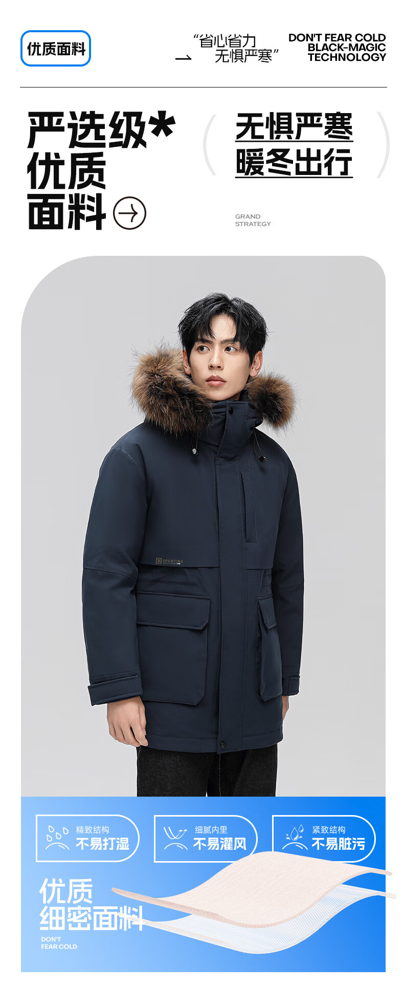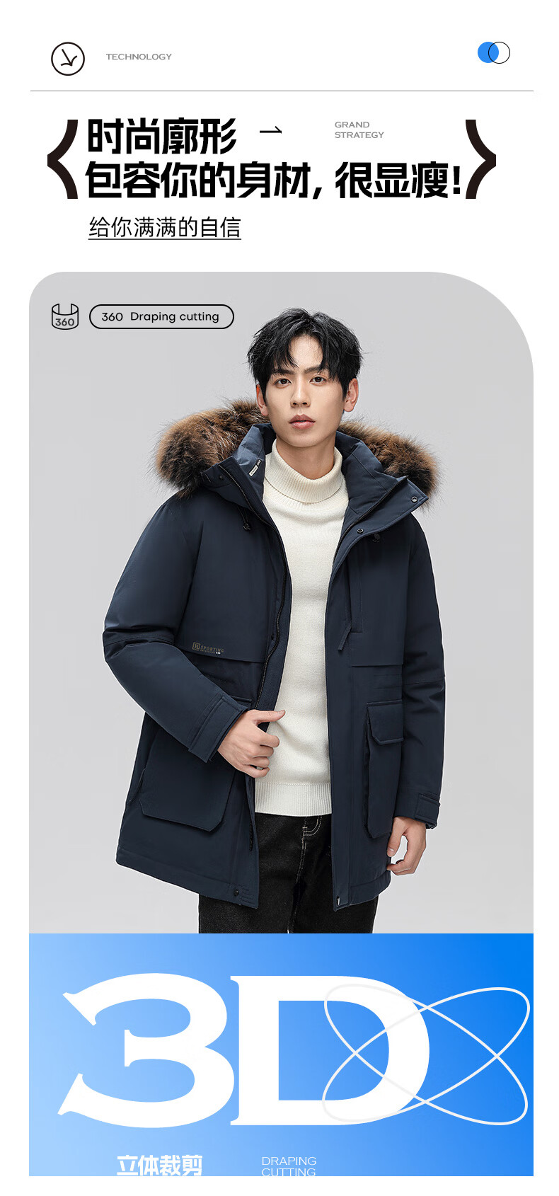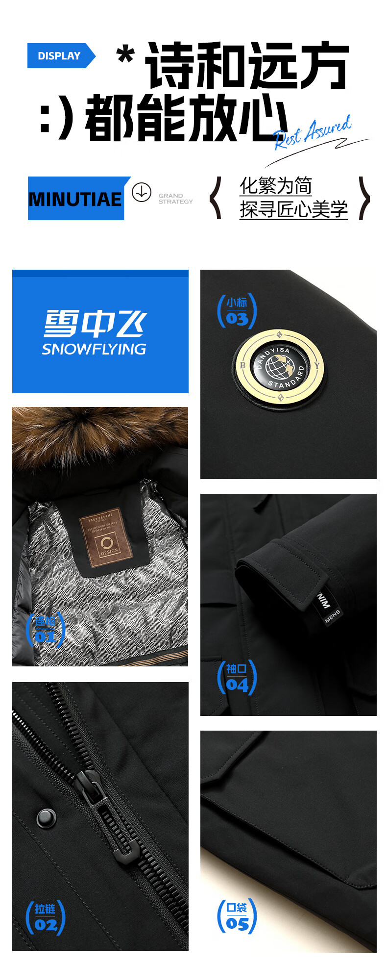 Flying in the Snow Goose Down Jacket Men's Medium Long Hooded Large Fur Collar Thickened Workwear Fashion Casual Business Winter Jacket 185
