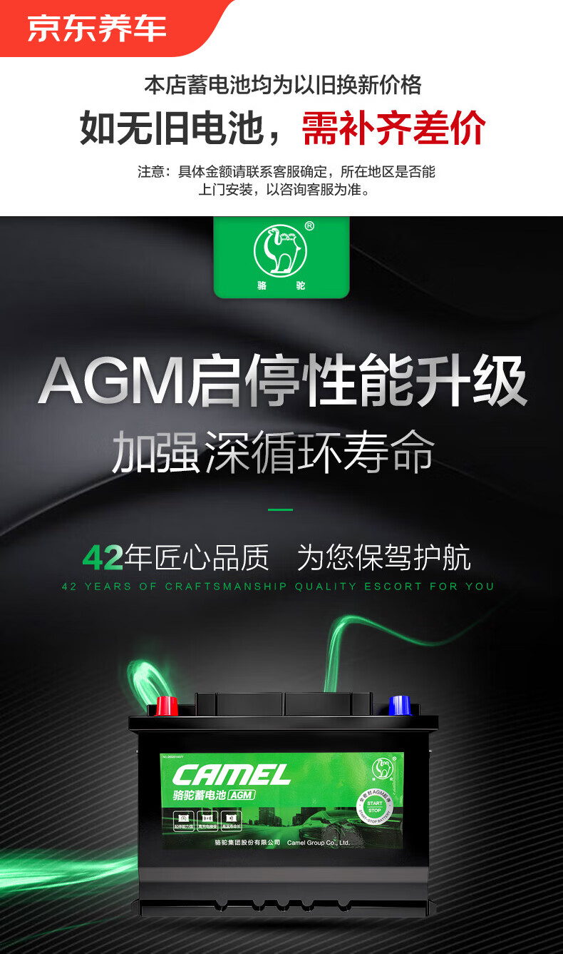Camel Camel car battery high-performance maintenance-free start-stop series AGM80 door-to-door installation and trade-in