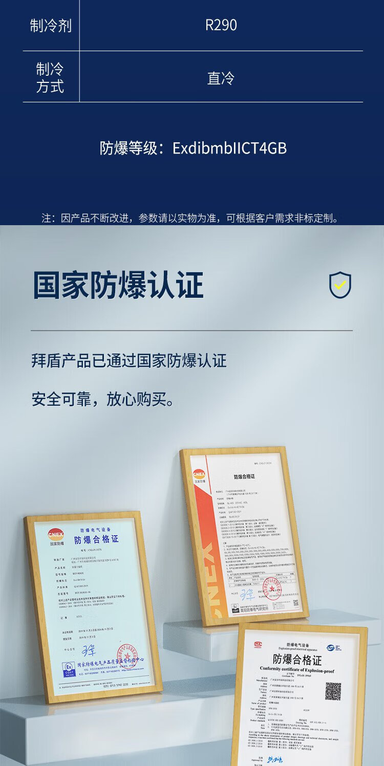 Baidun horizontal single temperature explosion-proof refrigerator university laboratory food factory refrigerated freezing conversion refrigerator 220V BL-400WS1000L
