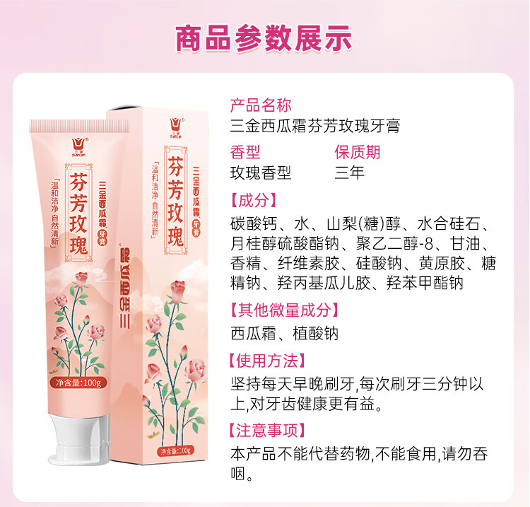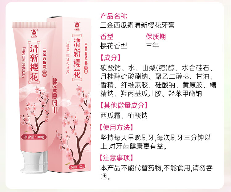 Sanjin Watermelon Cream Toothpaste 3-pack JD.com’s self-operated official flagship store cleans breath with floral scent
