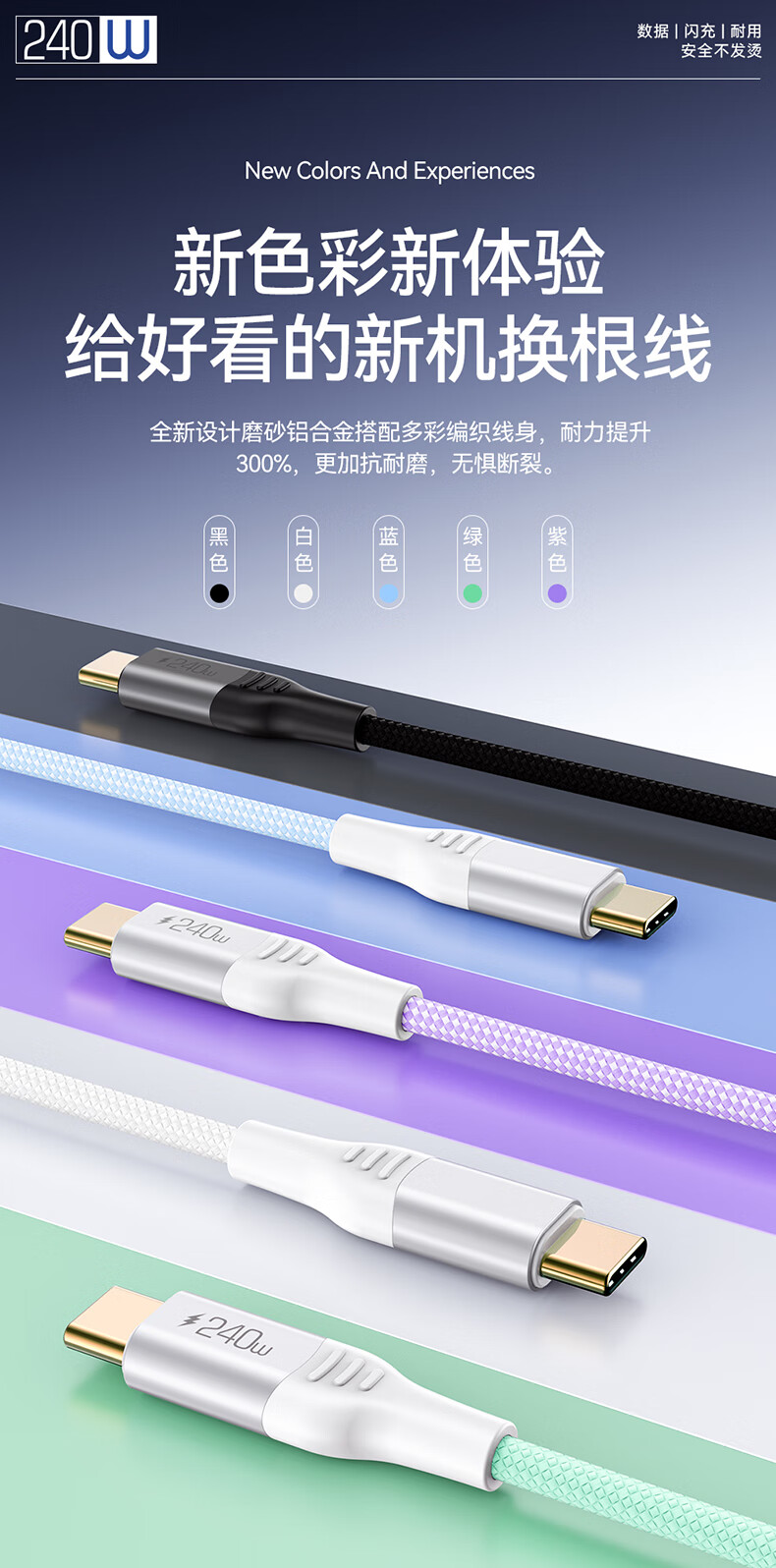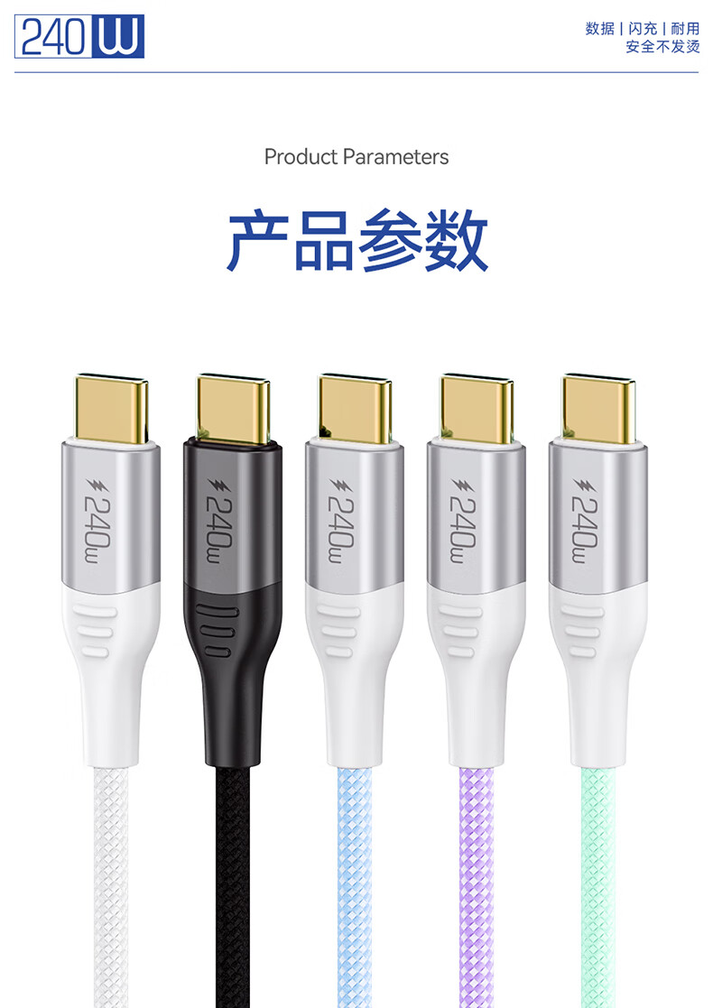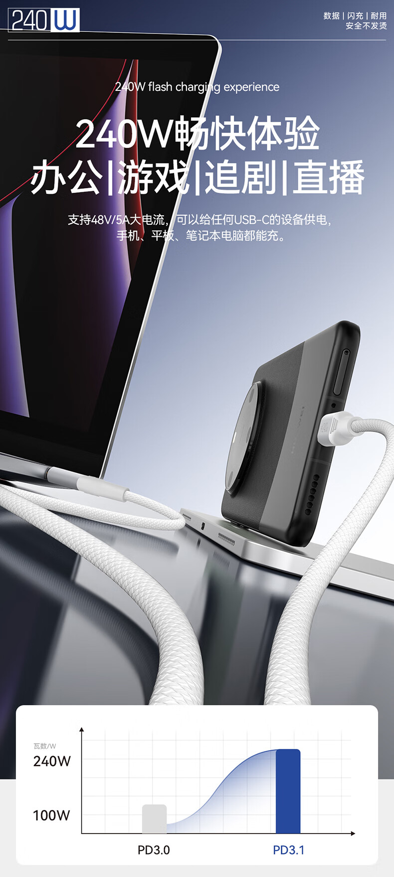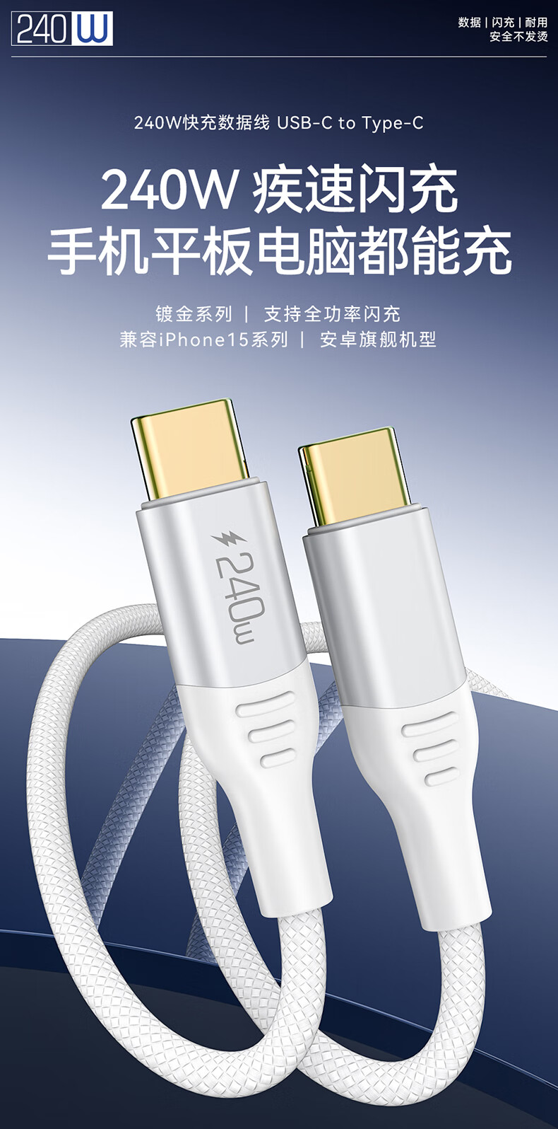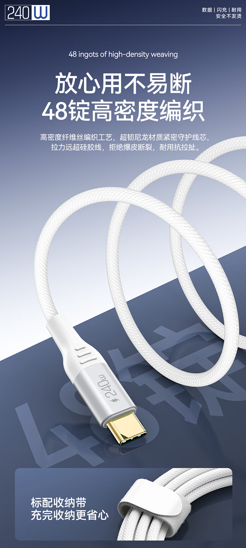 Deyu Apple computer charging cable MacBook Air Pro notebook power cable iPad tablet dual type-c data cable 240W USB-C (2 meters)