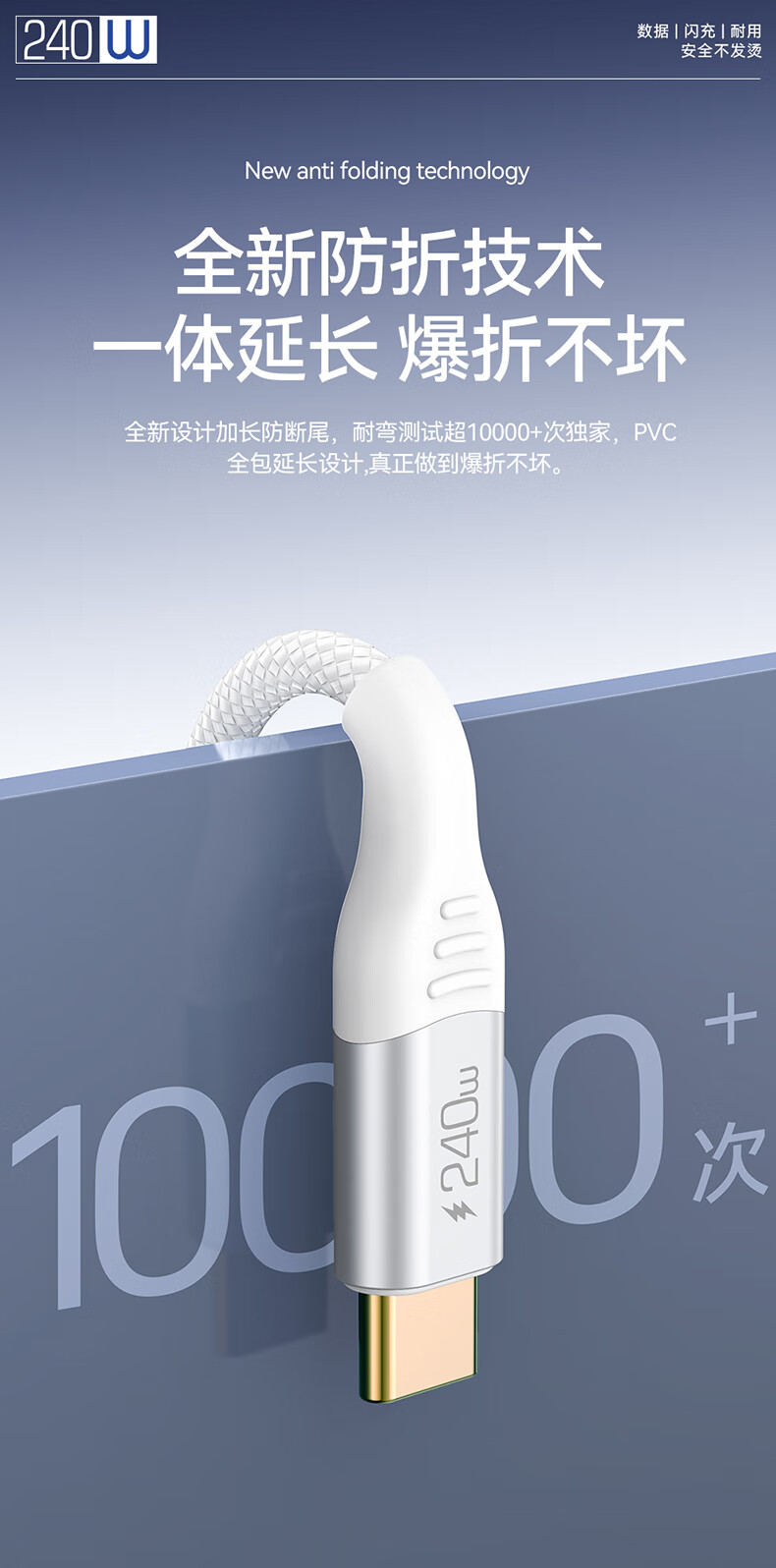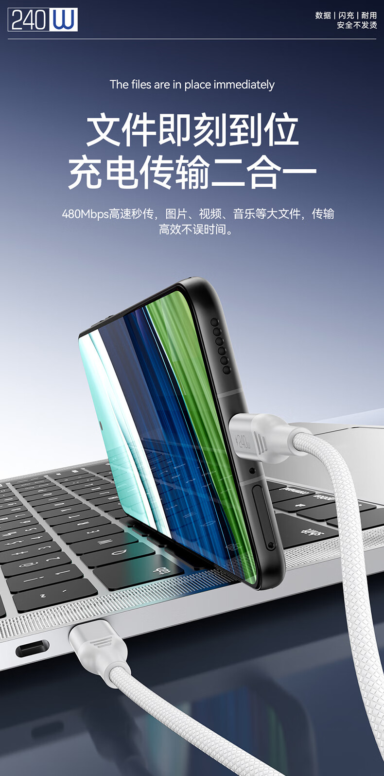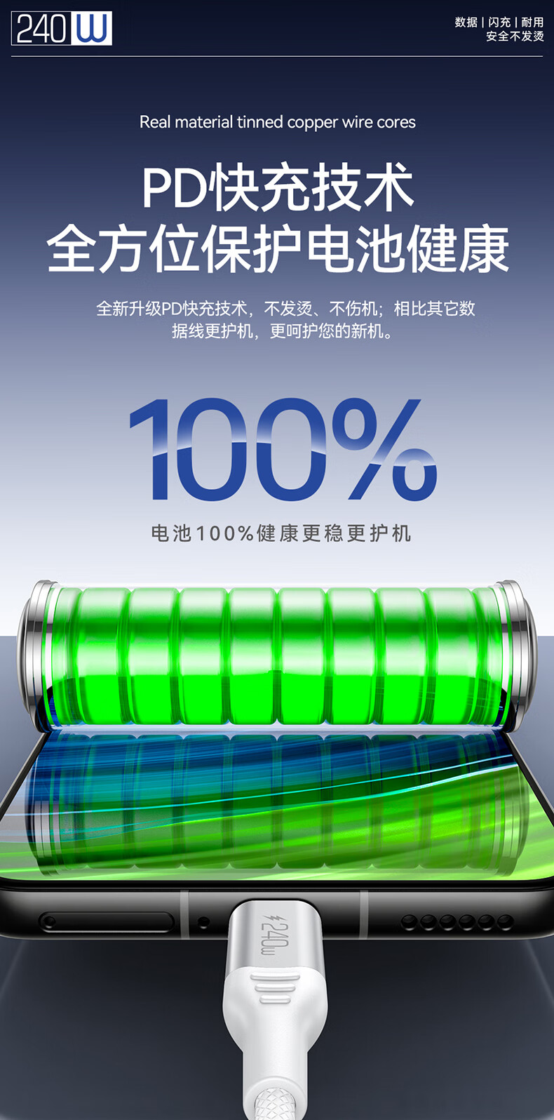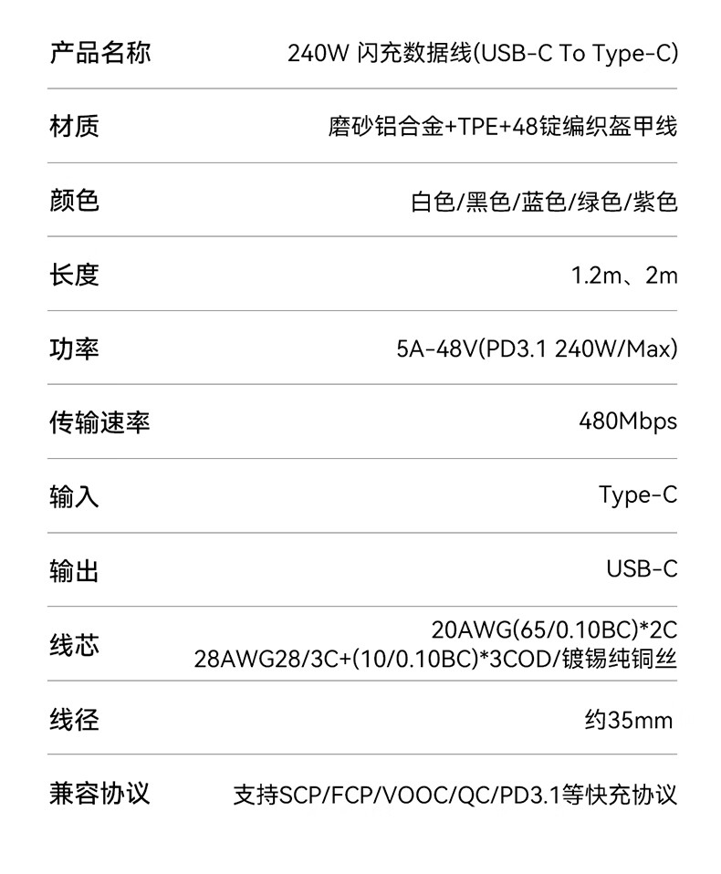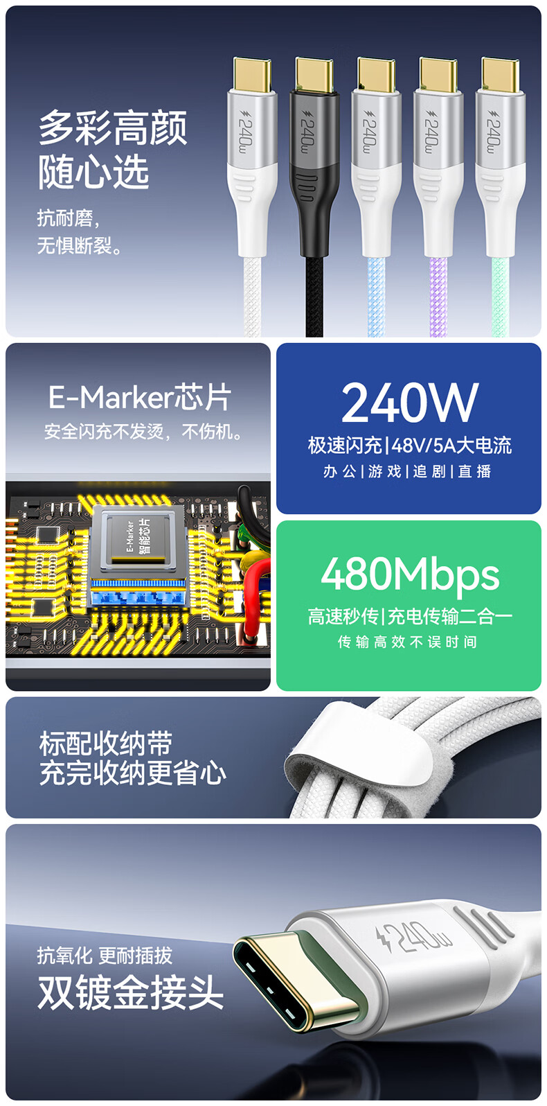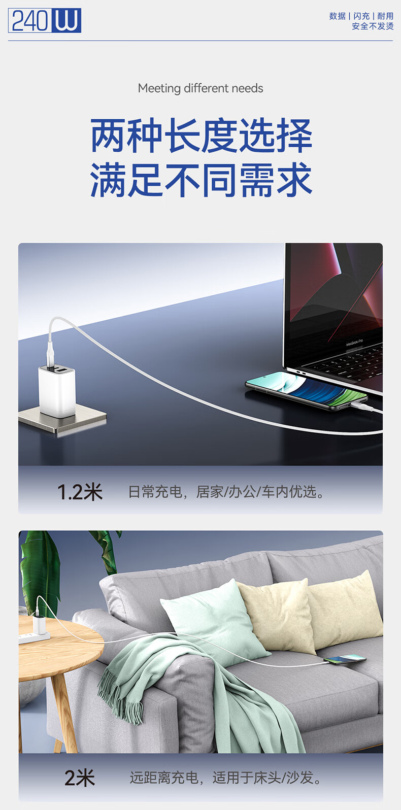 Deyu Apple computer charging cable MacBook Air Pro notebook power cable iPad tablet dual type-c data cable 240W USB-C (2 meters)