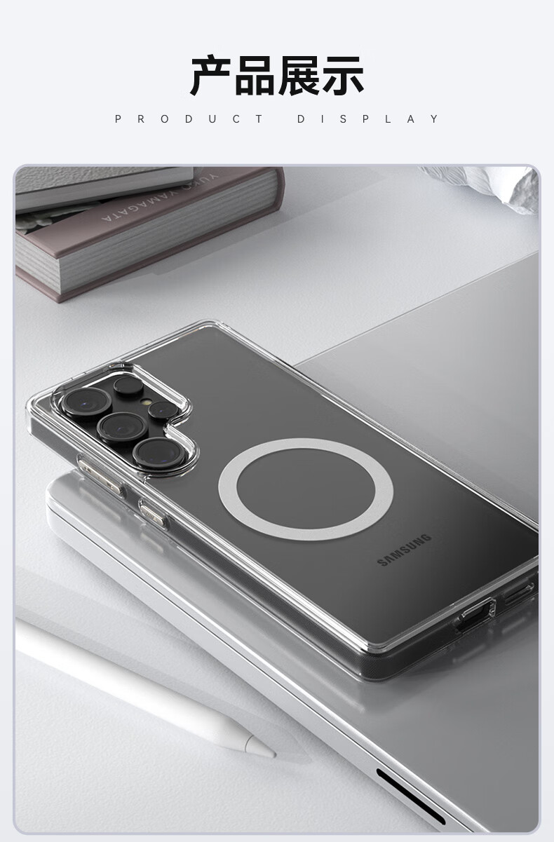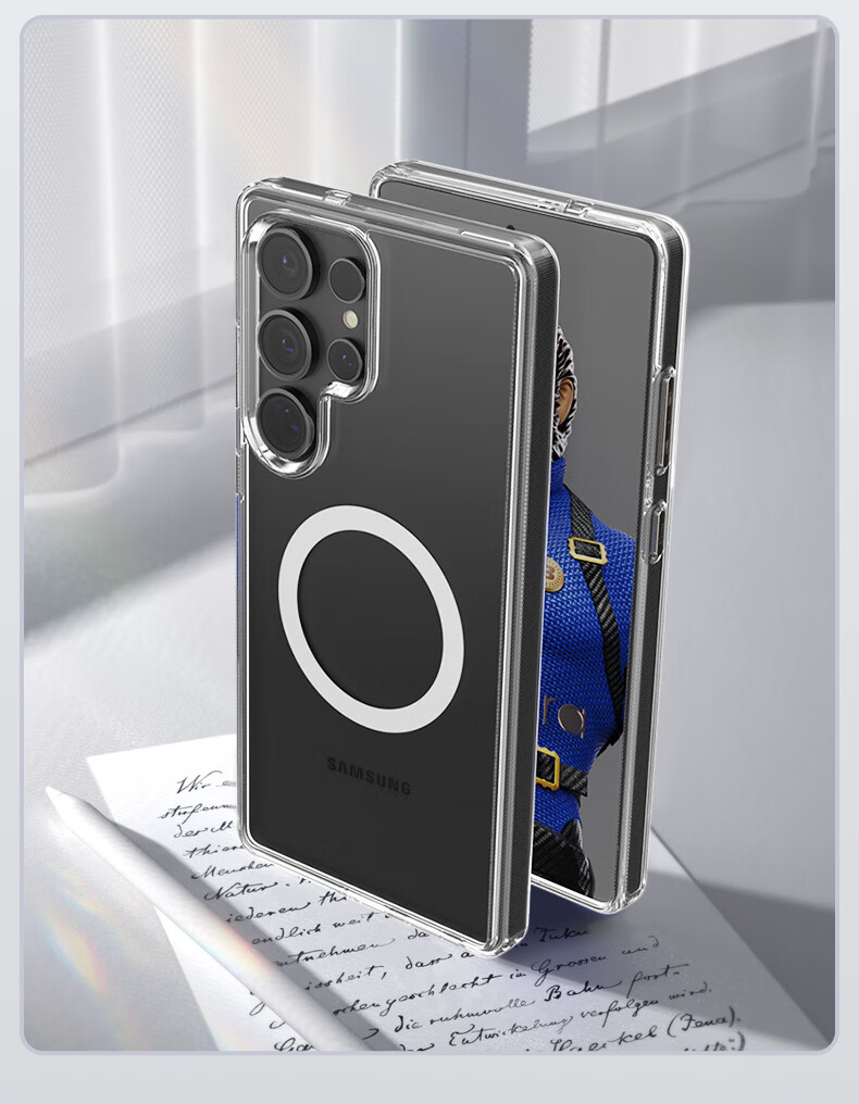 Mr. Blue Monkey is suitable for Samsung S25ultra mobile phone case, high-definition, transparent, convenient magnetic charging, anti-fall and anti-fingerprint protective case