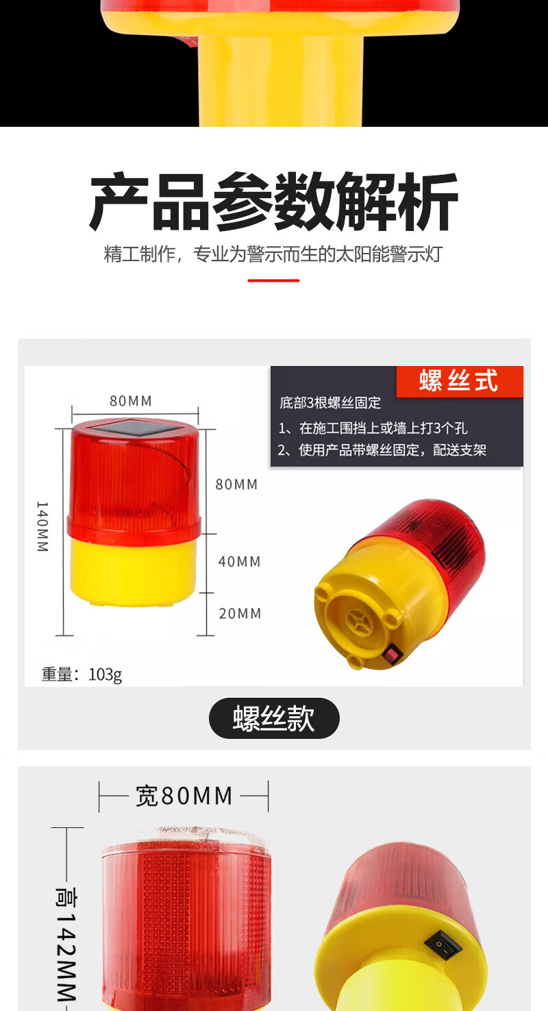 Ruifulai warning light solar night flash warning light construction site construction enclosure flash warning light large cylindrical