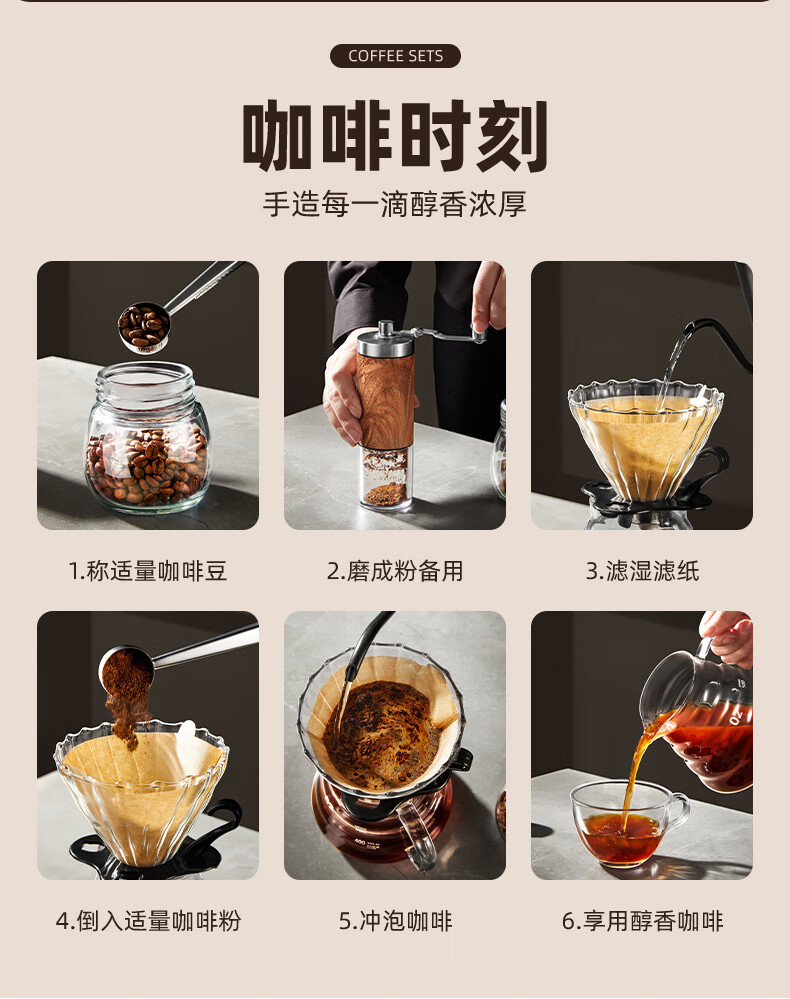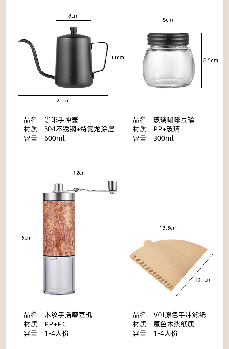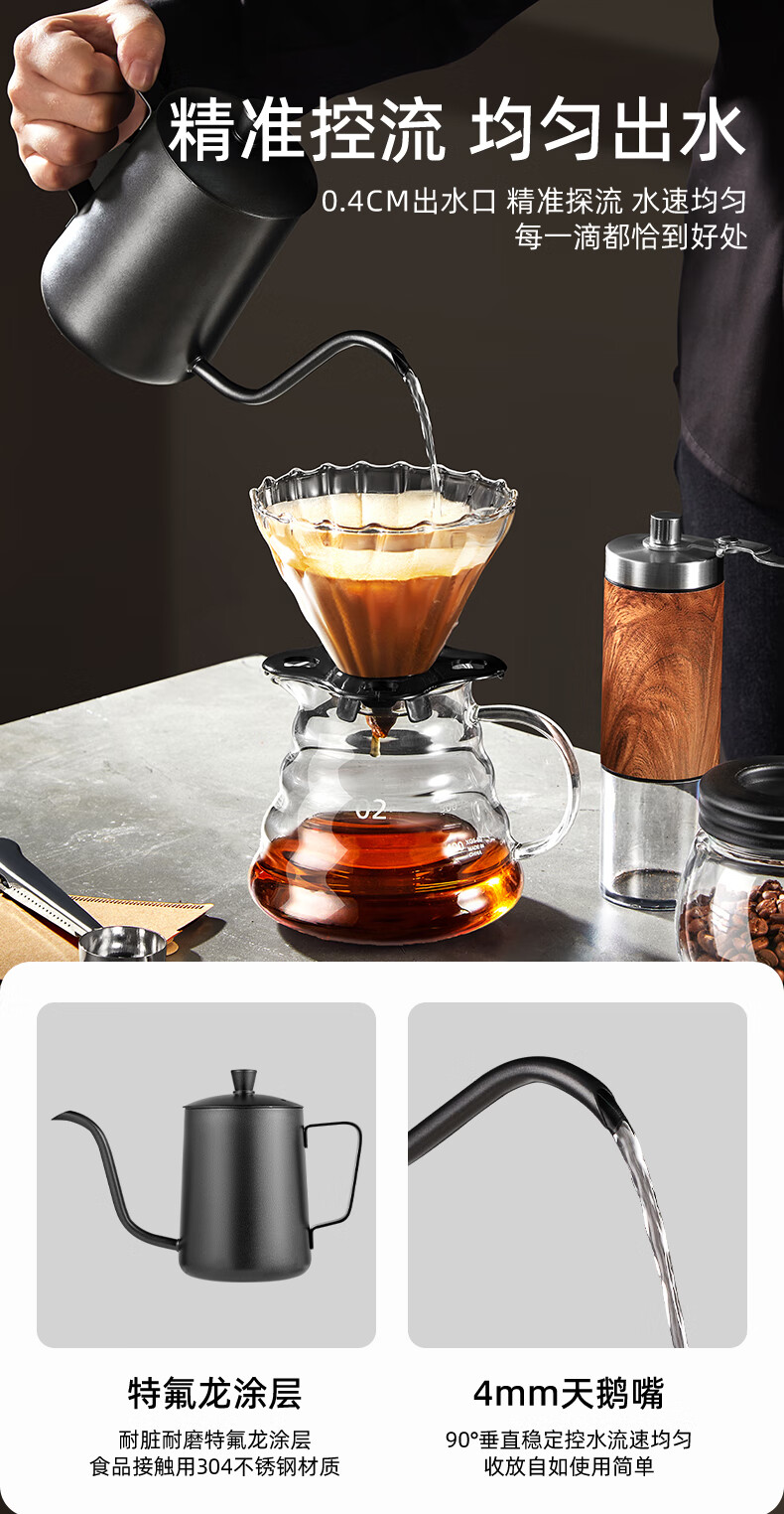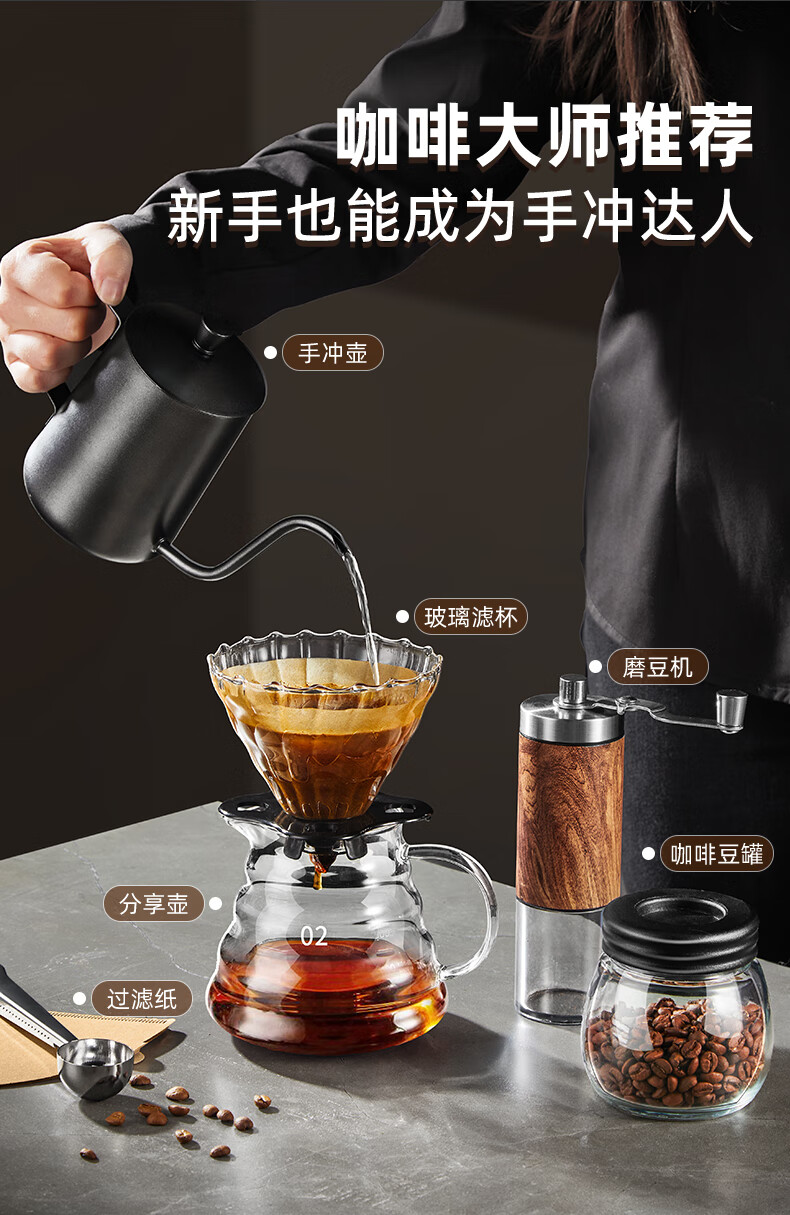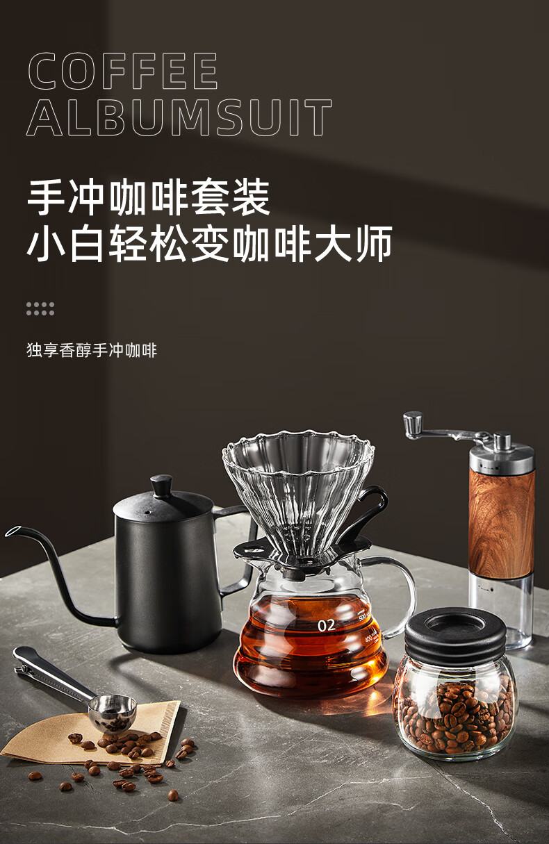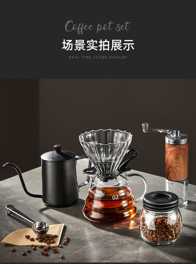 PAKCHOICE hand-brewed coffee pot set hand-ground coffee machine hand-cranked bean grinder hand-brewed coffee home coffee set basic model