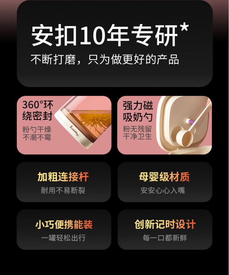 ANKOU milk powder box, infant milk powder can, sealed can, portable rice powder box, light-proof food supplement with magnetic scraper 800ML