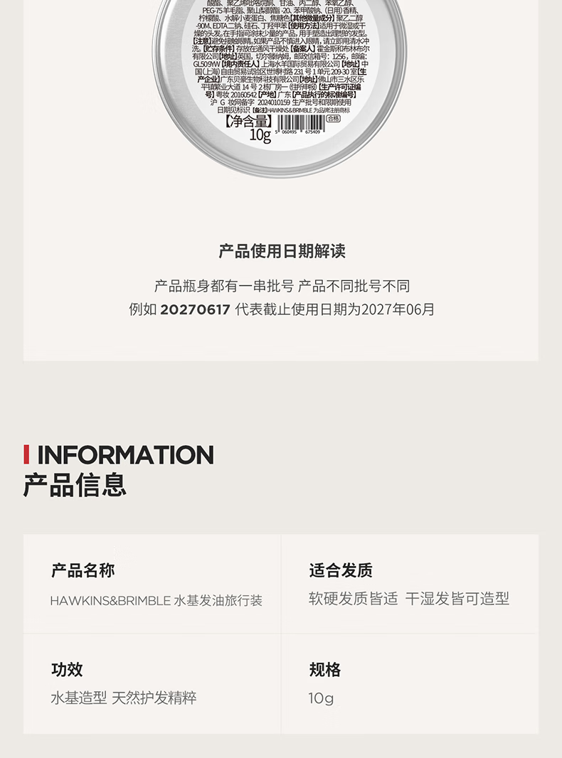 HAWKINS & BRIMBLE Hawkins small silver jar water-based hair oil, wax, mud, hair oil 10g, travel size