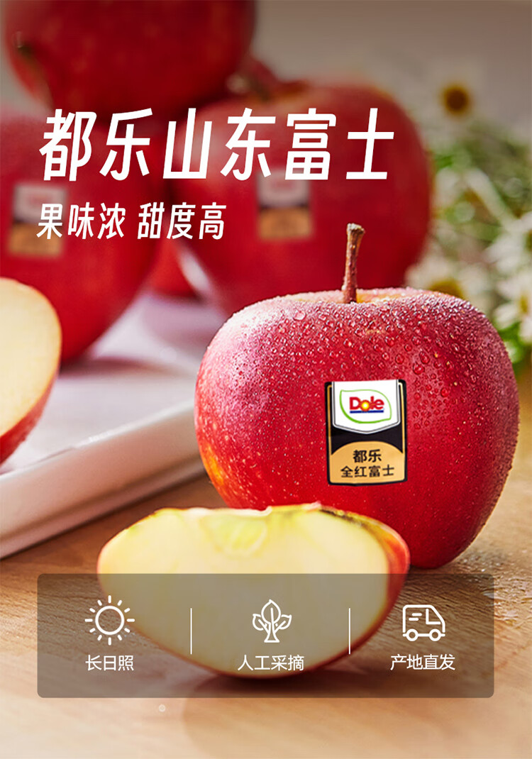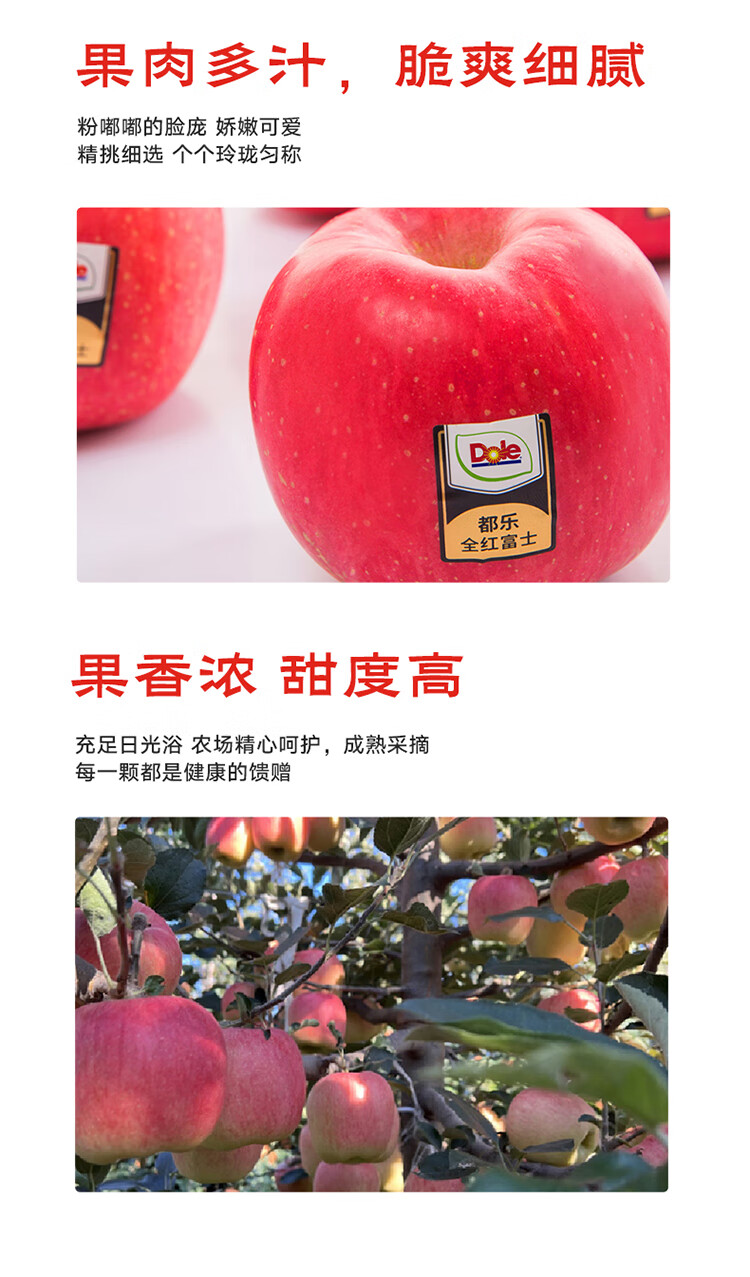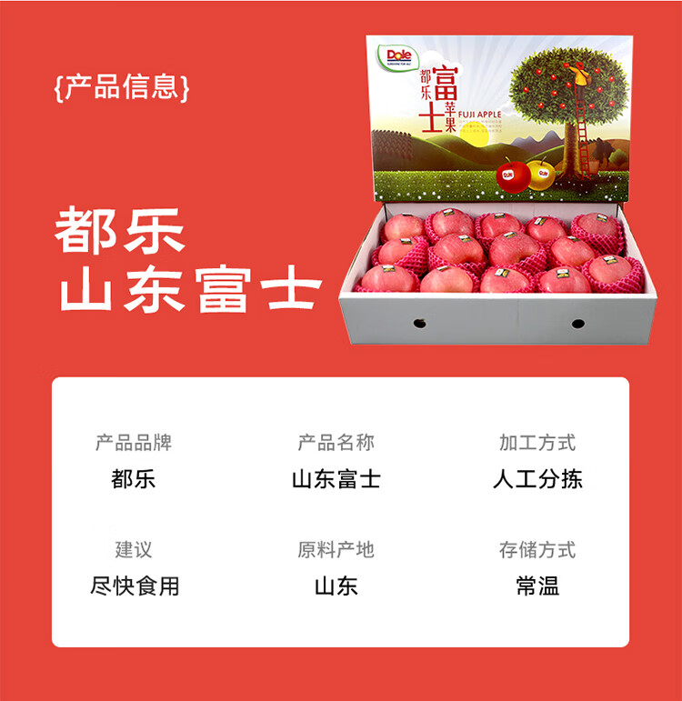 Dole Shandong Full Red Fuji 8kg, 12-14 pieces, single fruit 250g+, overflowing with fruity aroma, free shipping