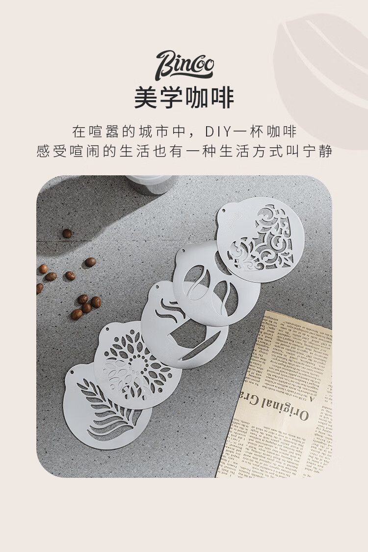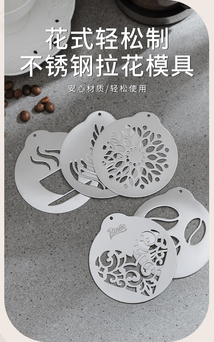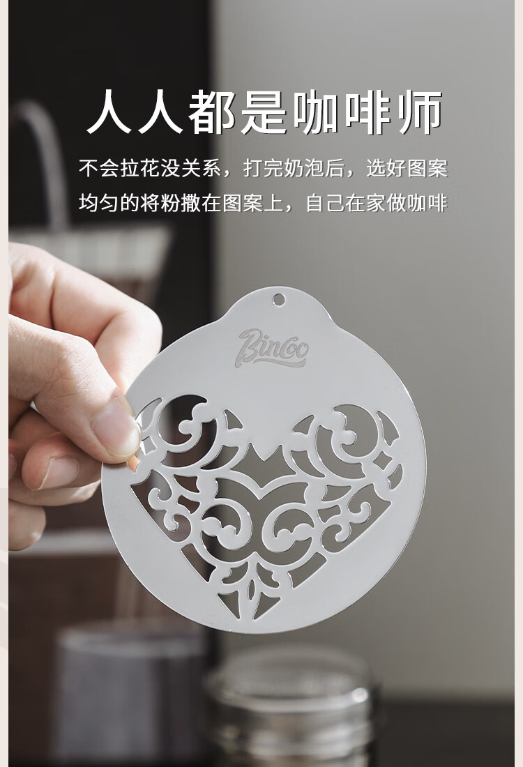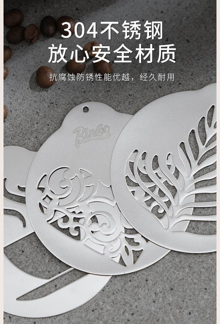 Bincoo coffee latte art mold pattern stainless steel DIY fancy coffee powder printing spray latte art tool