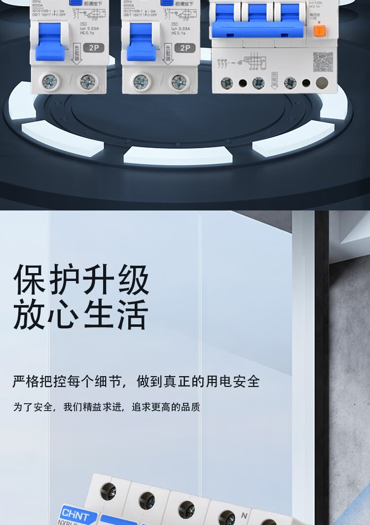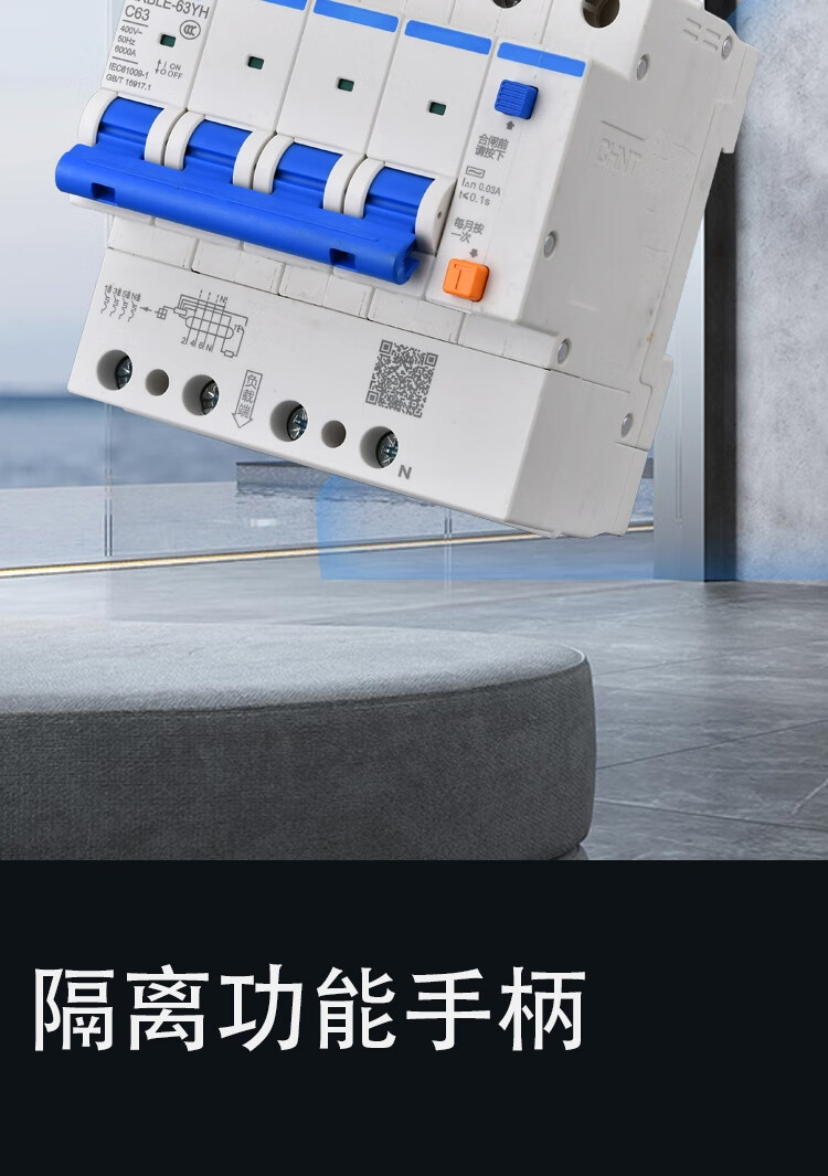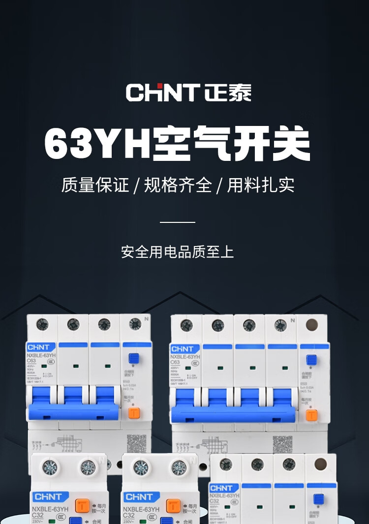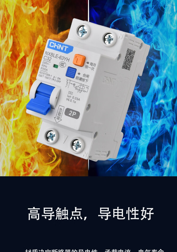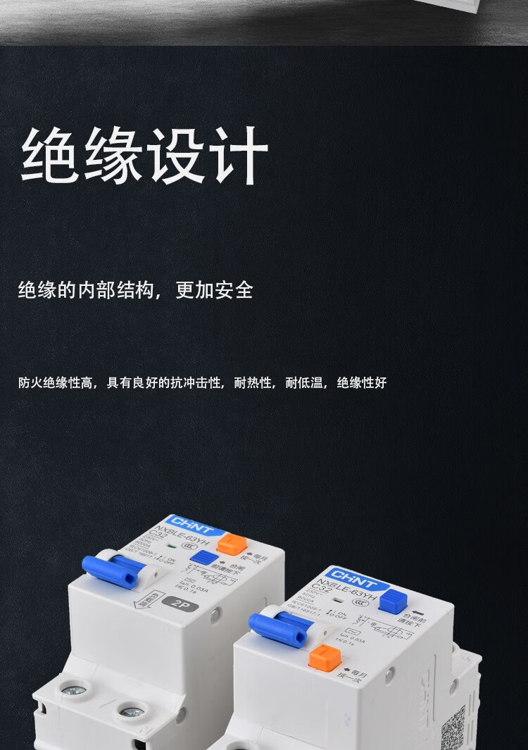 Chint leakage protector 2P 20A NXBLE-63YH series small household circuit breaker household narrow body main switch air switch air switch with leakage protection 30mA 4.5kA