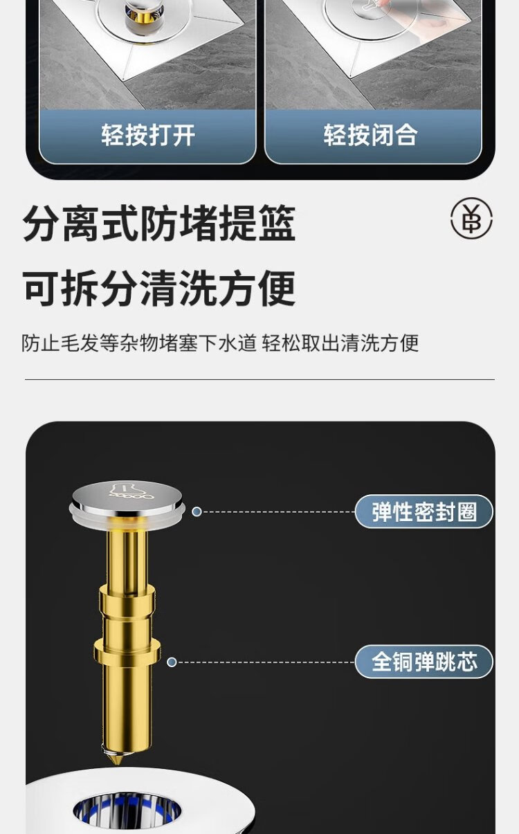 Bingyou foot-operated floor drain deodorizer bounce core bathroom seal cover sewer pipe anti-return odor artifact universal press