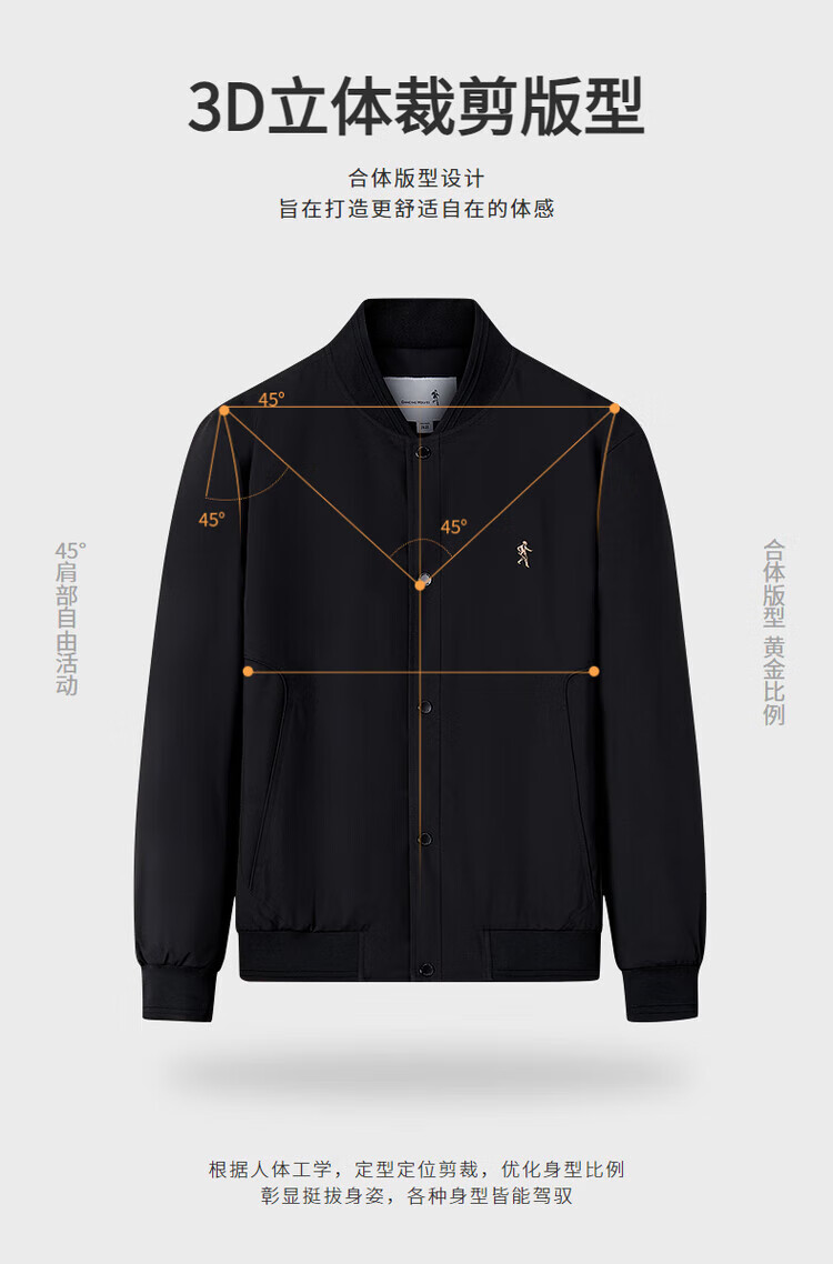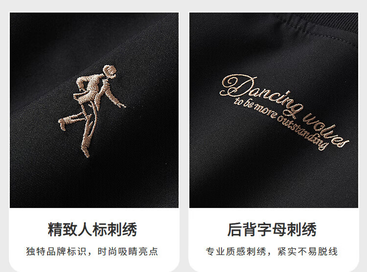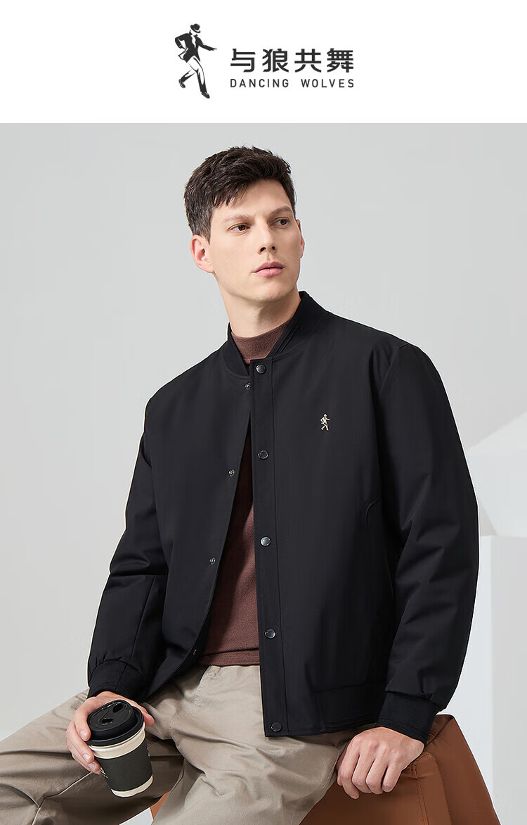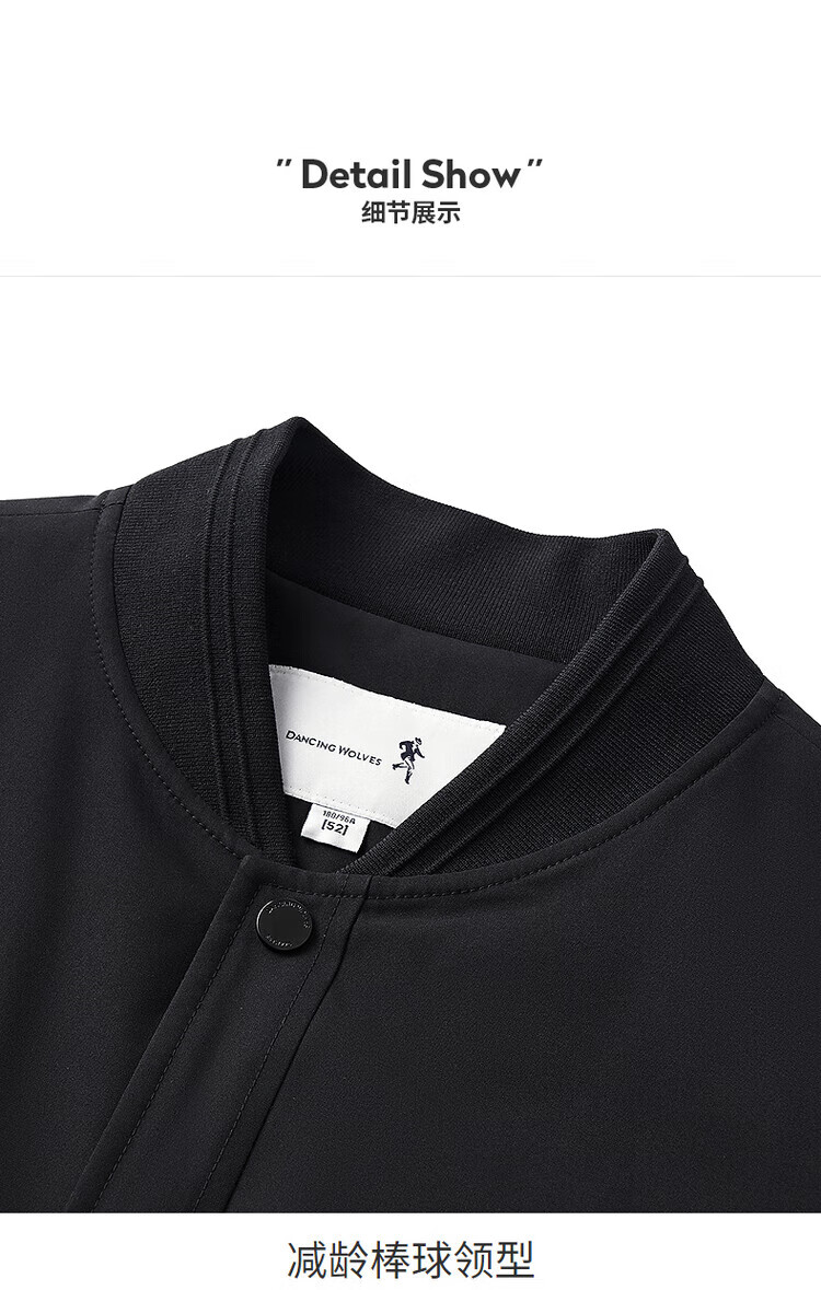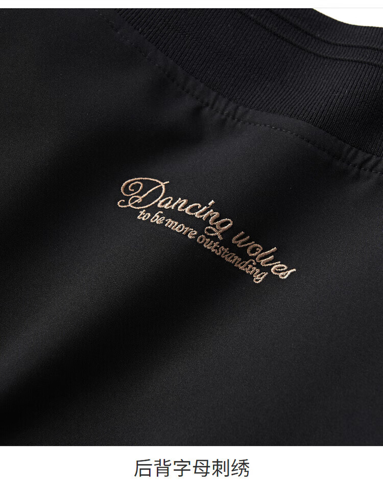 Dances with Wolves, three-dimensional and crisp, fashionable baseball uniform, versatile jacket, men's casual jacket 001 black L(175)