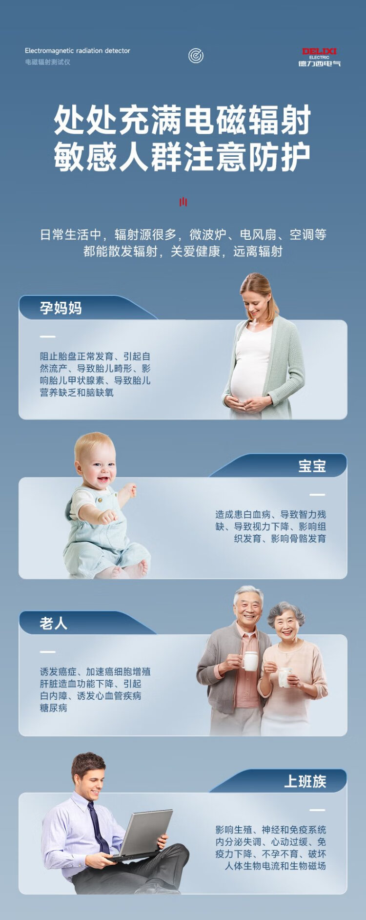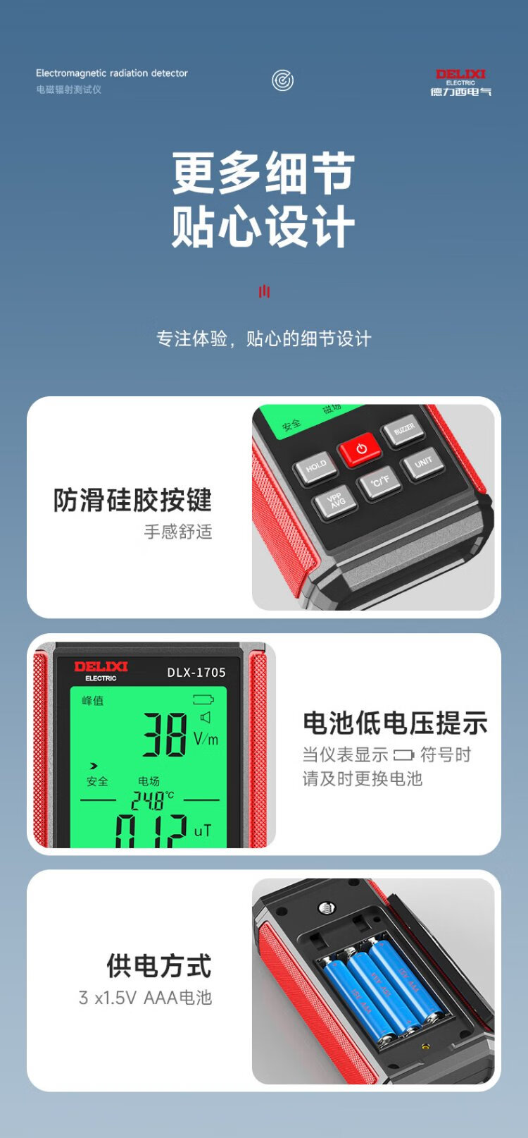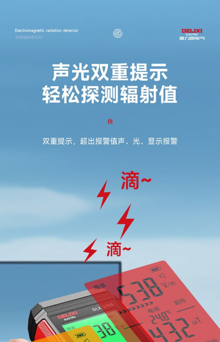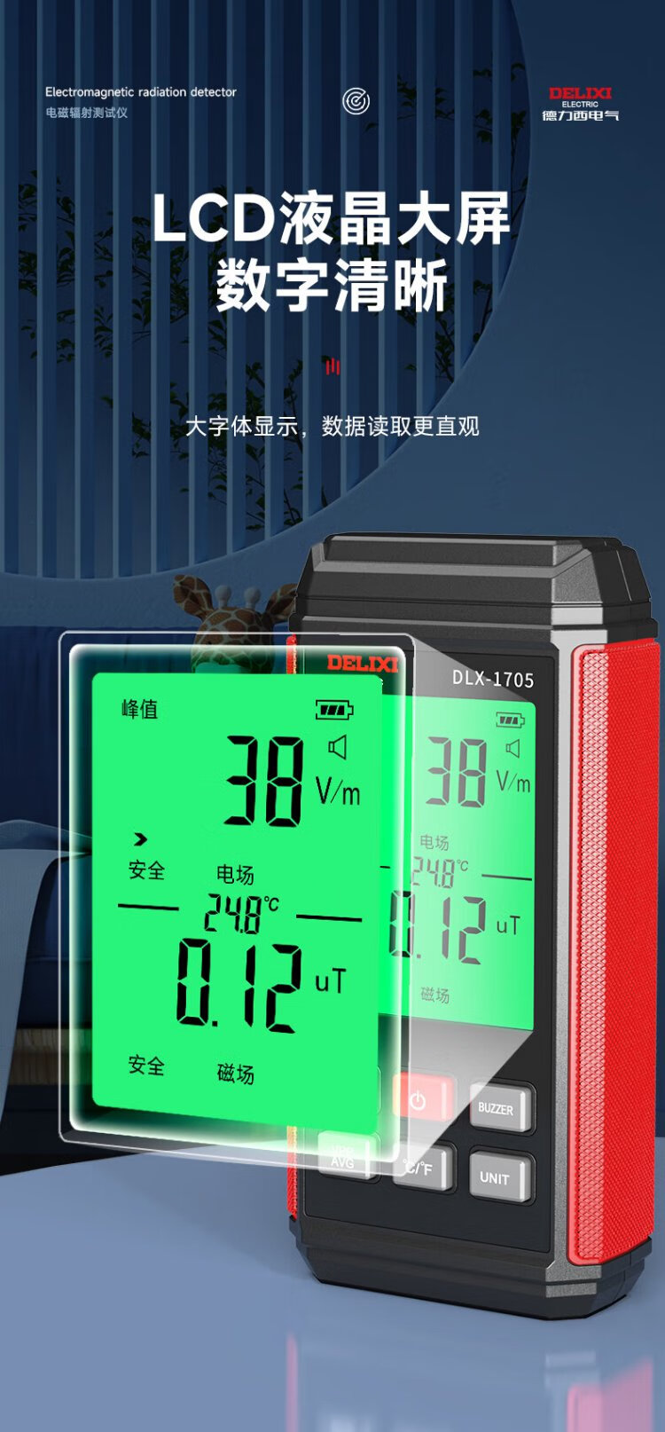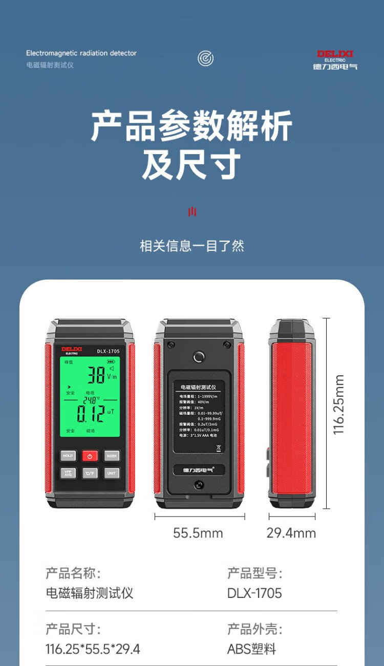 Delixi Electrical Electromagnetic Radiation Detector Indoor and Outdoor Radiation Meter Household Handheld High-Precision Radiation Meter