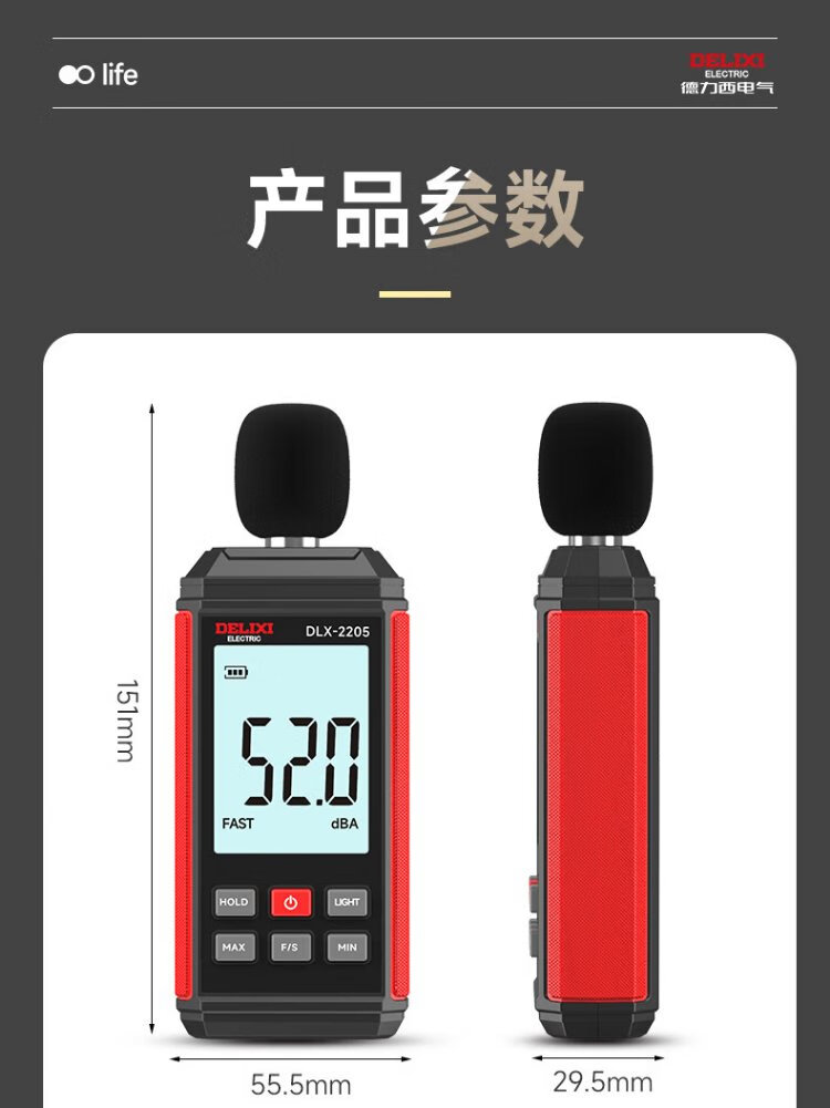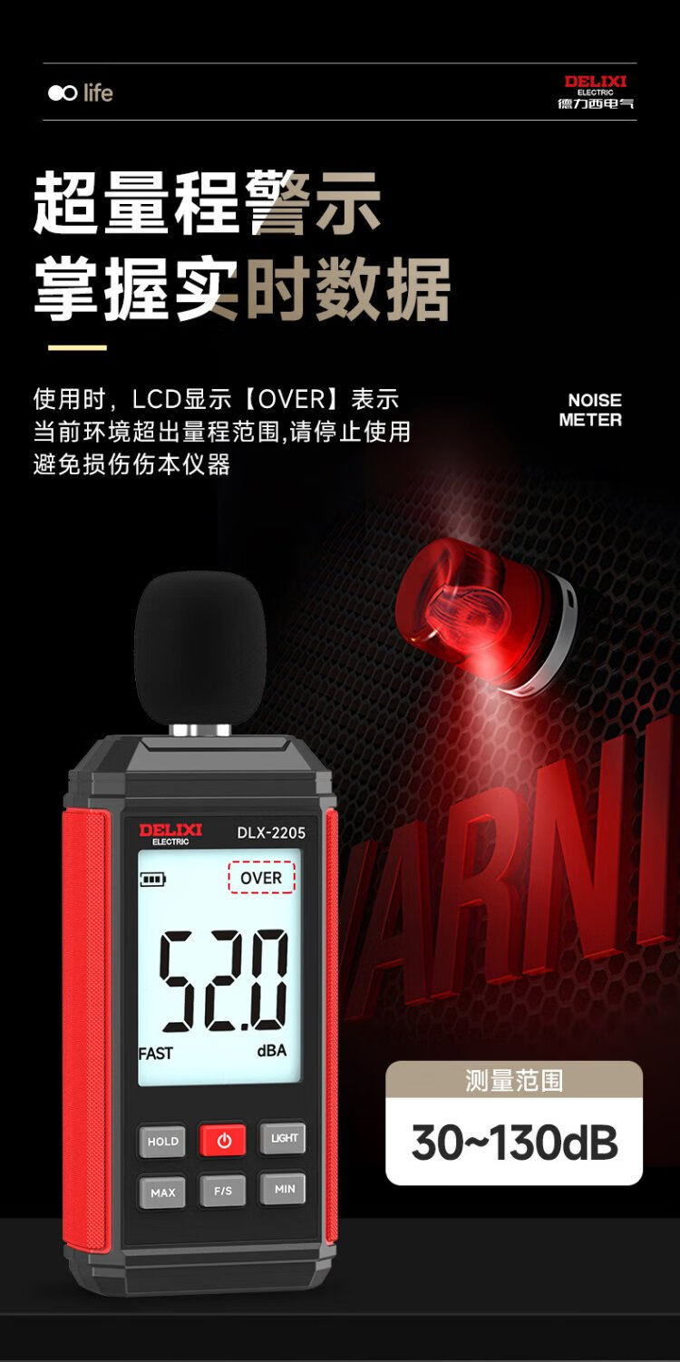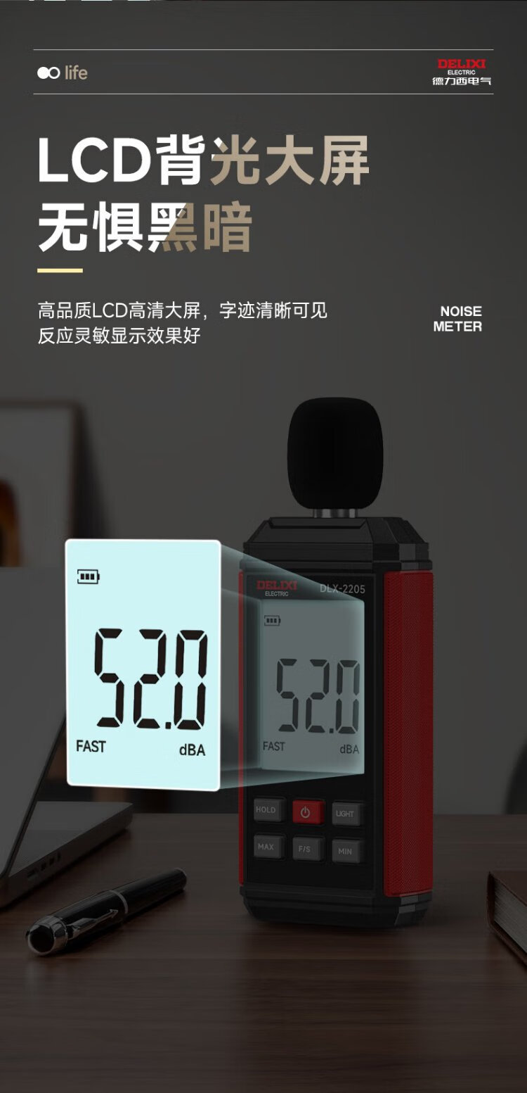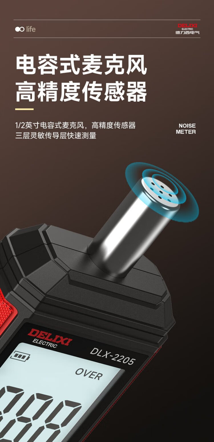 Delixi electrical noise meter digital high-precision volume detector noise detector sound tester decibel meter DLX-2205