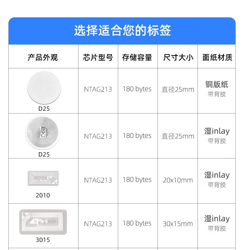 Diaojiang (NTAG213 anti-metal (white) (pack of 10)) one-touch transfer NFC chip with self-adhesive electronic label paper anti-counterfeiting reading and writing website music unit