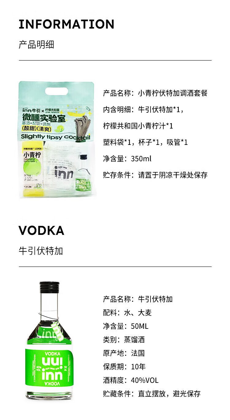 Niuyin Little Lime Vodka Set 350ml