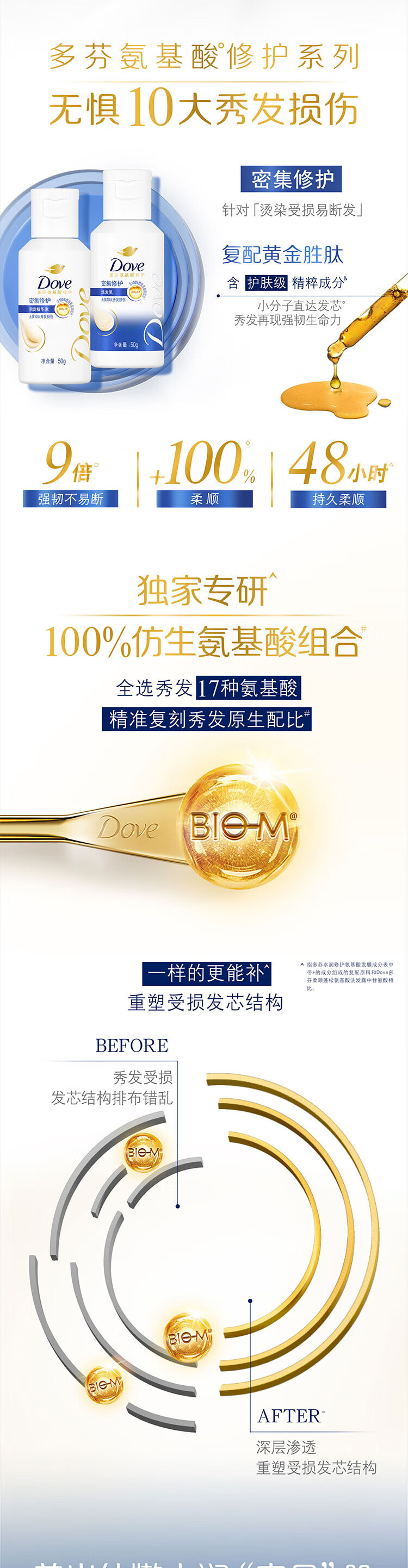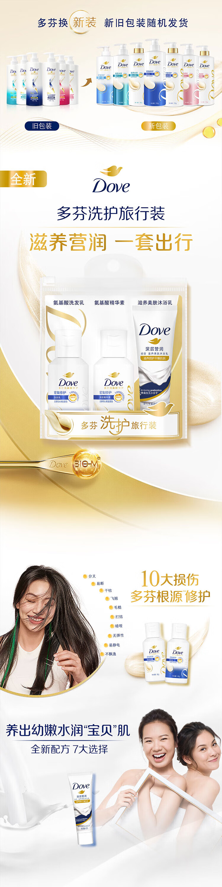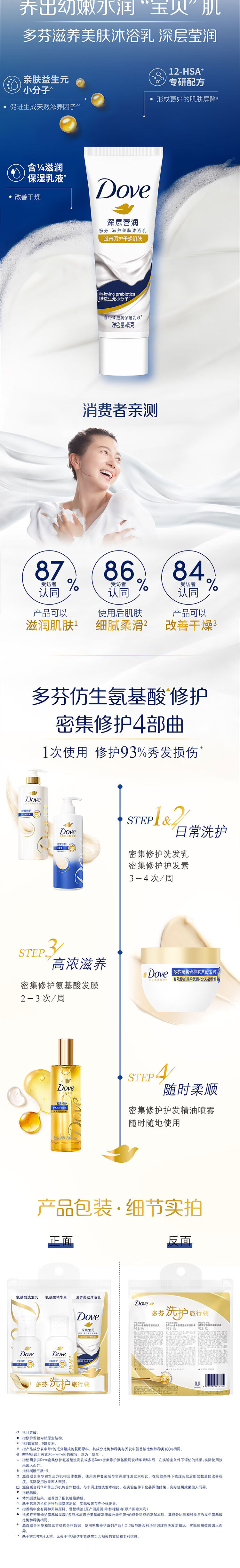 Dove shampoo 50g + conditioner 50g + shower gel 45g
