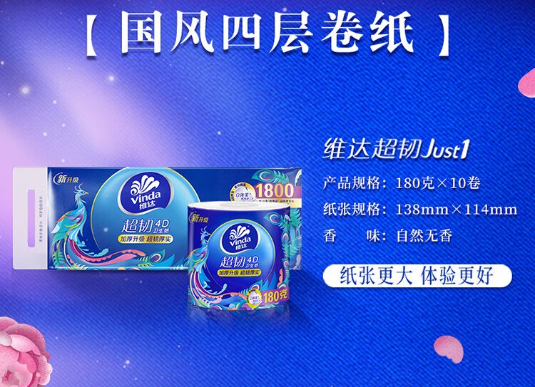 Vinda super tough cored rolling paper 4 layers 180g*10 rolls