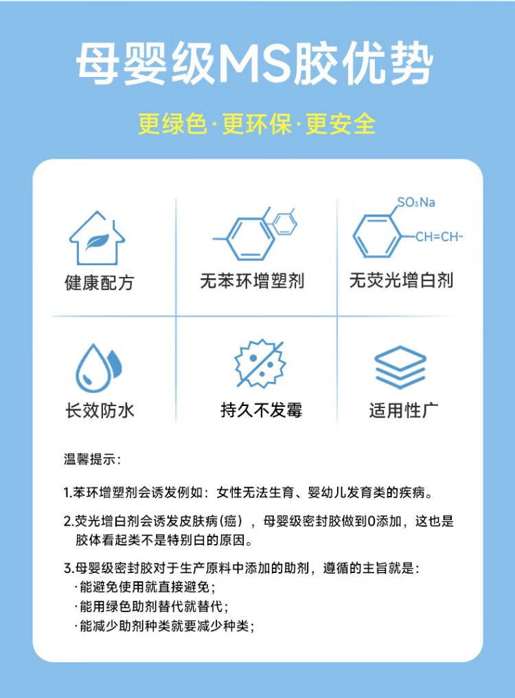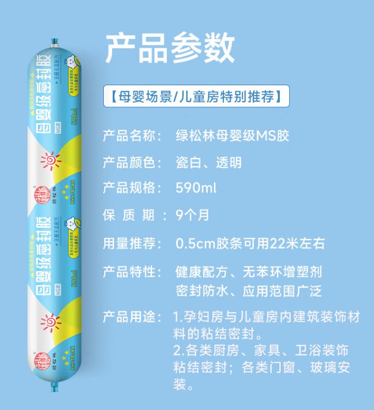 Green Pine Forest maternal and infant grade sealant ms modified silane glue, benzene-free, formaldehyde-free, odor-free, environmentally friendly glue, special structural glue 590ml, porcelain white