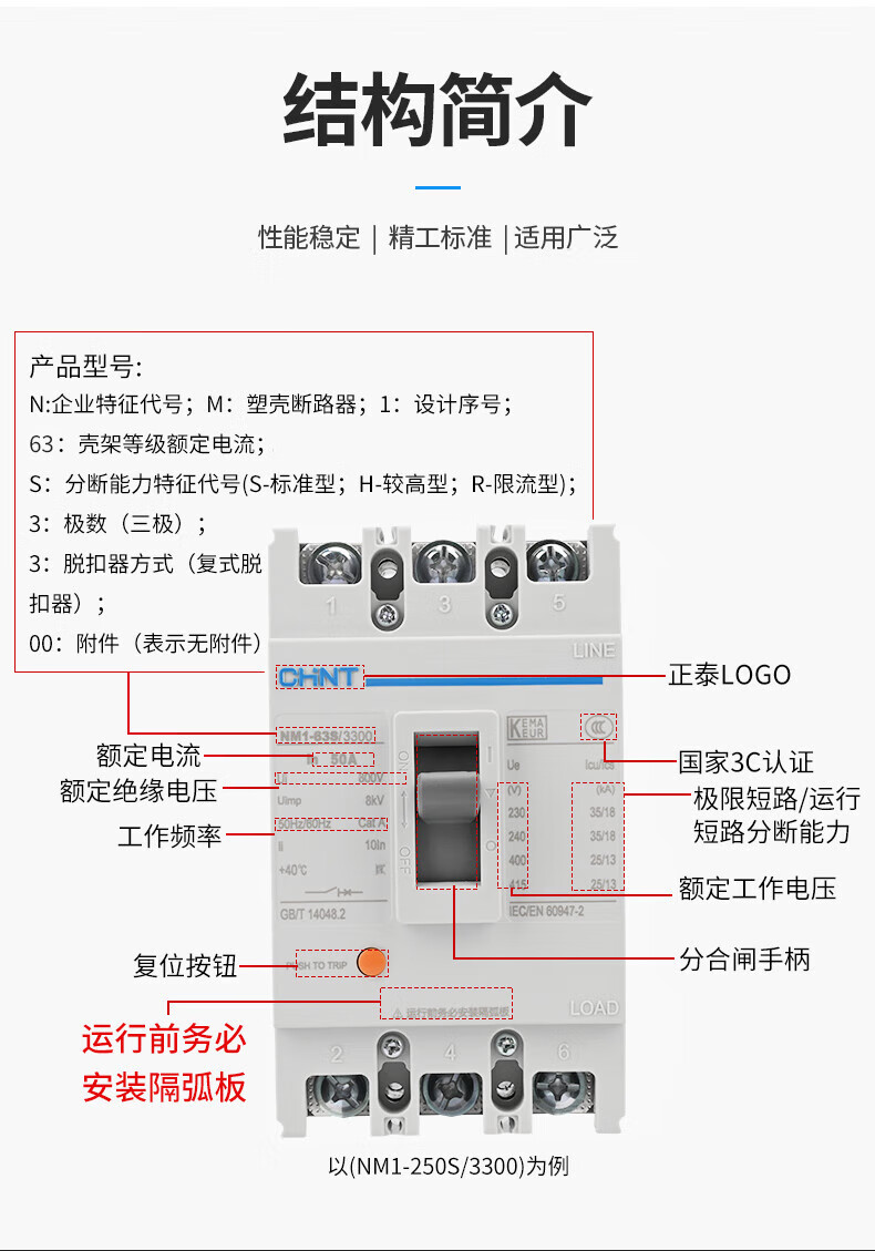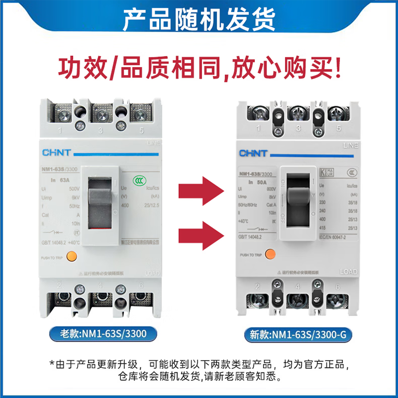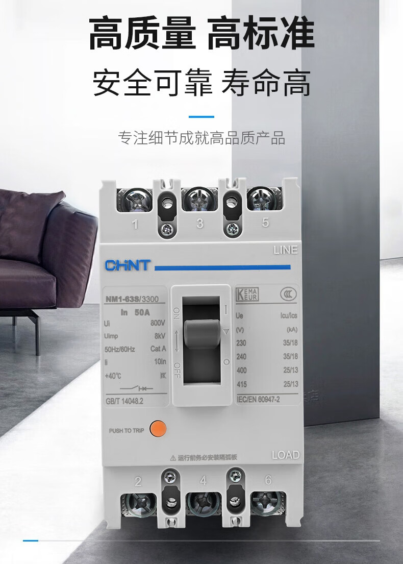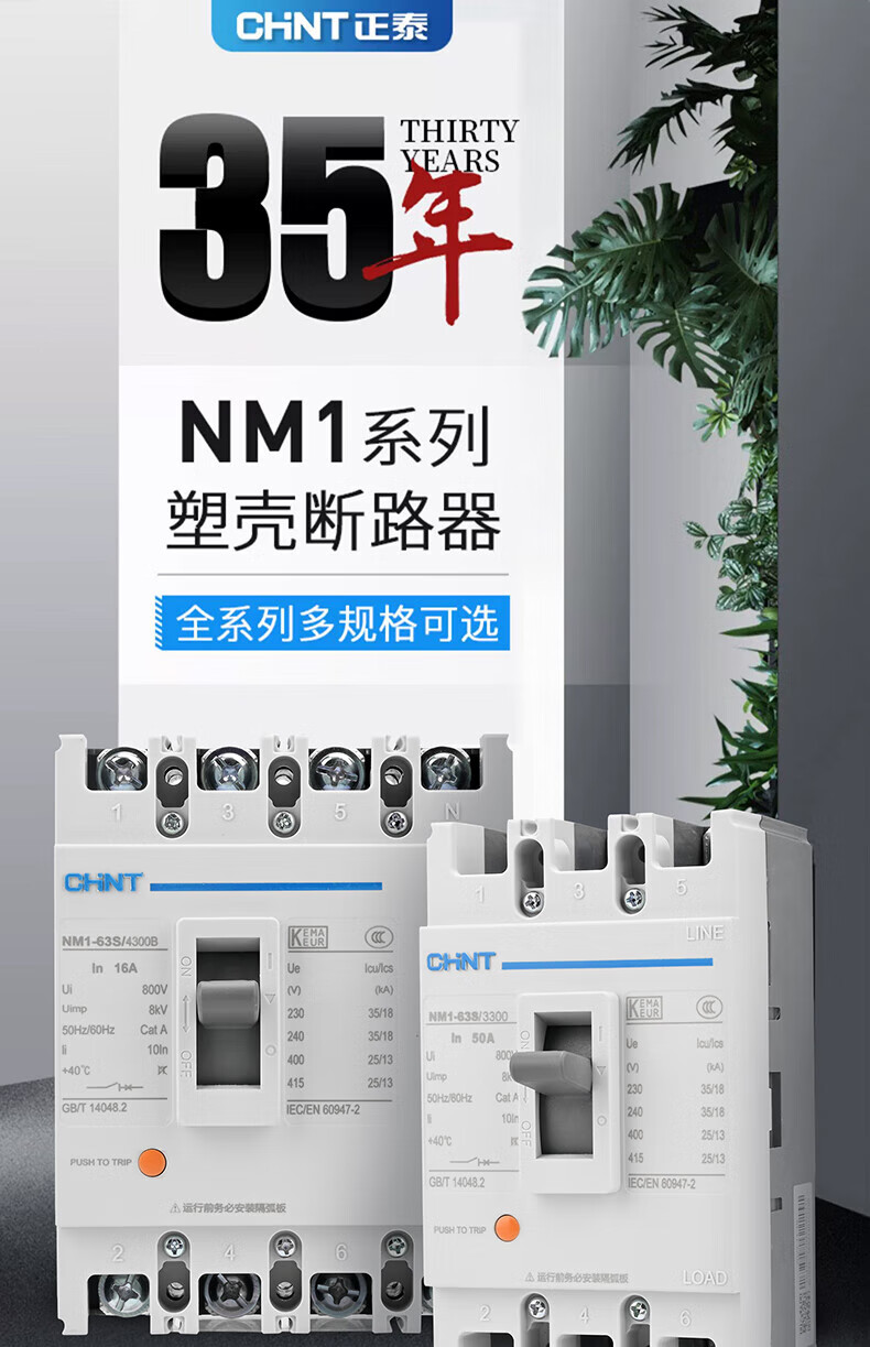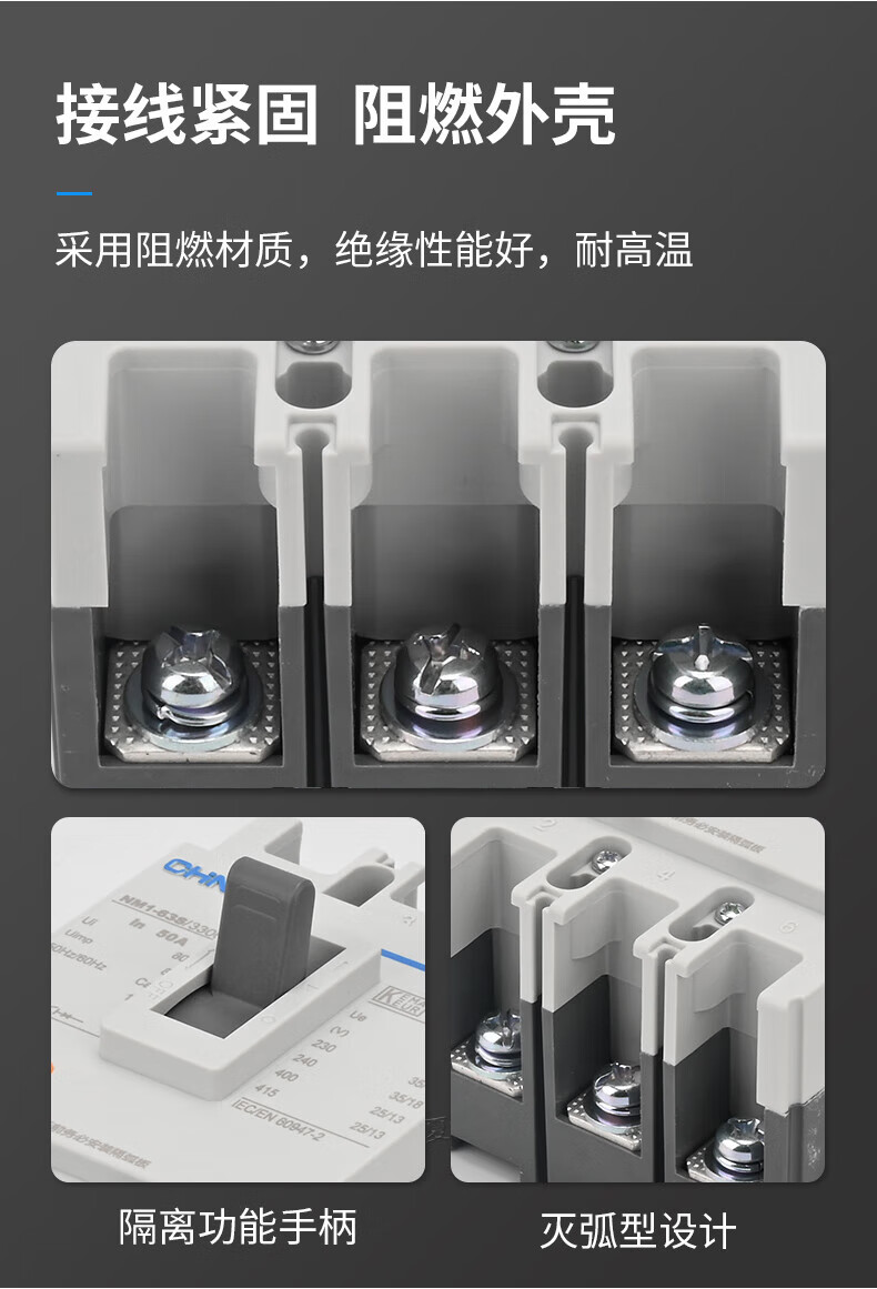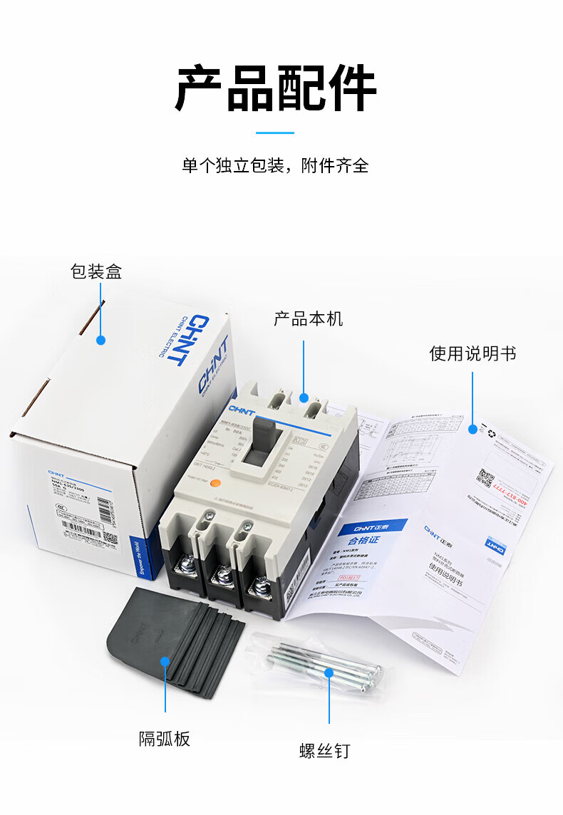 Chint (CHNT) plastic case air switch 380V NM1-125S/3300 100A Jingdong self-operated genuine CHNT large air switch three-phase 100A circuit breaker