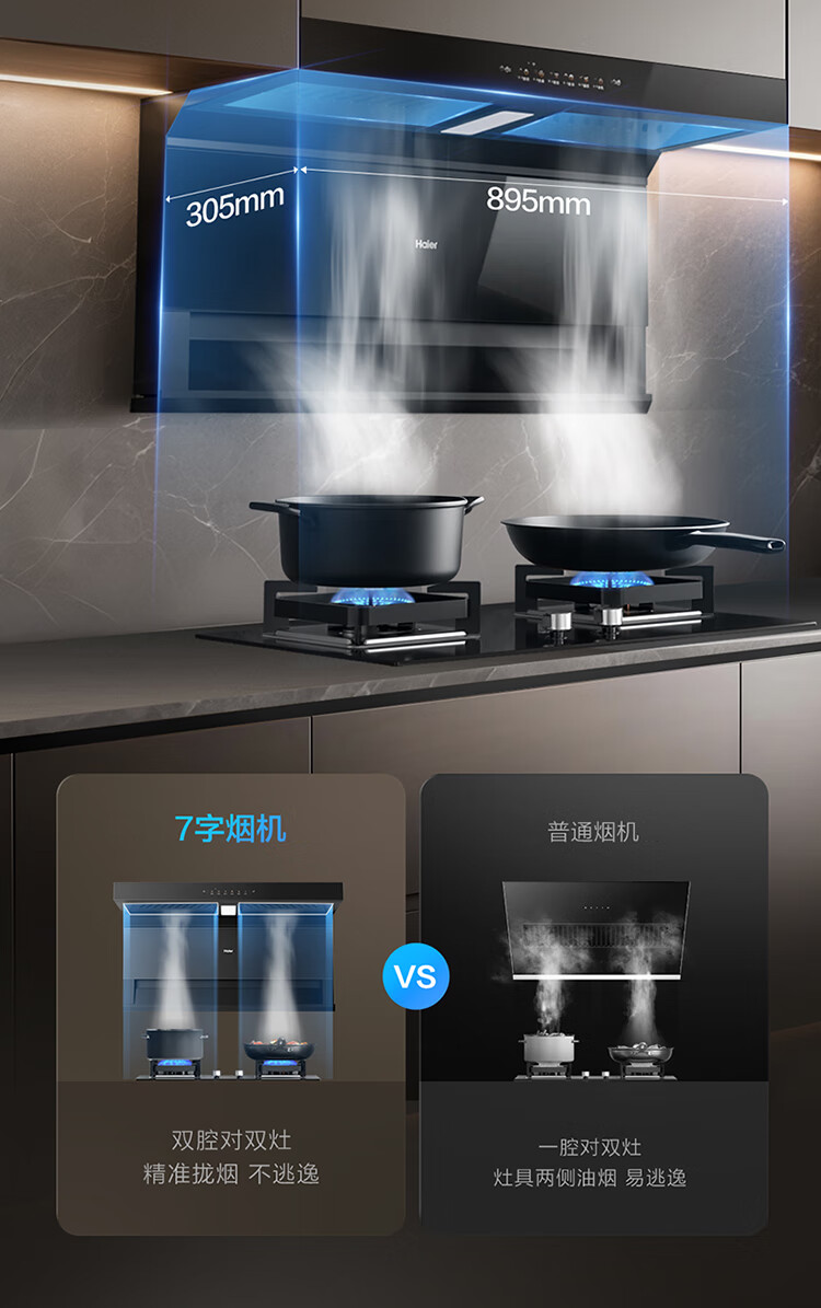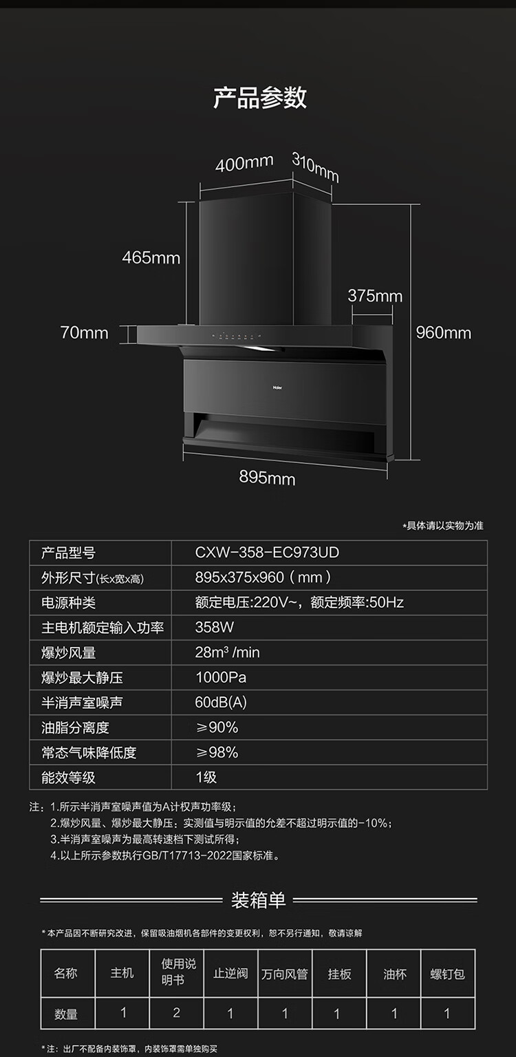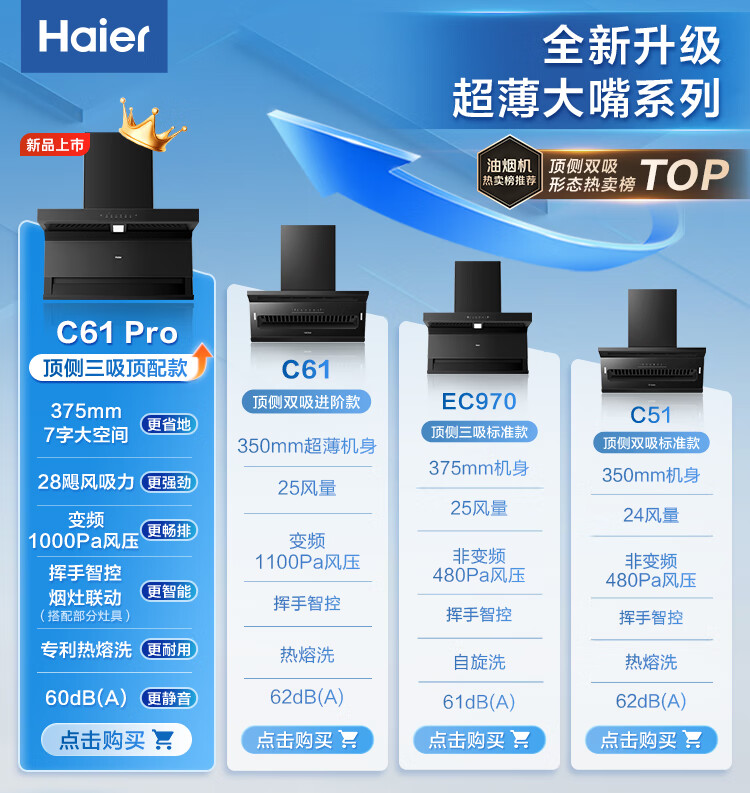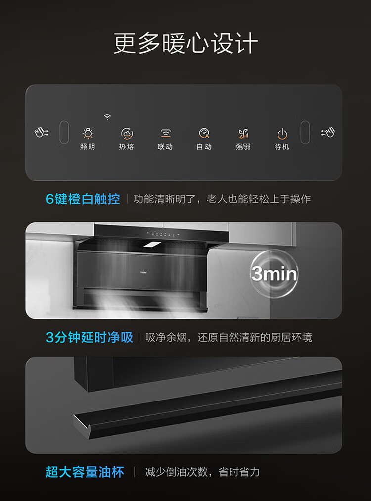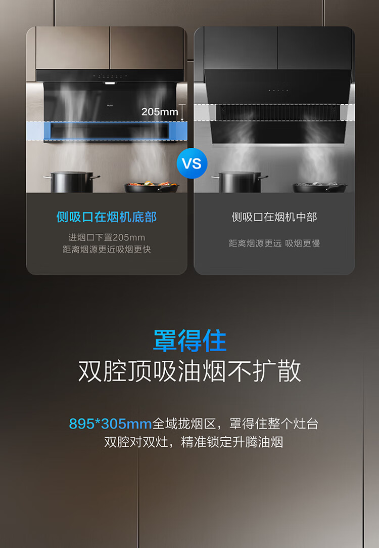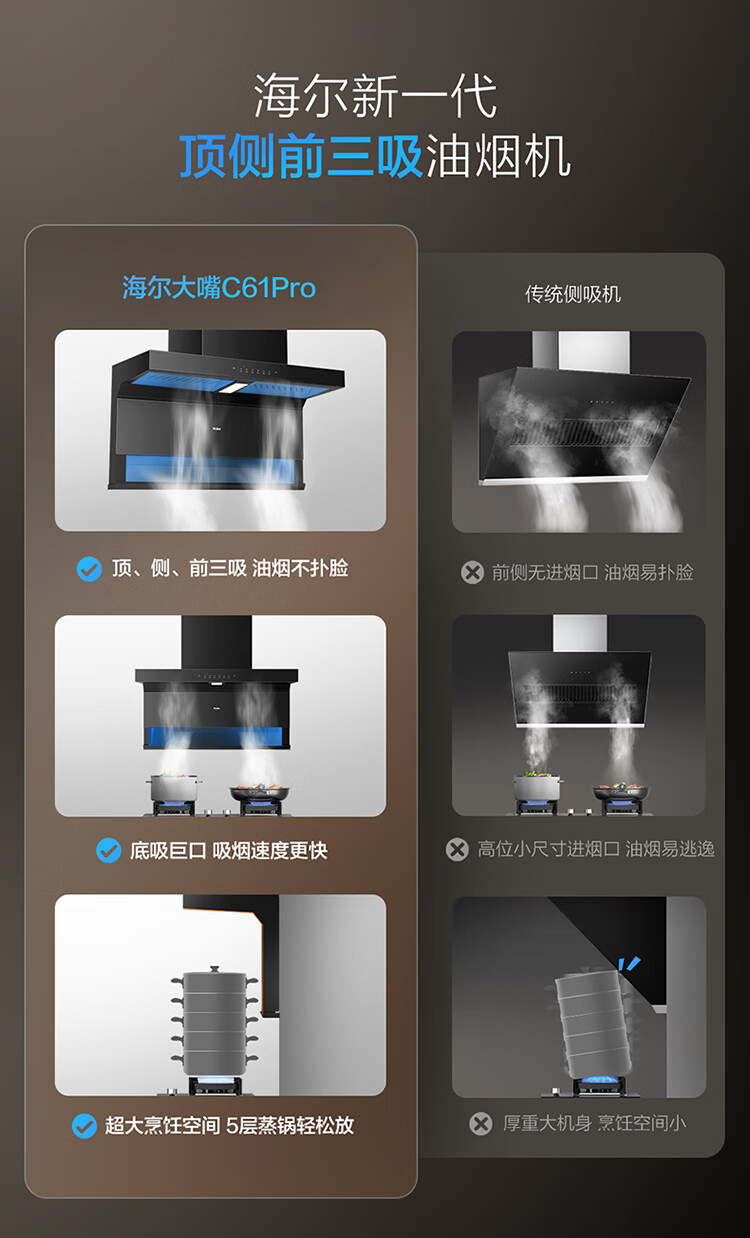 Haier (Haier) Huawei three-fold single range hood, suction and exhaust range hood top side double suction large mouth C61pro 28 air volume stove linkage hot melt wash 973UD
