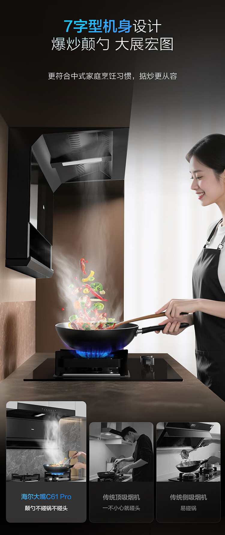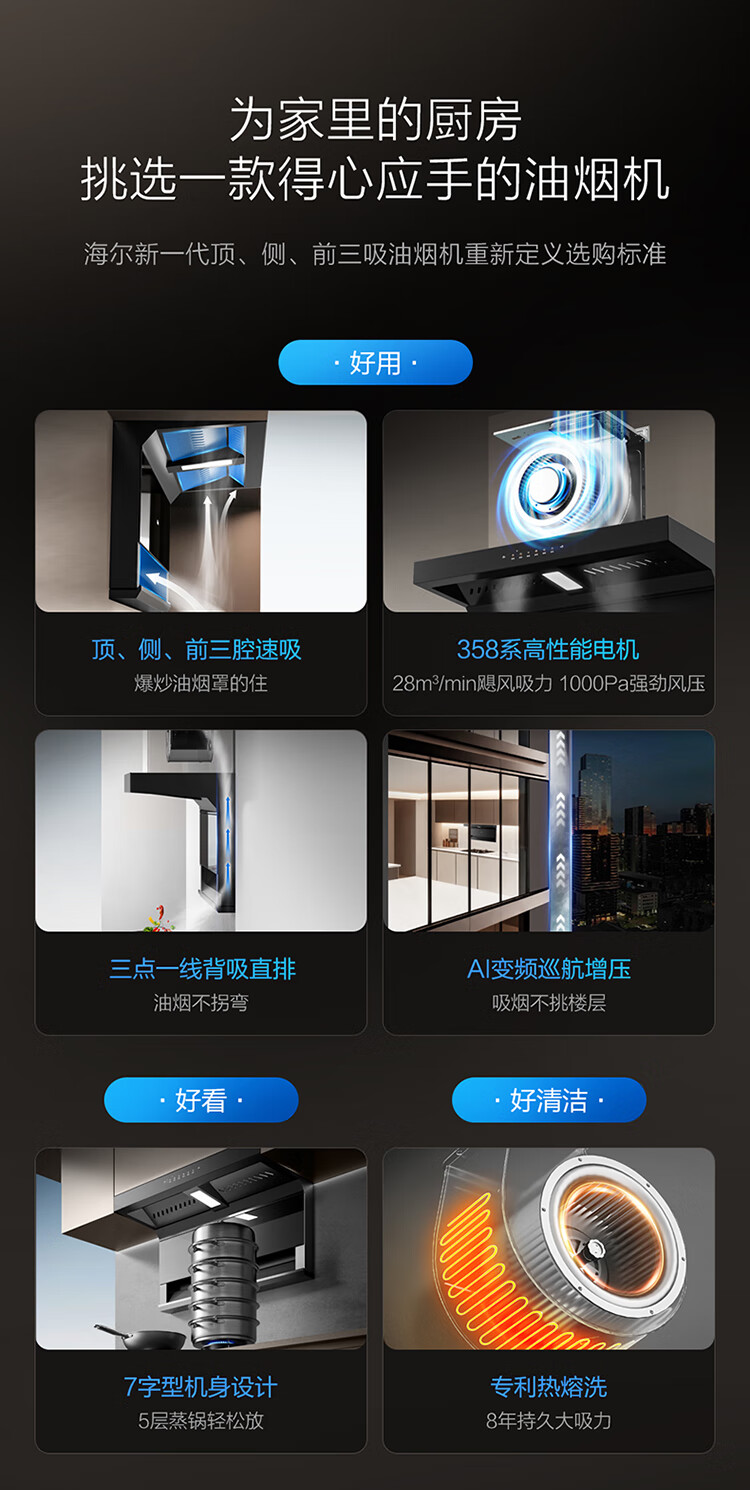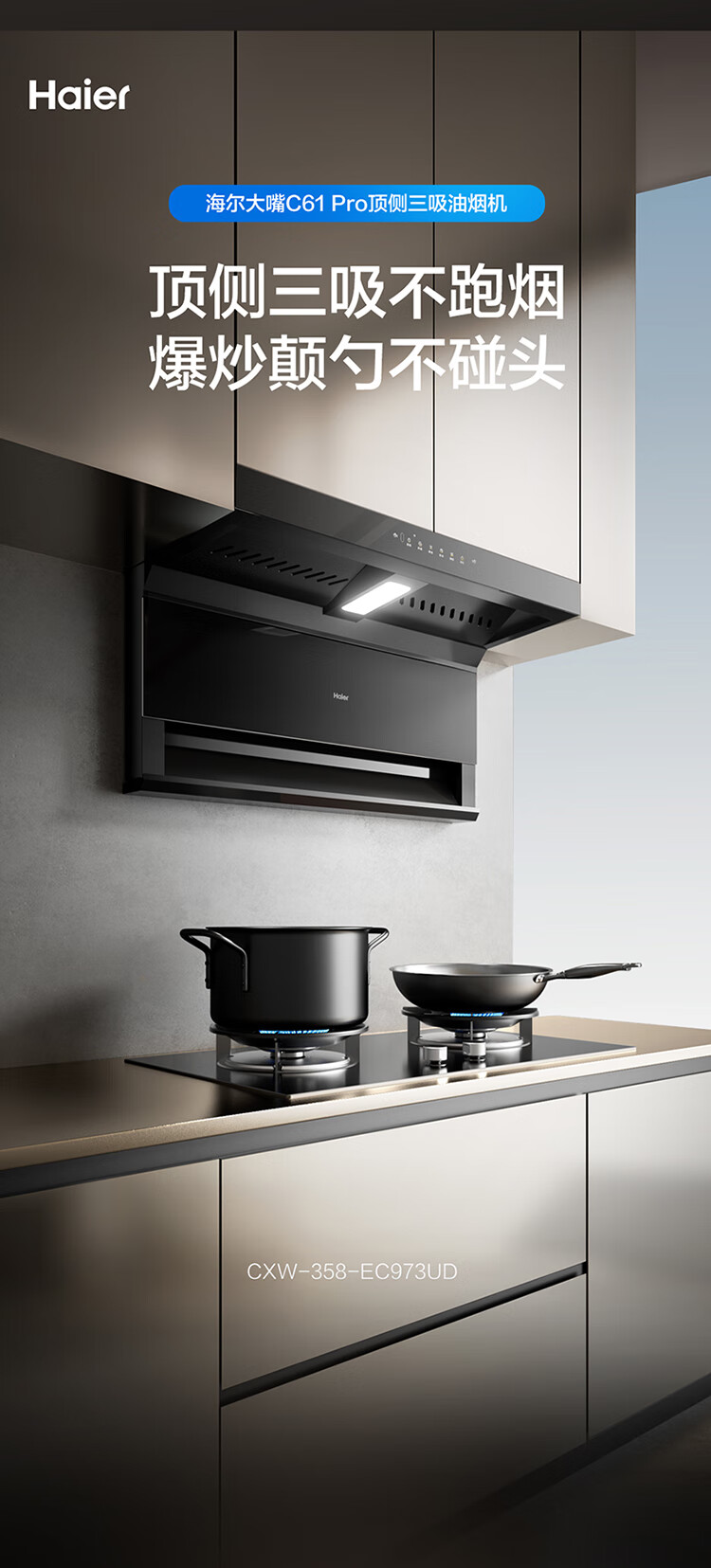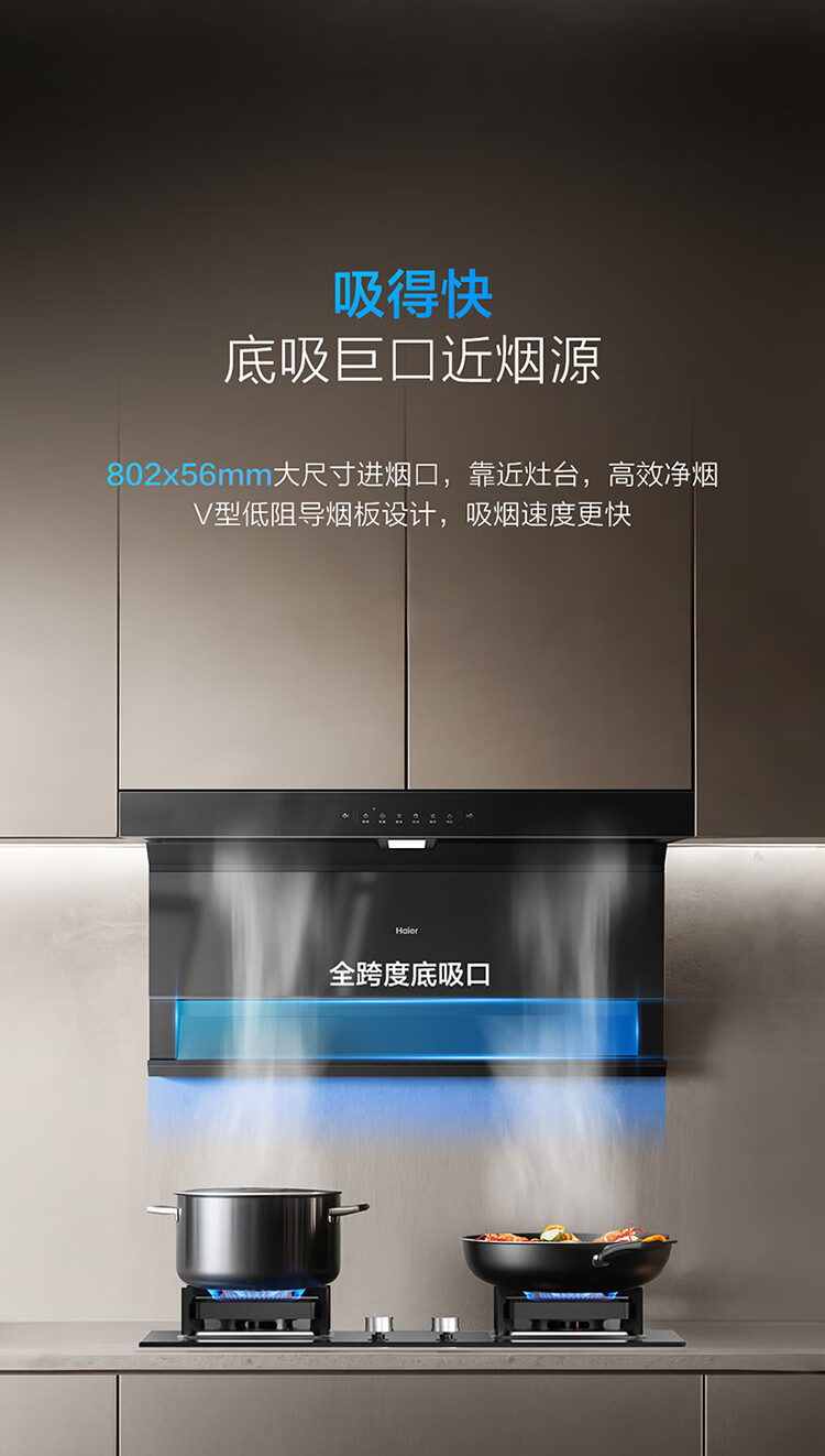 Haier (Haier) Huawei three-fold single range hood, suction and exhaust range hood top side double suction large mouth C61pro 28 air volume stove linkage hot melt wash 973UD