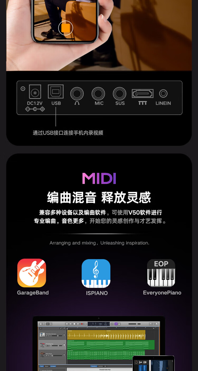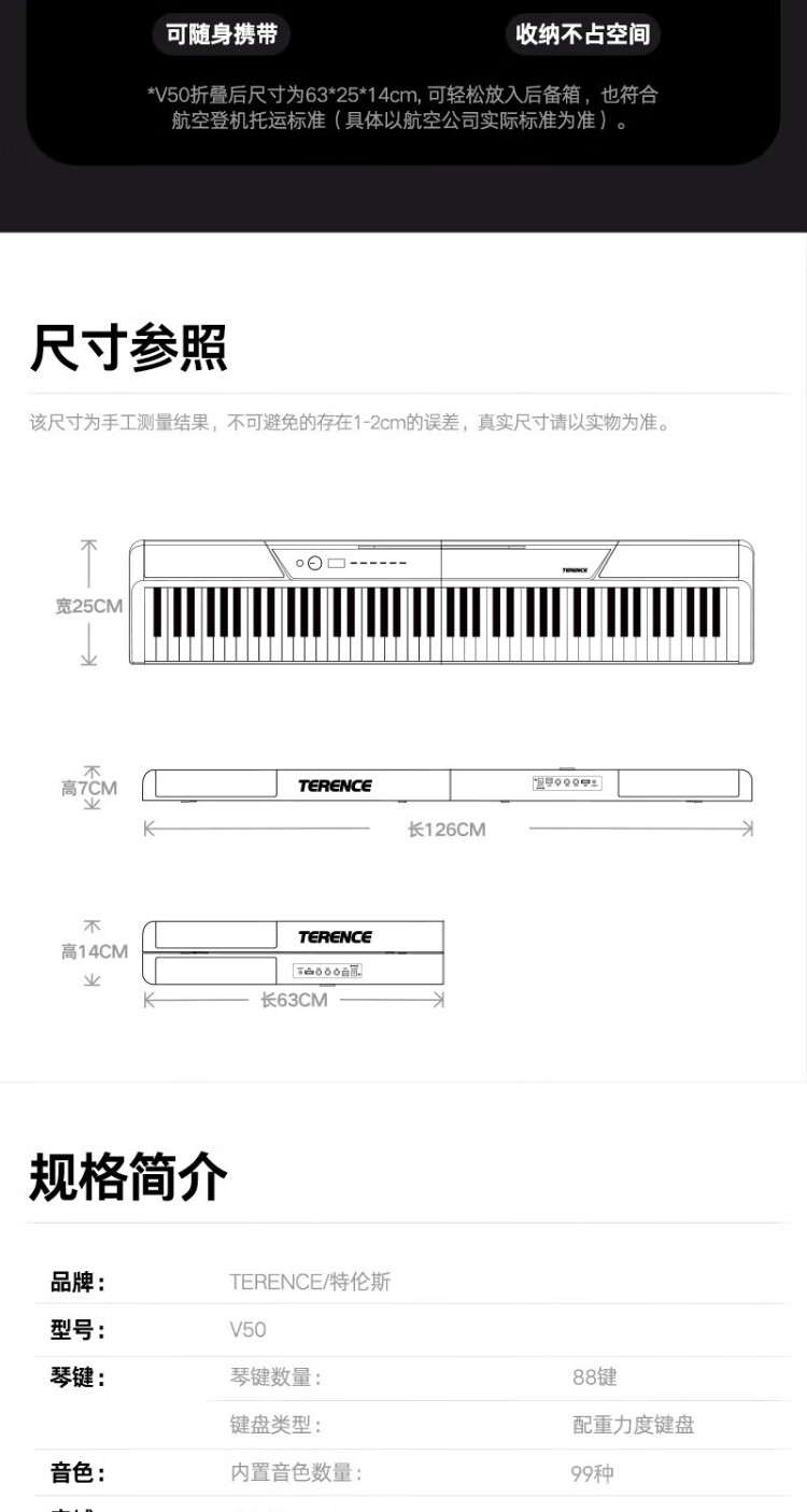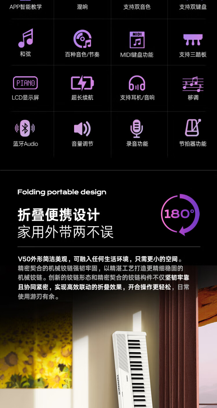 Terence V50 Folding Piano 88-key Electronic Piano Adult Children's Electronic Piano Portable Digital Electric Piano