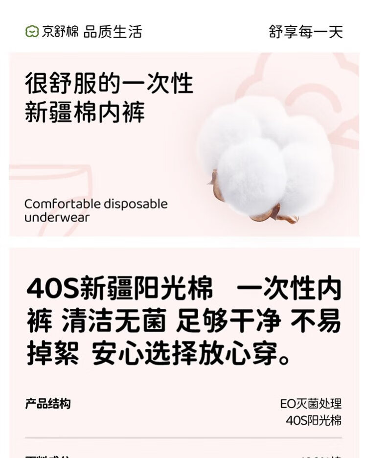 Jingshu Cotton Jingdong's own brand Xinjiang Cotton Soft Cotton Pure Cotton Lazy Daily Disposable Women's Disposable Underwear 10 Pack