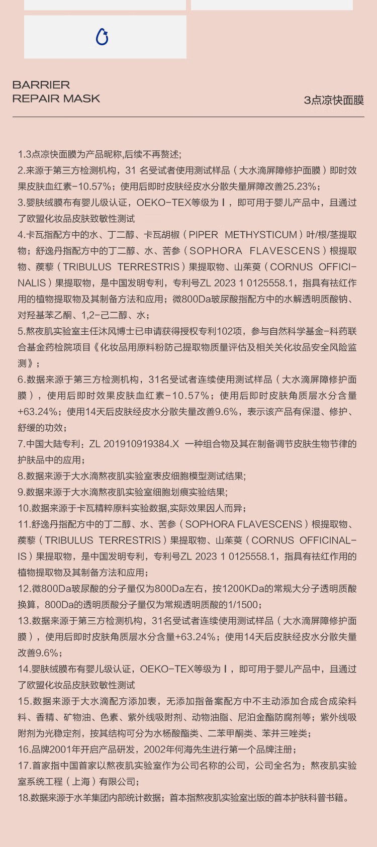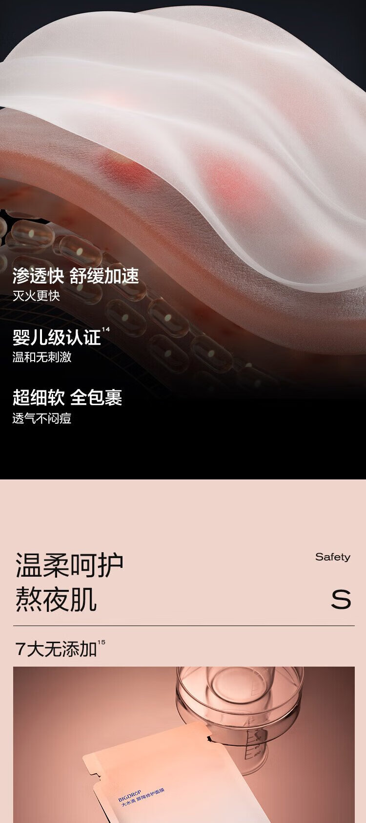 Big water drop 3-point mask, stay up late, barrier repair, soothing, hydrating, soothing redness 800Da single piece trial size skin care products