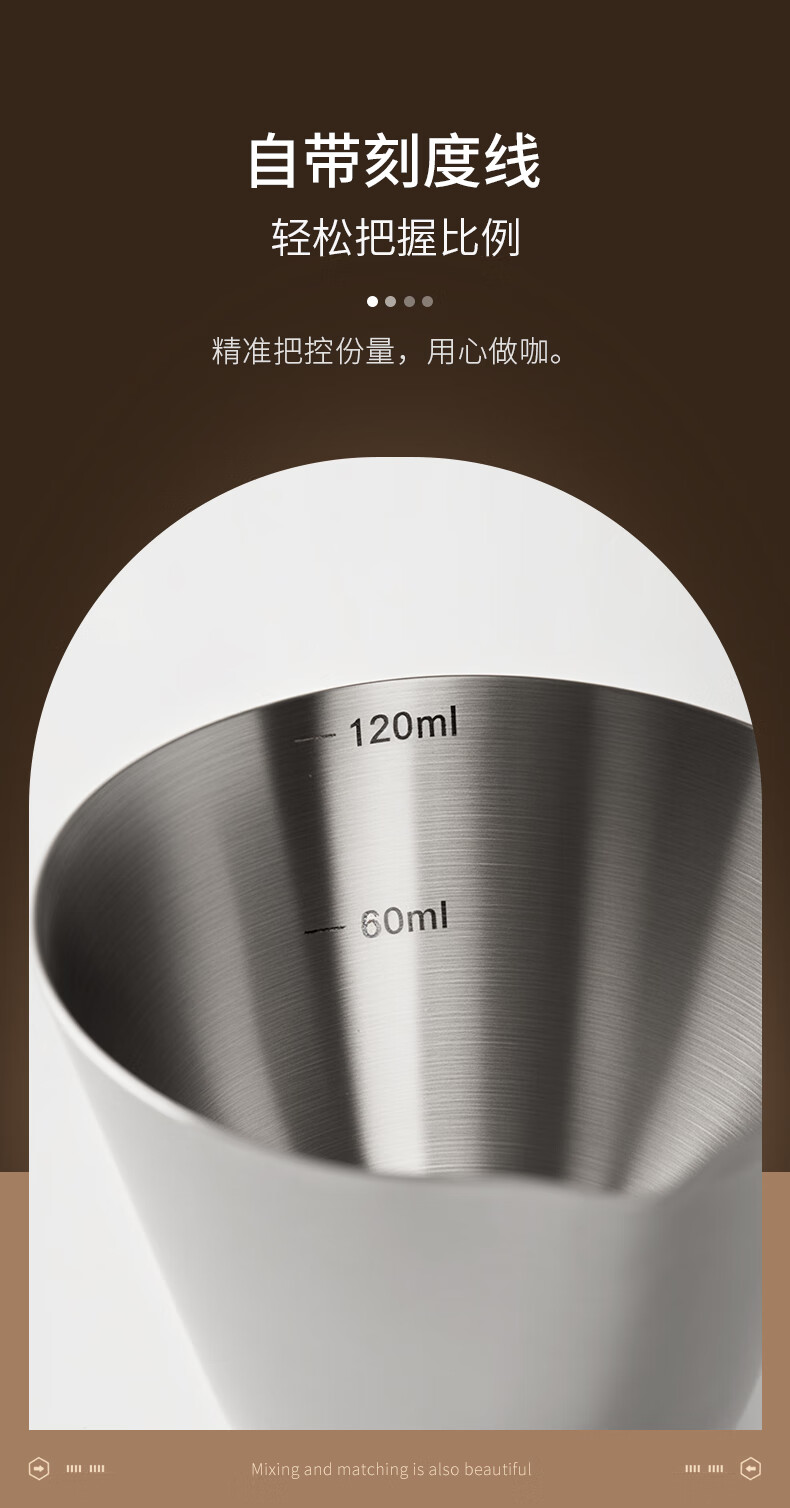 CLITON304 stainless steel coffee extraction cup with scale small milk cup ounce cup espresso measuring cup 120ml