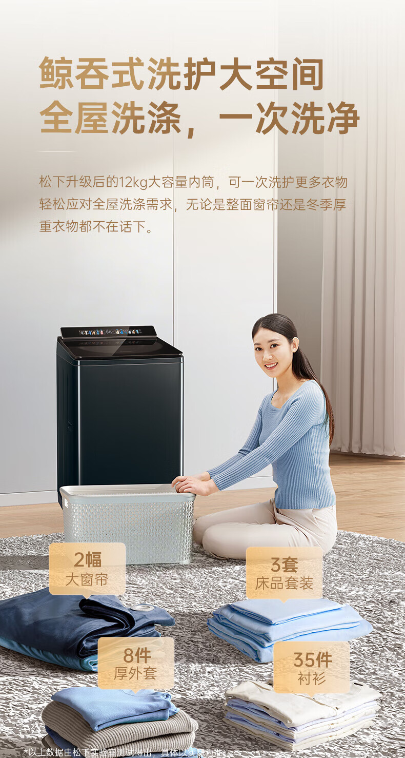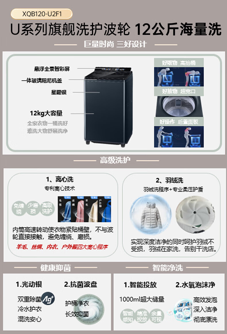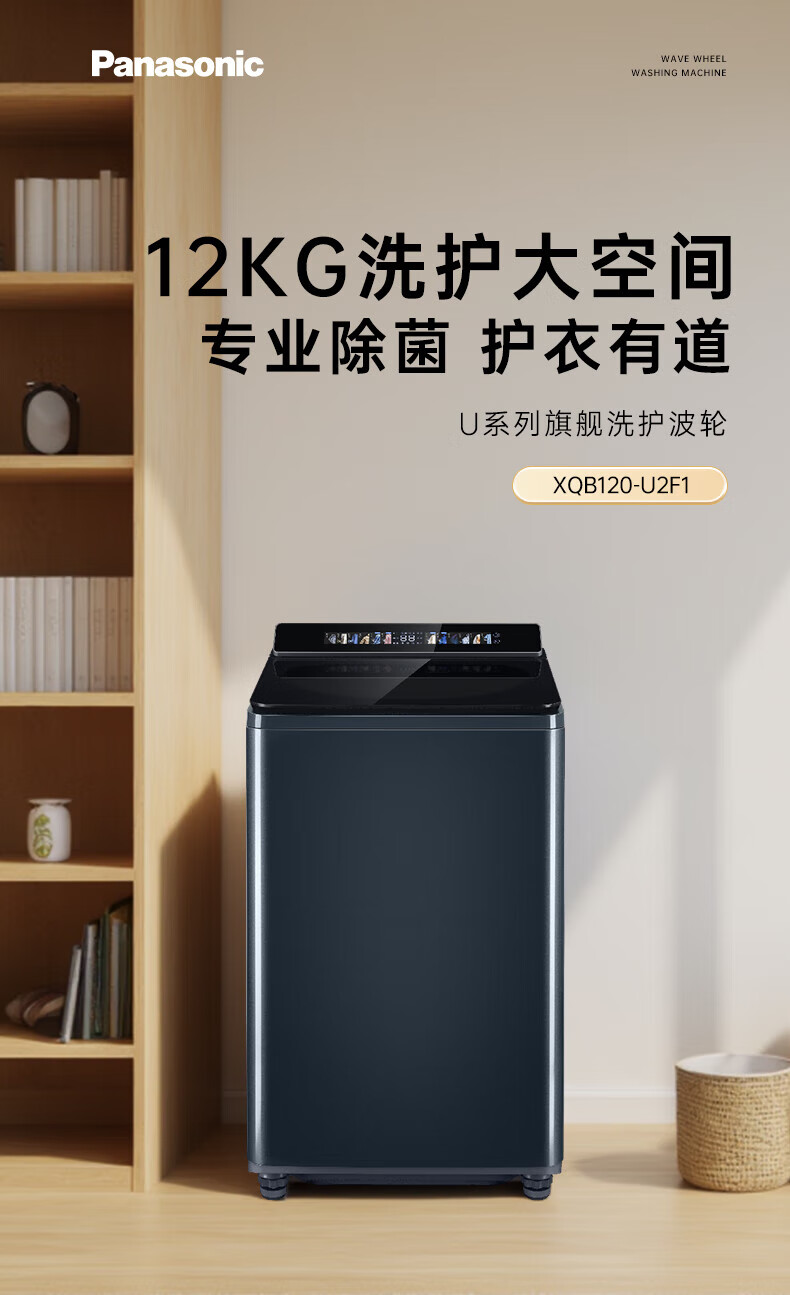 Panasonic No-Bend Pulsator Washing Machine 12KG Large Capacity Optical Silver Sterilizer Down Underwear Color Screen Touch Control Frequency Converter Direct Drive U2F1