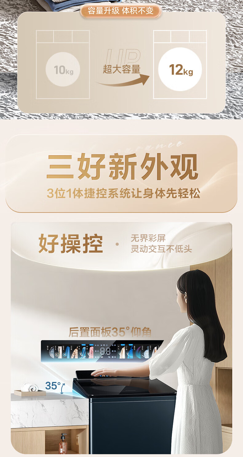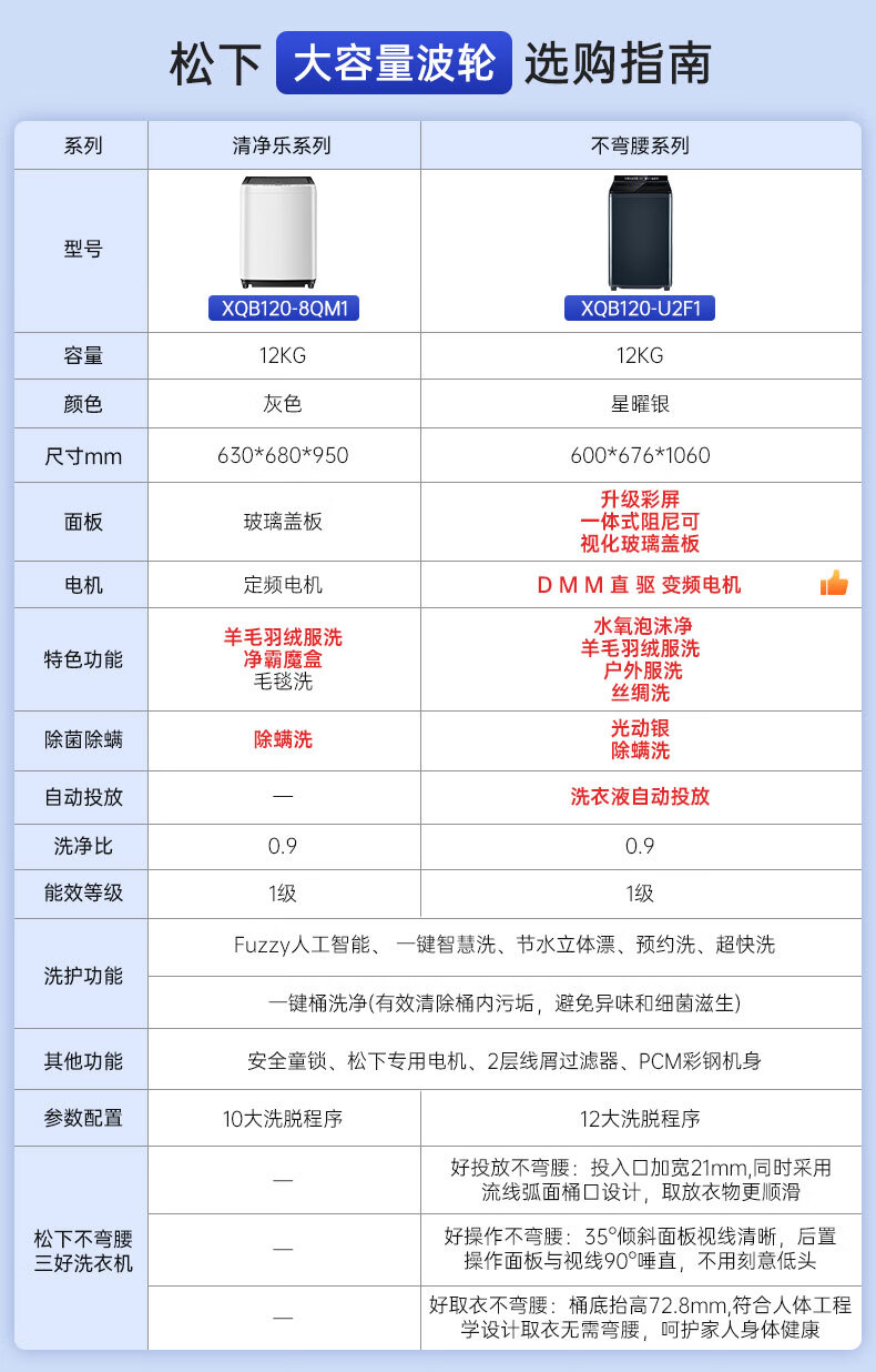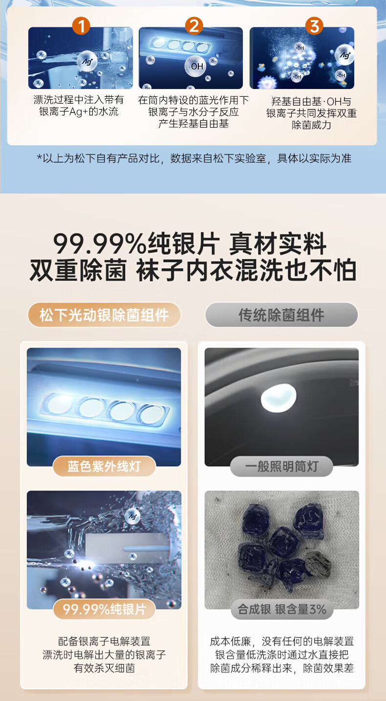 Panasonic No-Bend Pulsator Washing Machine 12KG Large Capacity Optical Silver Sterilizer Down Underwear Color Screen Touch Control Frequency Converter Direct Drive U2F1