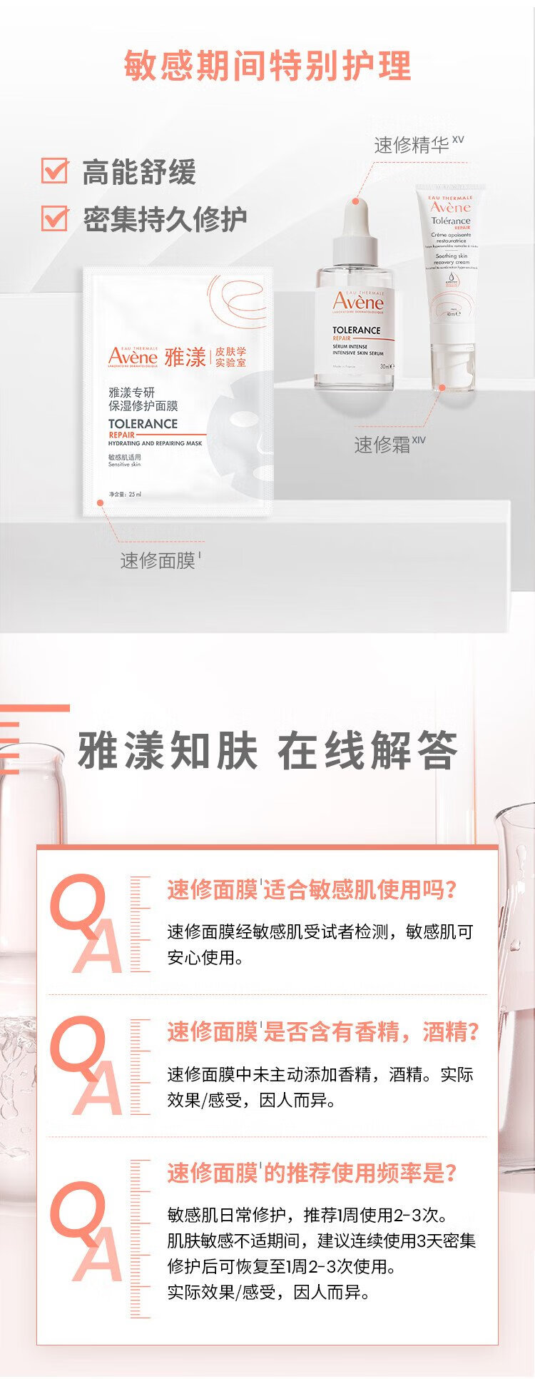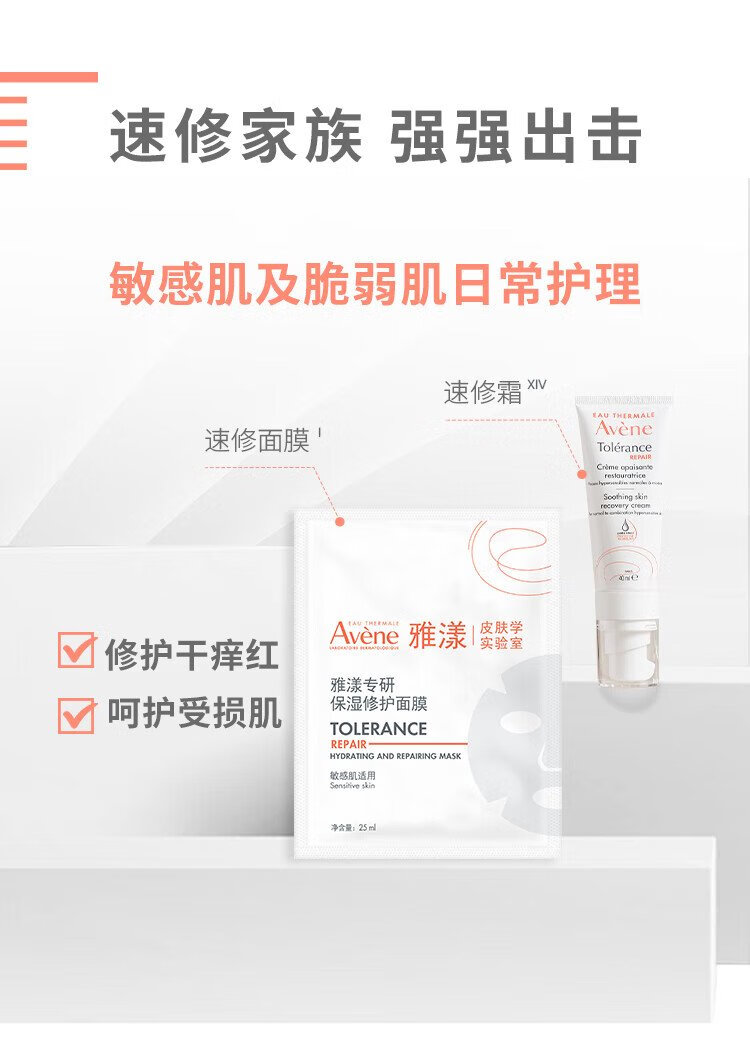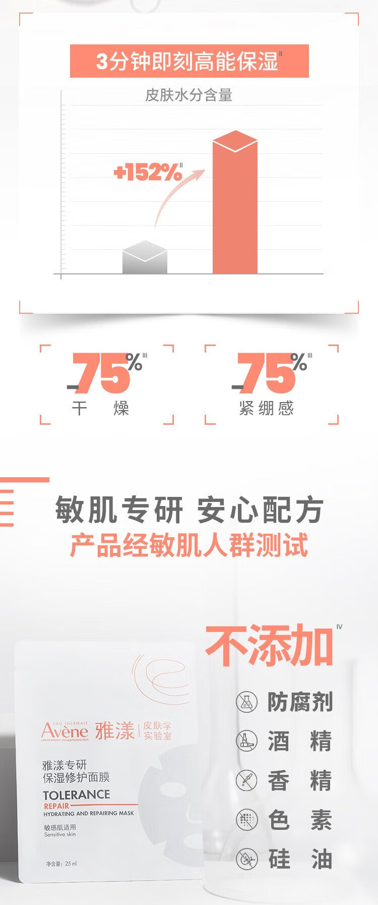 Avene specializes in moisturizing and repairing mask 1 piece, soothing redness and hydrating B5 sensitive skin patch mask lotion for men and women