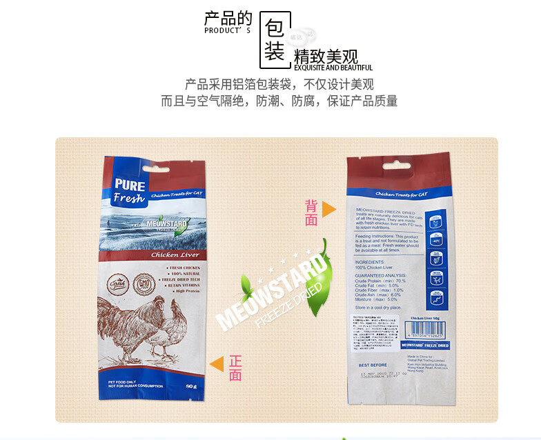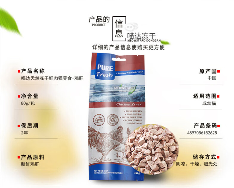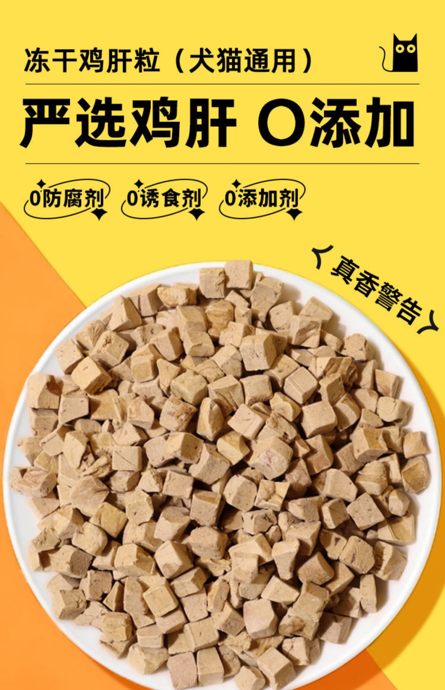Miaoda pure fresh meat freeze-dried chicken liver granules 0 added cat snacks for fattening, cheek and molar cat food full-term pet food 80g
