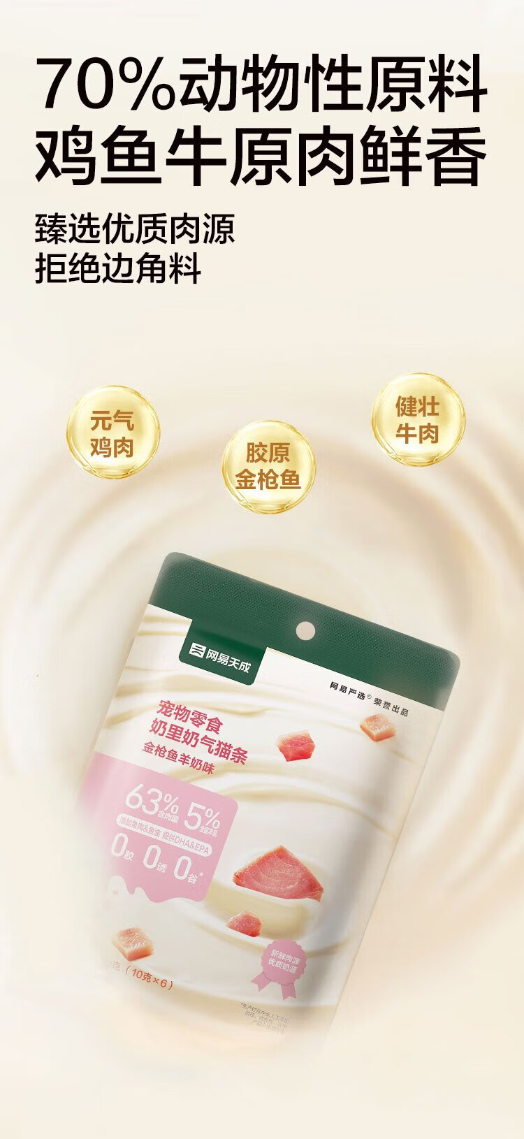 NetEase carefully selected milky cat strips, tuna and goat milk flavor 10g*6