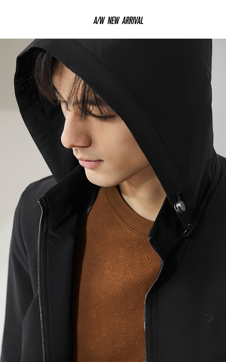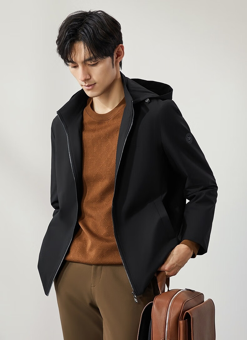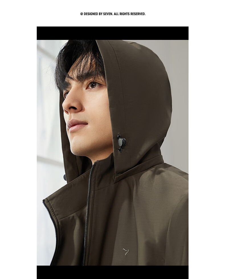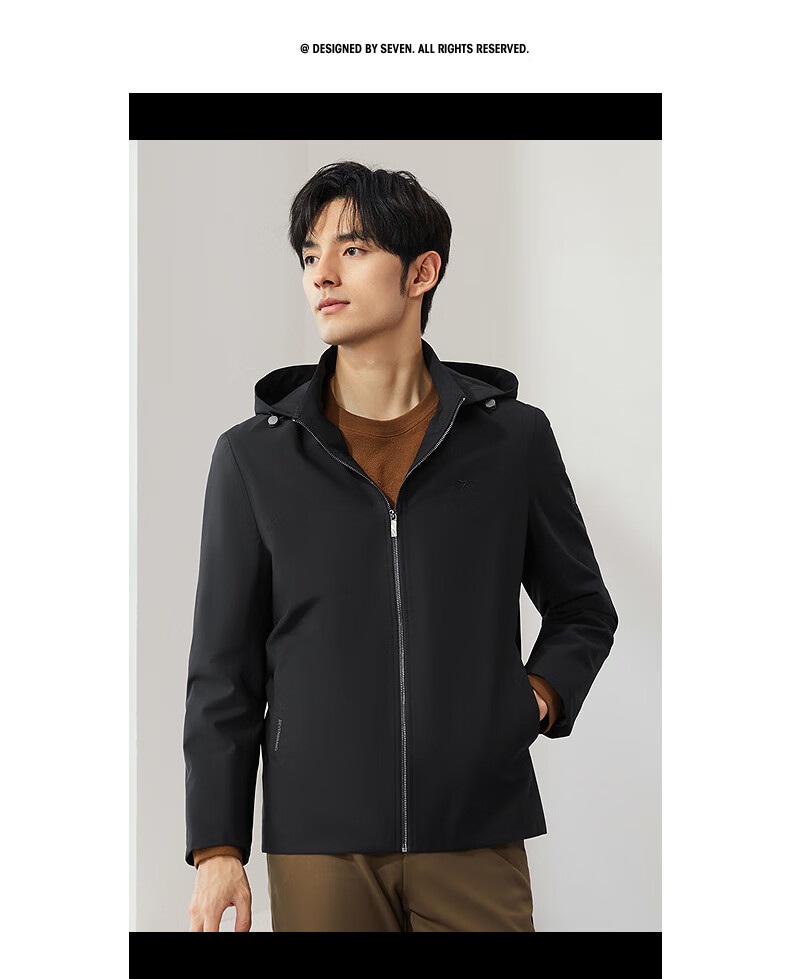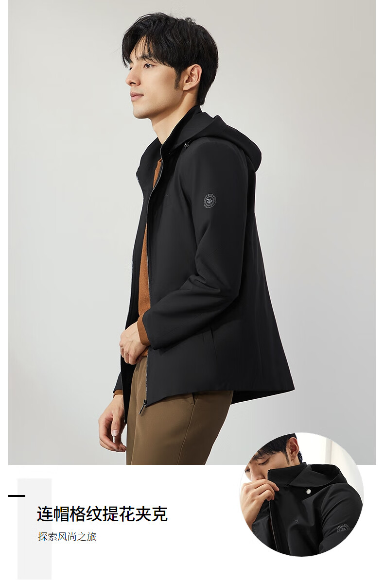 Qipai hooded jacket men's spring and autumn plaid jacquard casual versatile men's windproof outer jacket