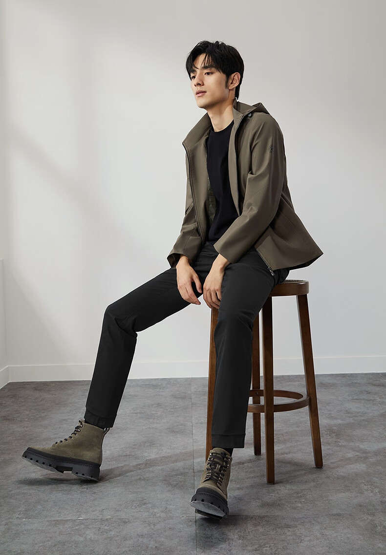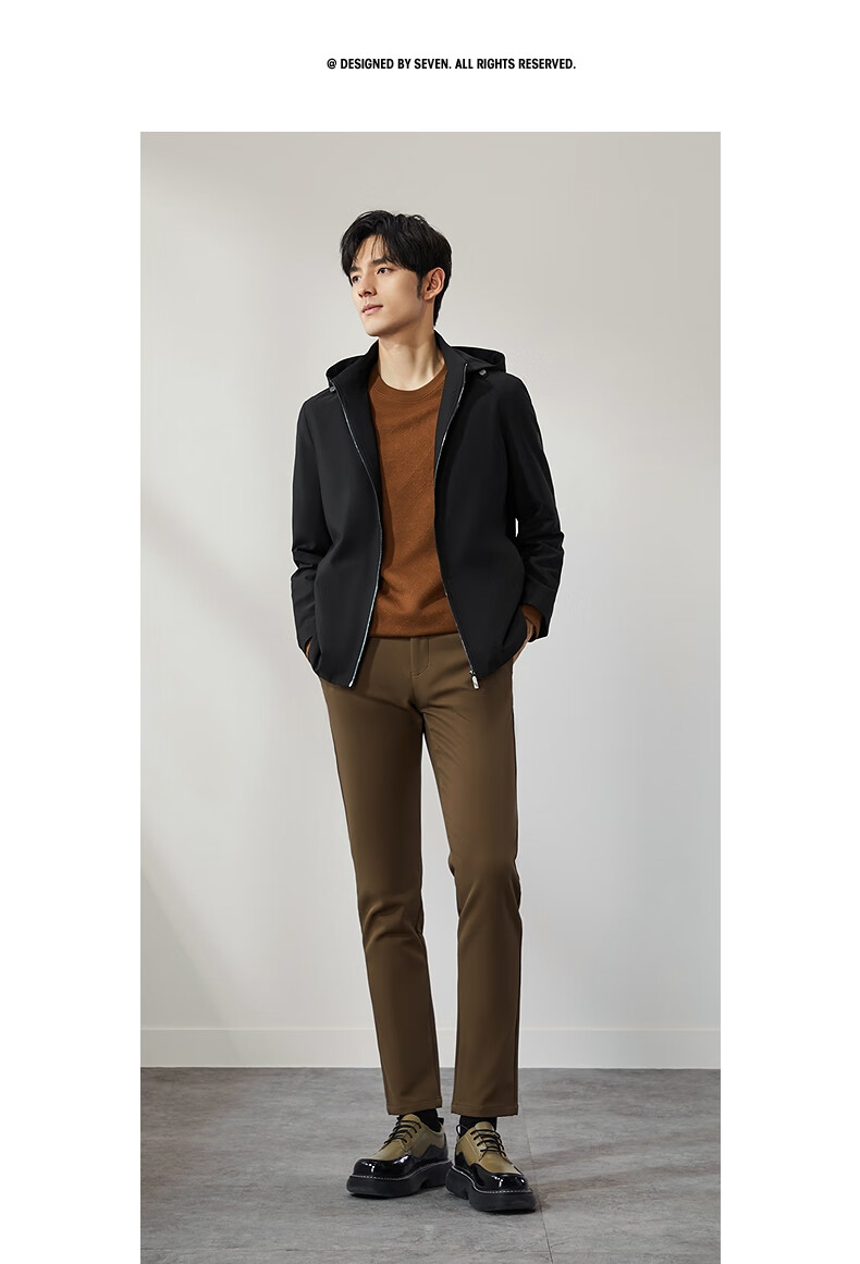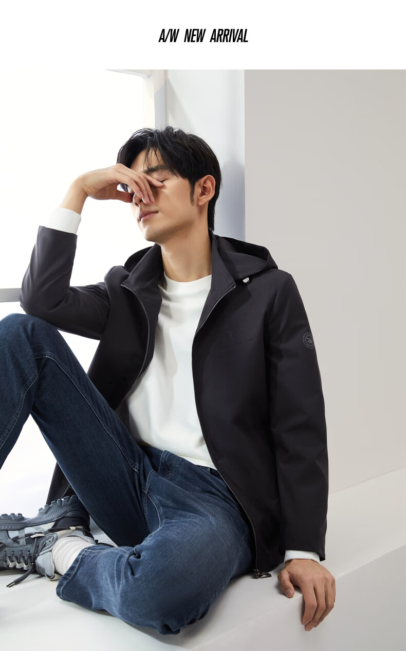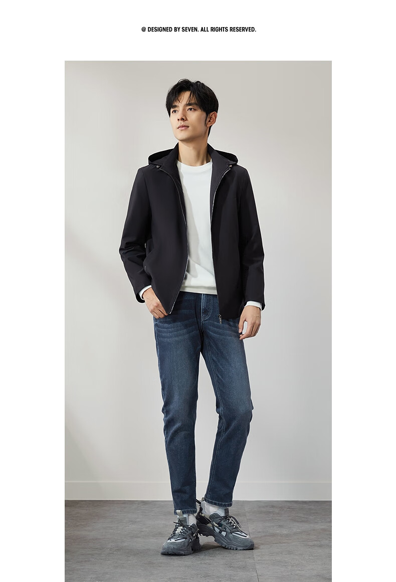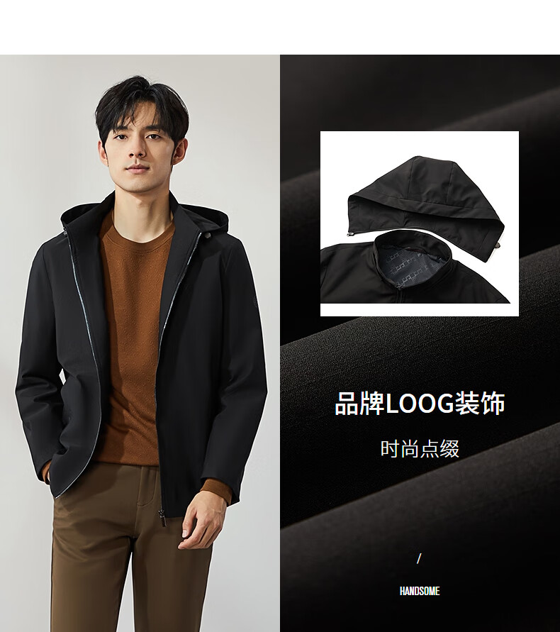 Qipai hooded jacket men's spring and autumn plaid jacquard casual versatile men's windproof outer jacket