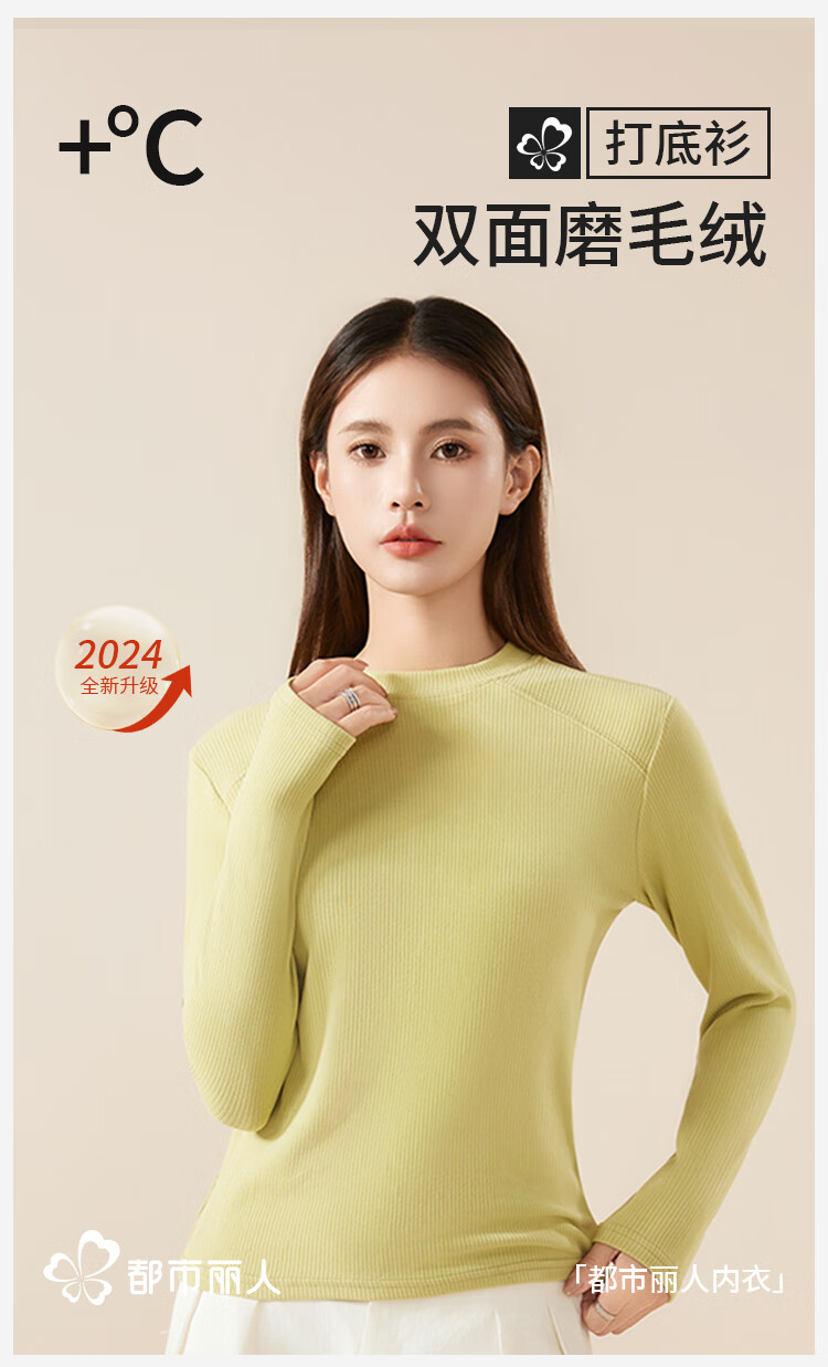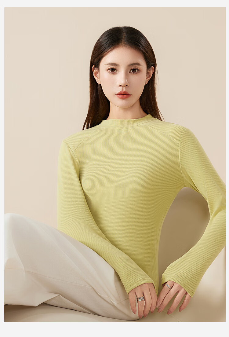 Urban Beauty Autumn and Winter Bottoming Shirt Top Women's Basic Brushed Long Sleeve Versatile Slim High Elastic Soft Fit White