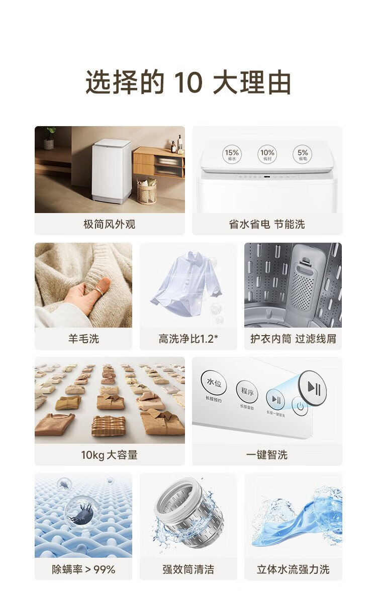 Mijia Xiaomi pulsator washing machine fully automatic 10kg ultra-clean wool washing household pulsator national subsidy XQB100MJ104