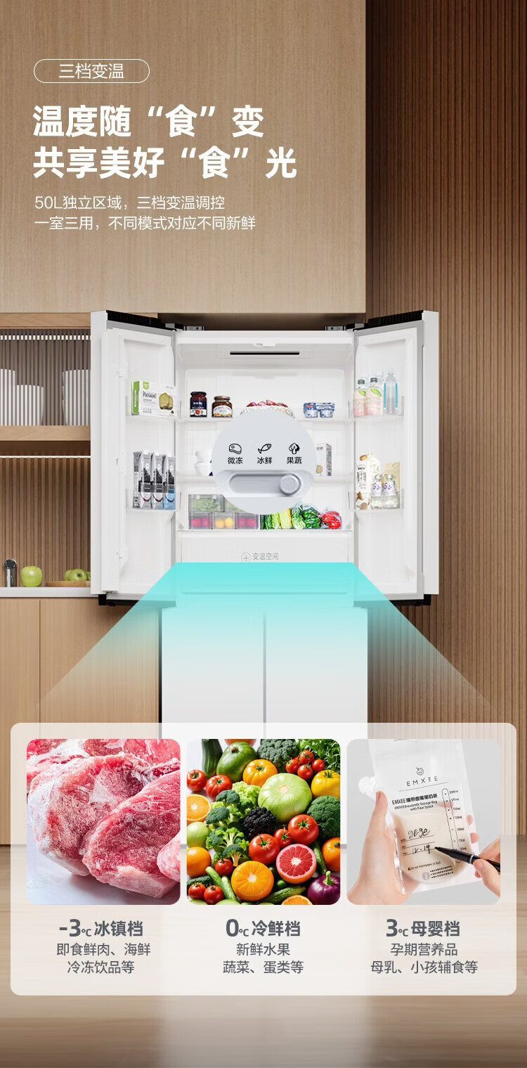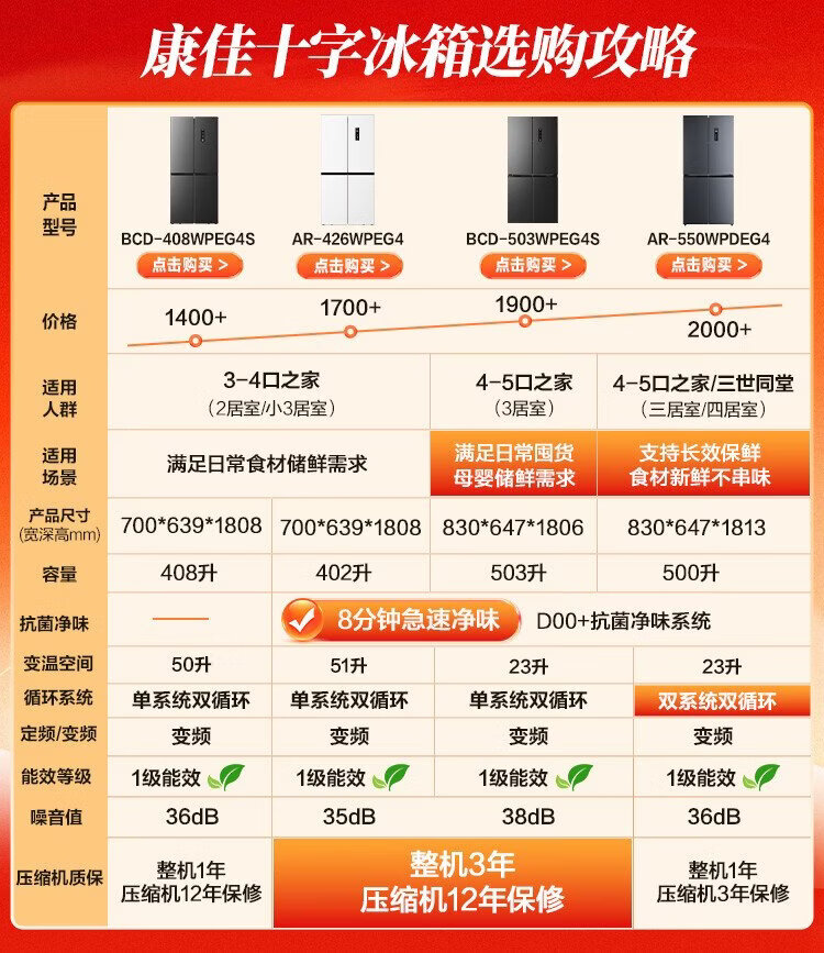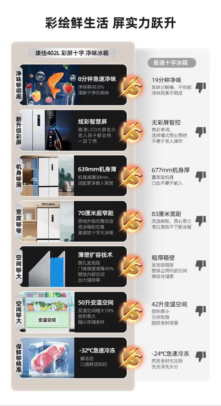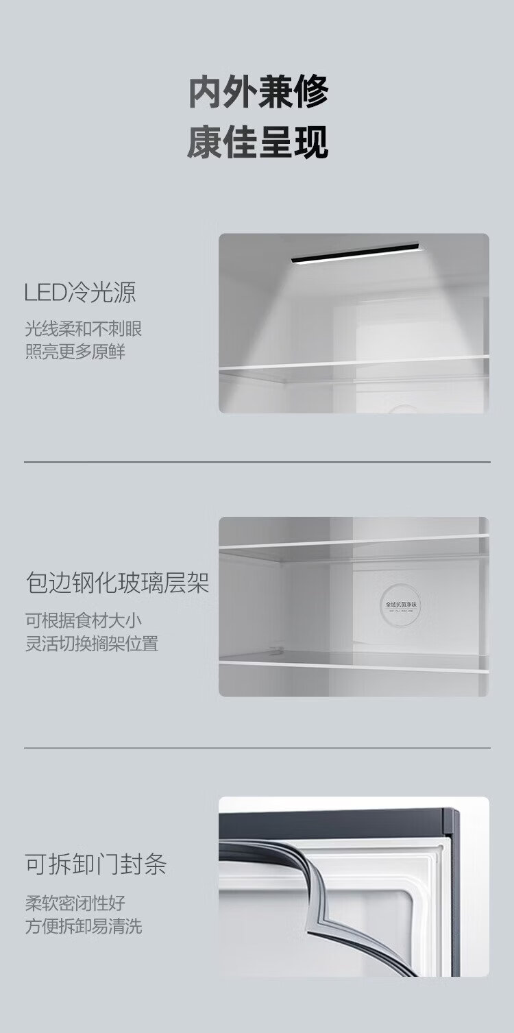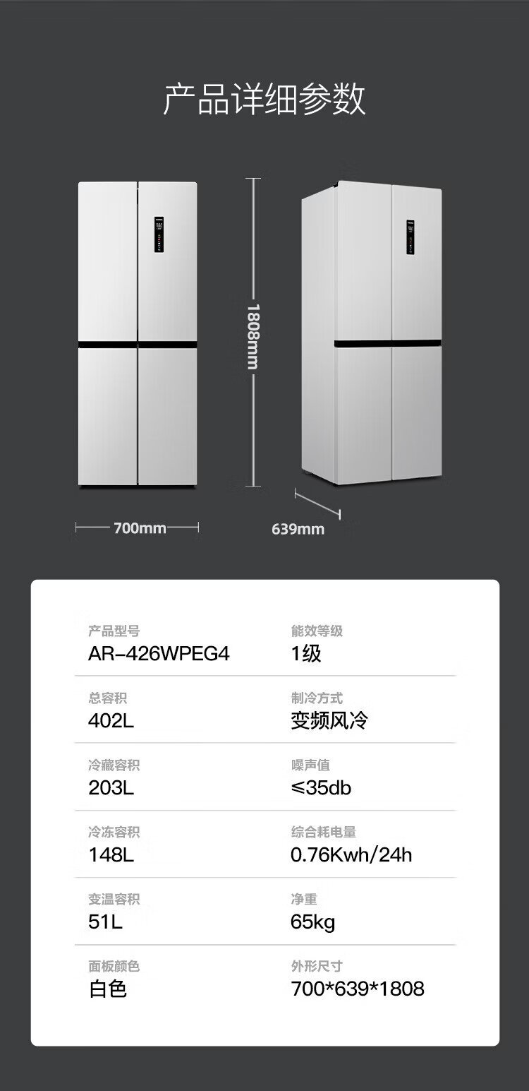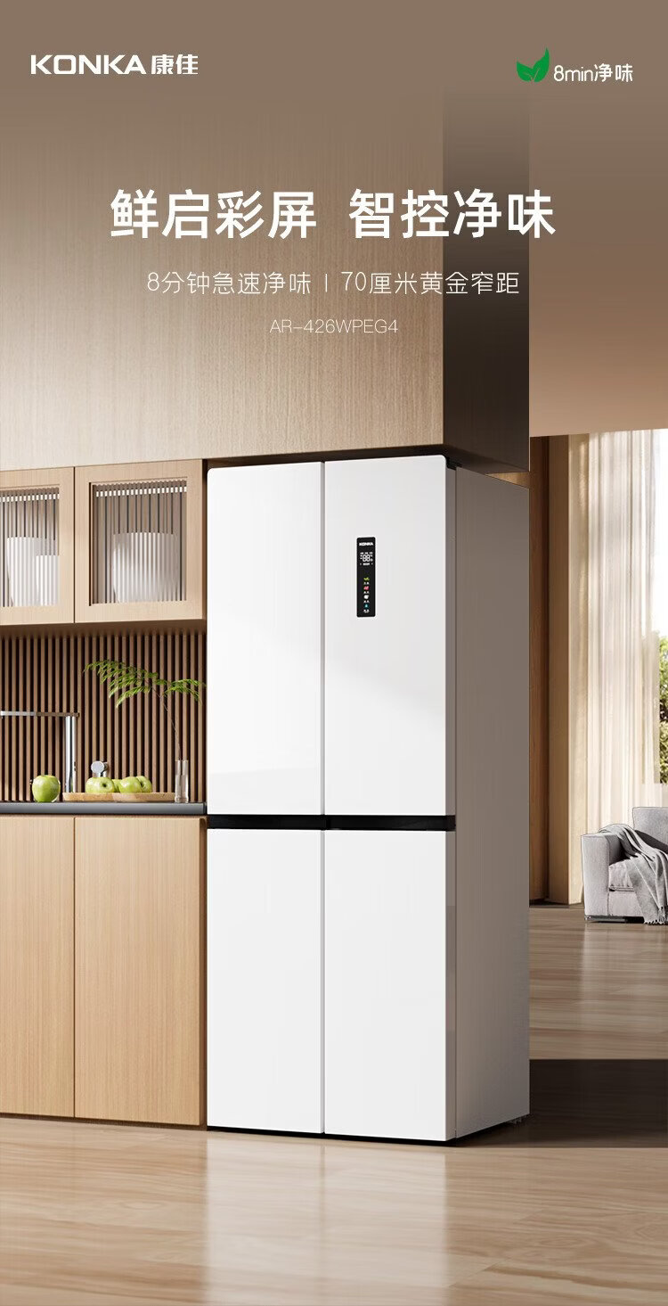 Konka 402-liter cross-door refrigerator 8-minute odor-cleaning ultra-thin first-level dual-cycle air-cooled frost-free large-capacity household AR-426WPEG4 national subsidy