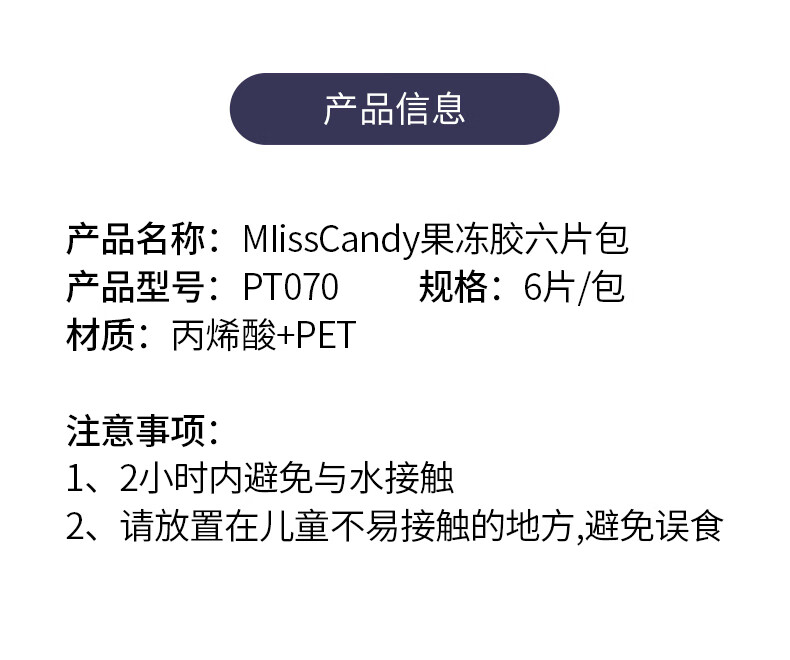 Miss Candy jelly glue six pieces/pack double-sided jelly glue wearable solid glue long-lasting and strong manicure glue nail pieces PT070