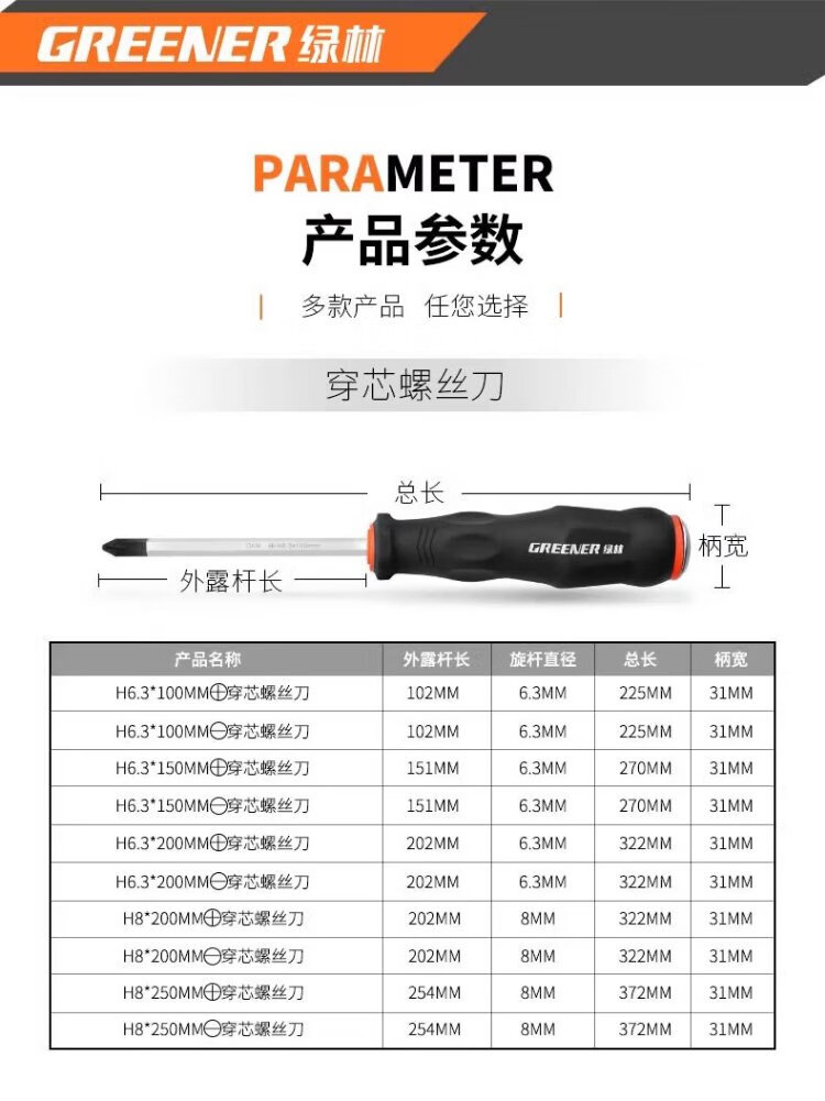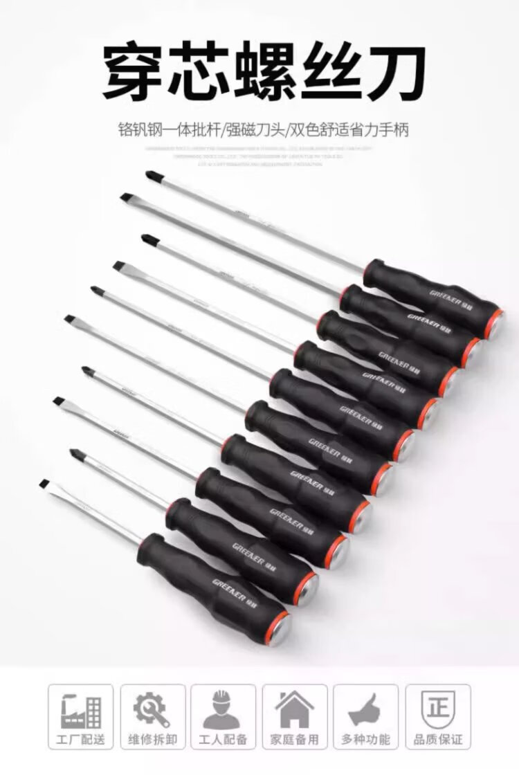 GREENER super-hard core screwdriver complete set 6.3*150mm cross-shaped household screwdriver that can hit the screwdriver