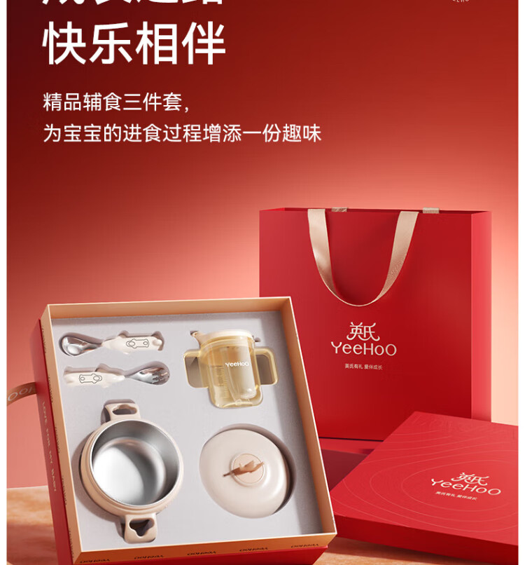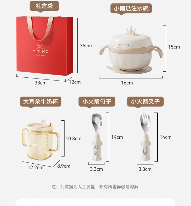 YEEHOO baby tableware bowl, feeding spoon, drinking water cup, eating spoon, tableware spoon, gift box set