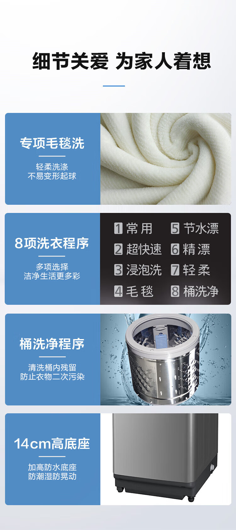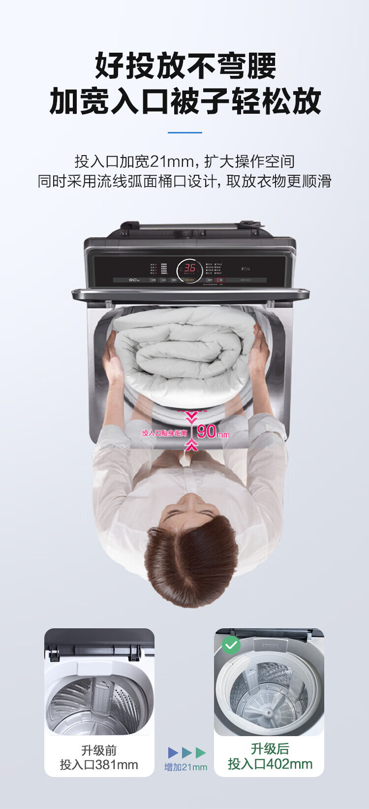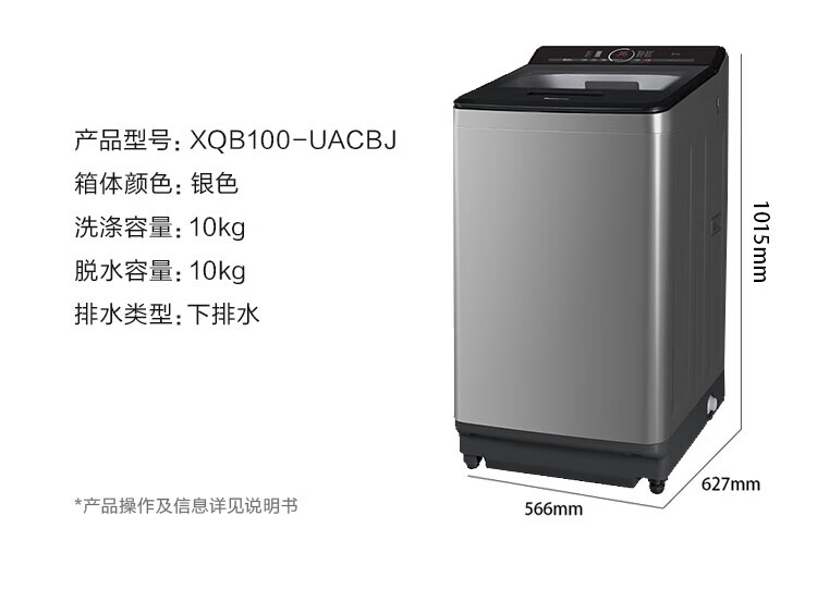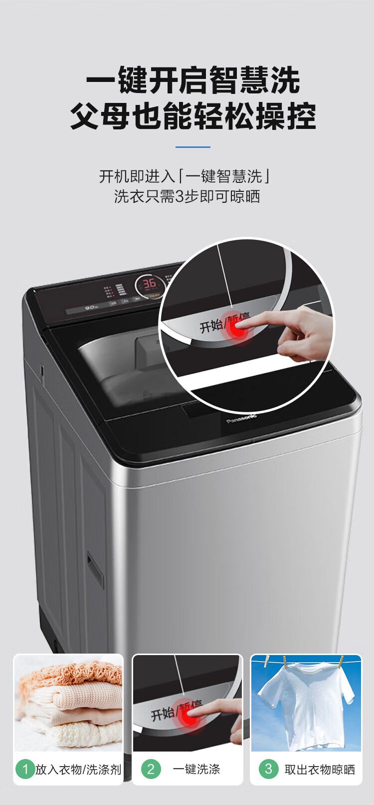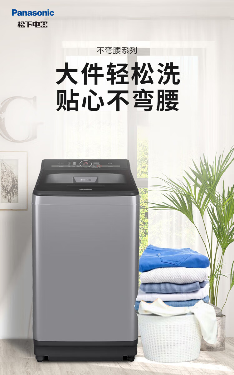 Panasonic non-bending pulsator washing machine 10kg large capacity fully automatic home smart washing energy saving water bucket self-cleaning blanket gentle washing and elevated base XQB100-UACBJ