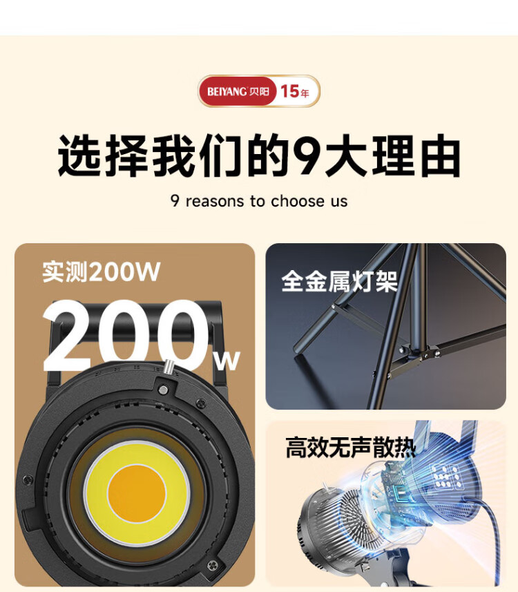 Beiyang 200w live broadcast fill light photography camera lighting professional live broadcast dedicated beauty lamp spherical lampshade deep polished lamp portrait jewelry food video soft light film and television shooting lamp