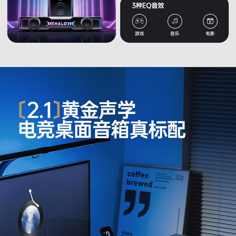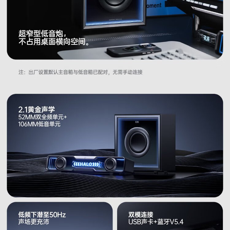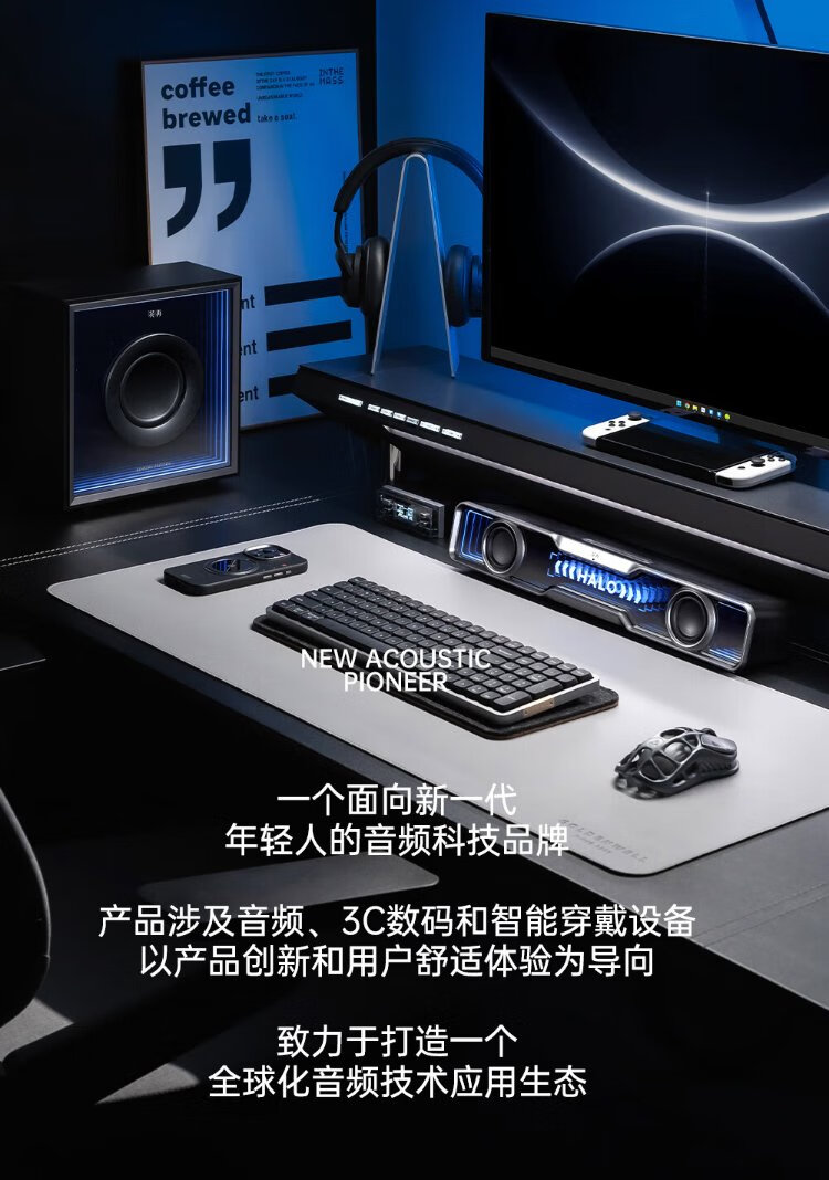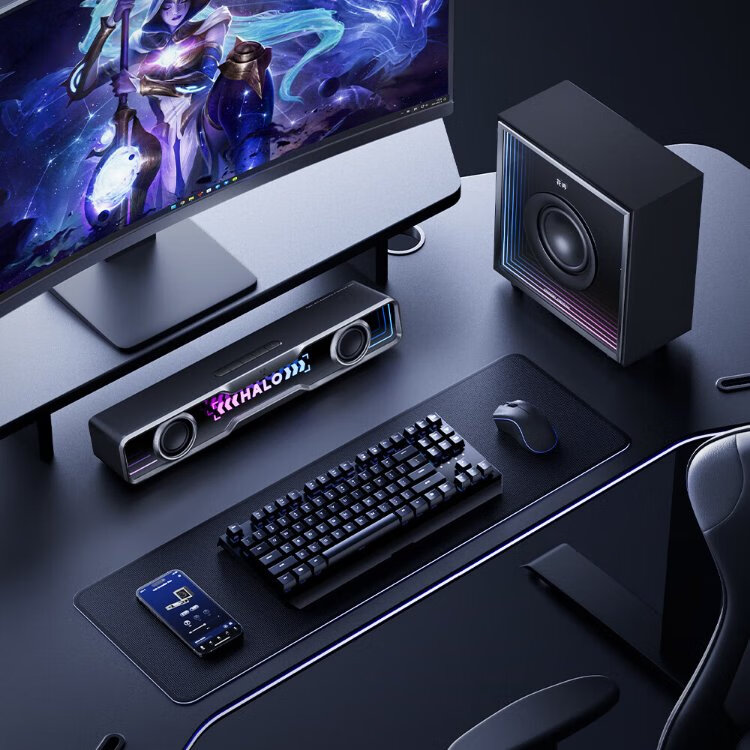 Edifier Halo Soundbar Max Computer Audio Bluetooth 5.4 Subwoofer Speaker E-Sports Desktop Long Wired Speaker Breaking the Boundary Black High-Fidelity Home Use