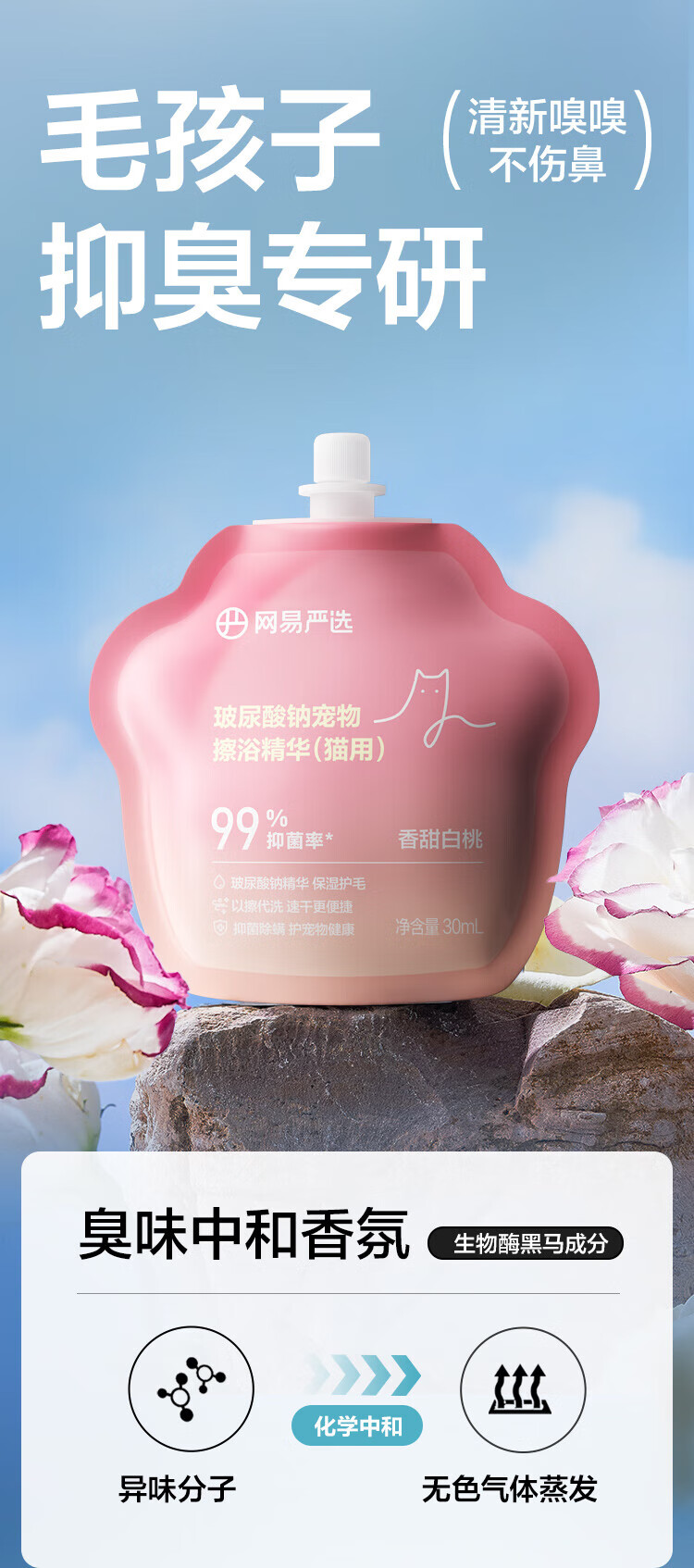 NetEase Selected Pet Shower Gel Cat No-Rinse Shower Gel Cat Hyaluronic Acid Bath Essence Set*2