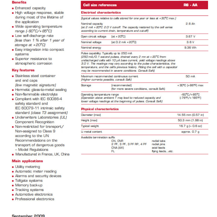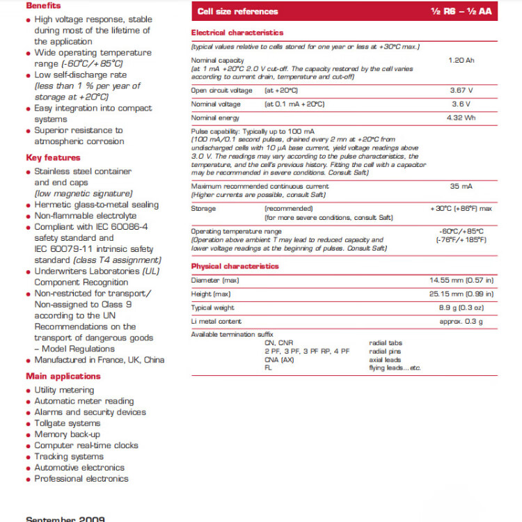 SaFT Saft LS14250 3.6V lithium battery Equipment industrial control PLC lithium battery LS14250 3.6V probe battery